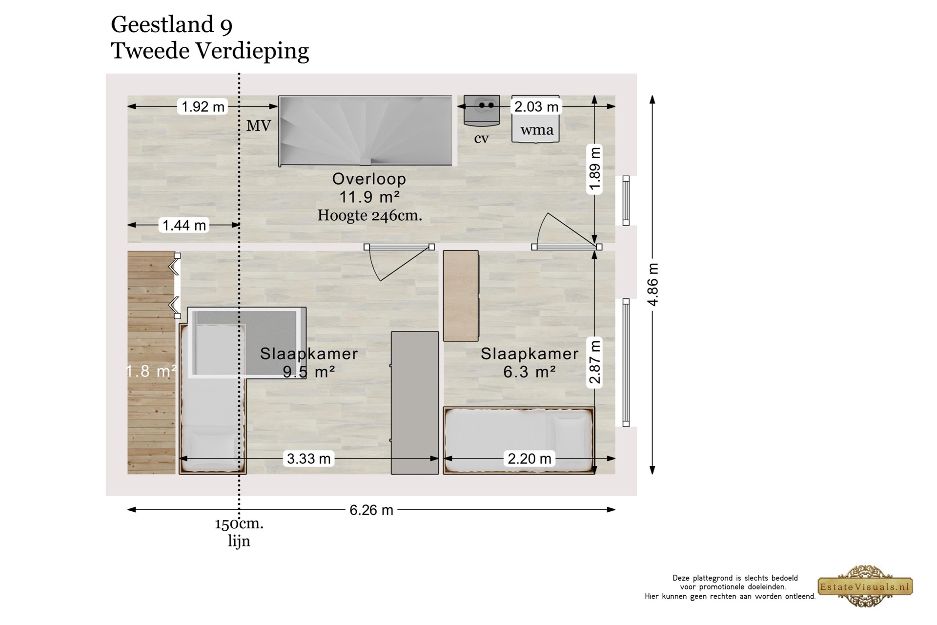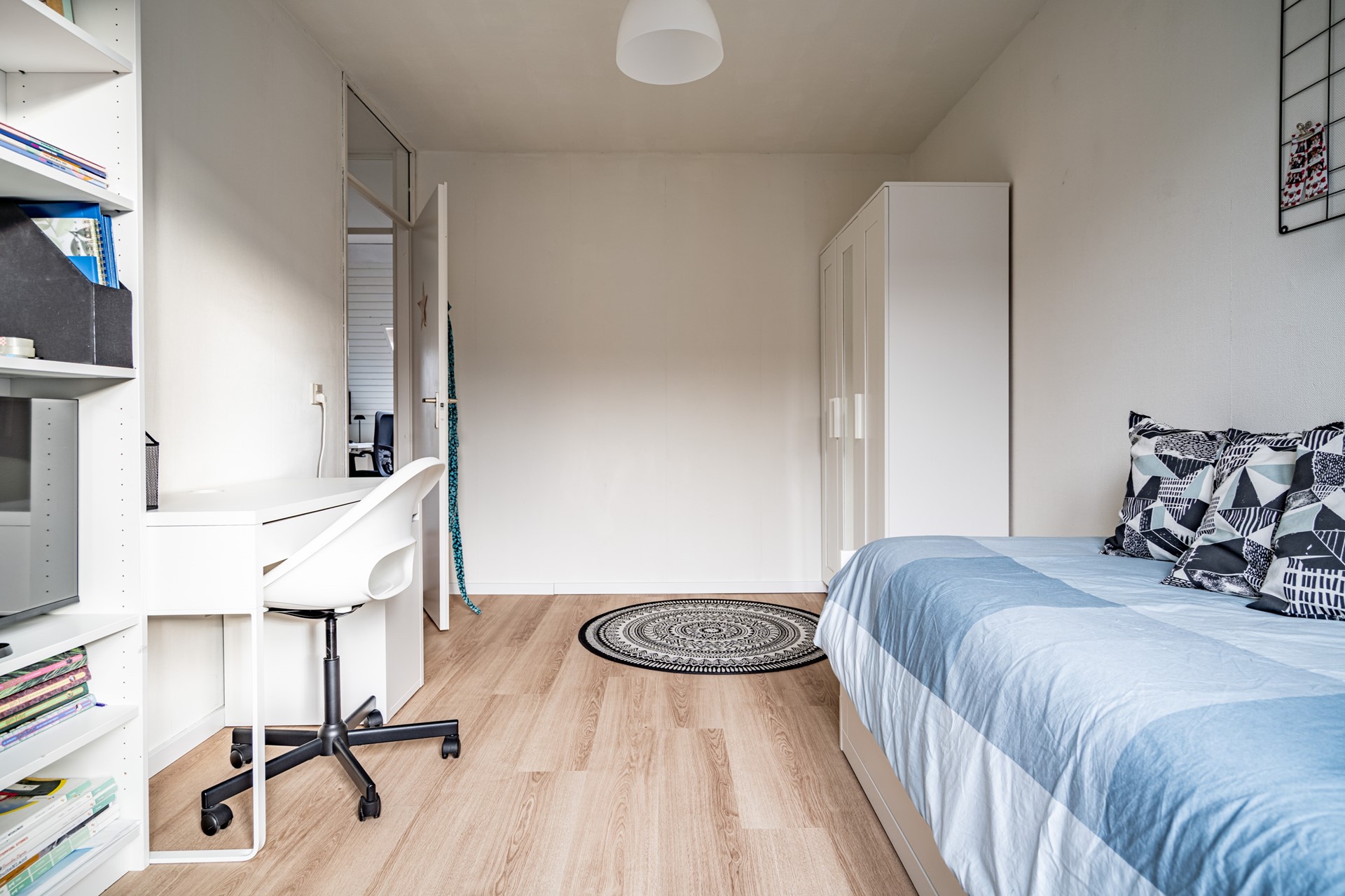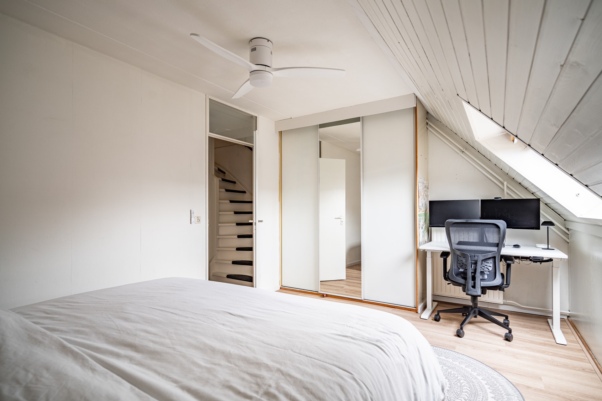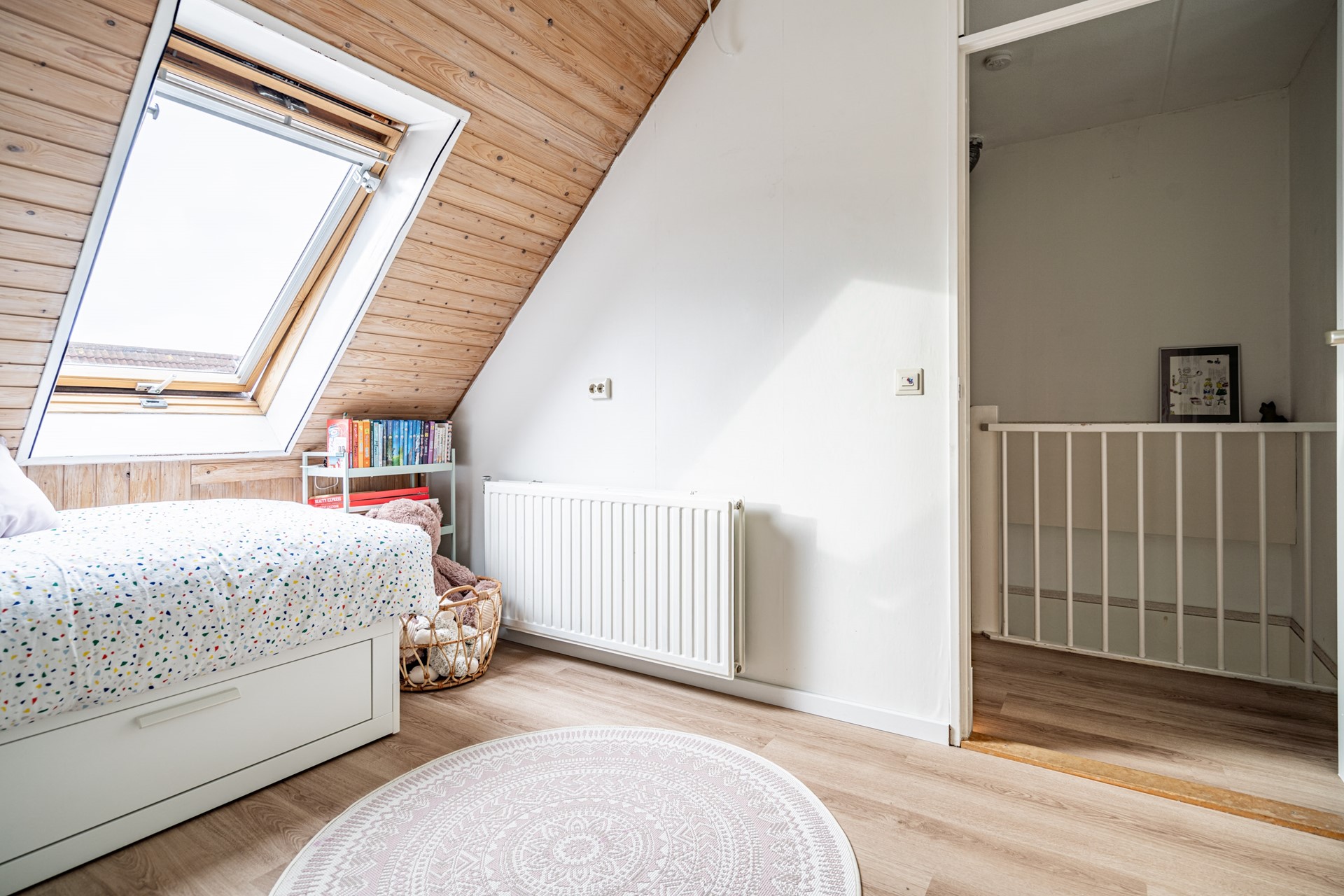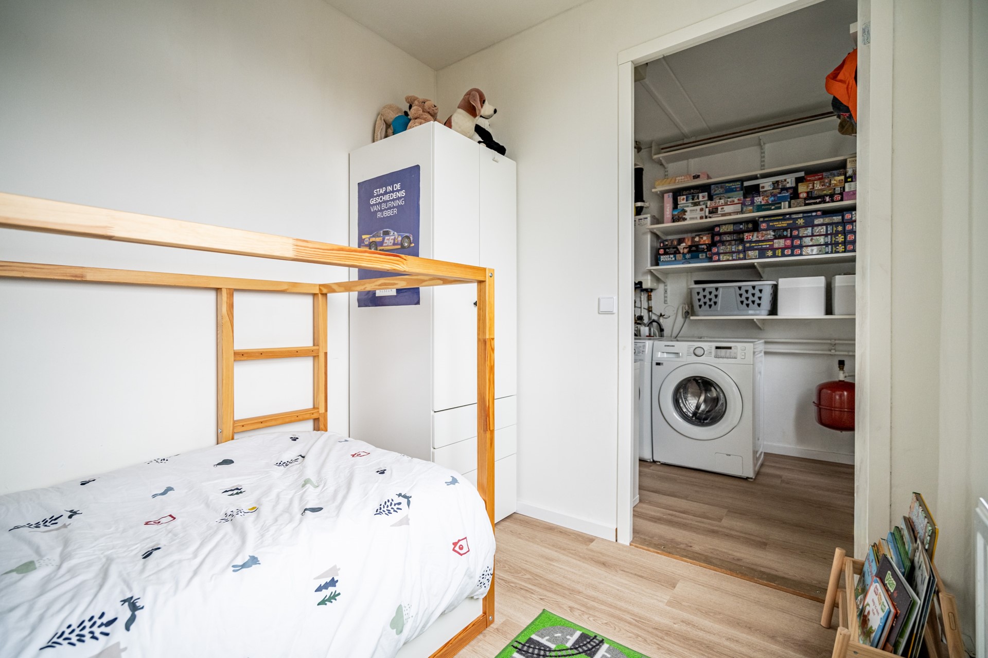 De tweede verdieping biedt nog twee ruime slaapkamers. Op de overloop bevindt zich de technische ruimte met aansluitingen voor de wasmachine en droger. Ook deze verdieping is praktisch ingedeeld en biedt volop mogelijkheden voor een groot gezin, thuiswerkplek of hobbyruimte.