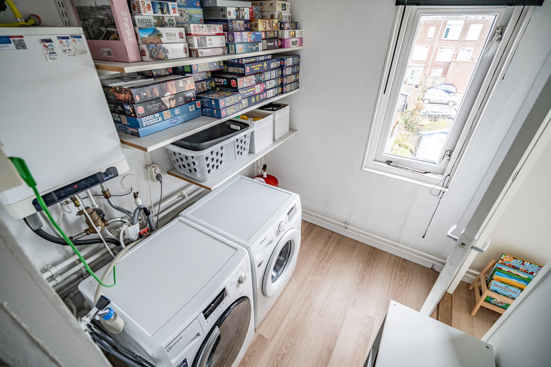 -Technische ruimte met opstelplaats voor wasmachine en droger