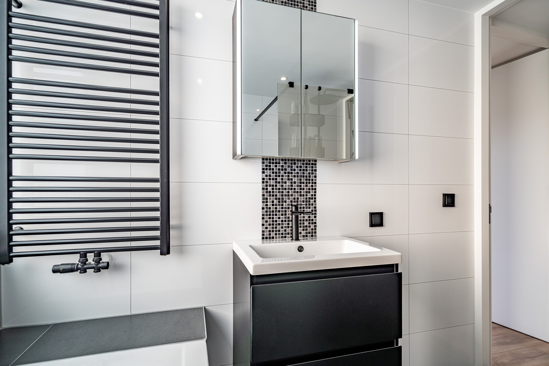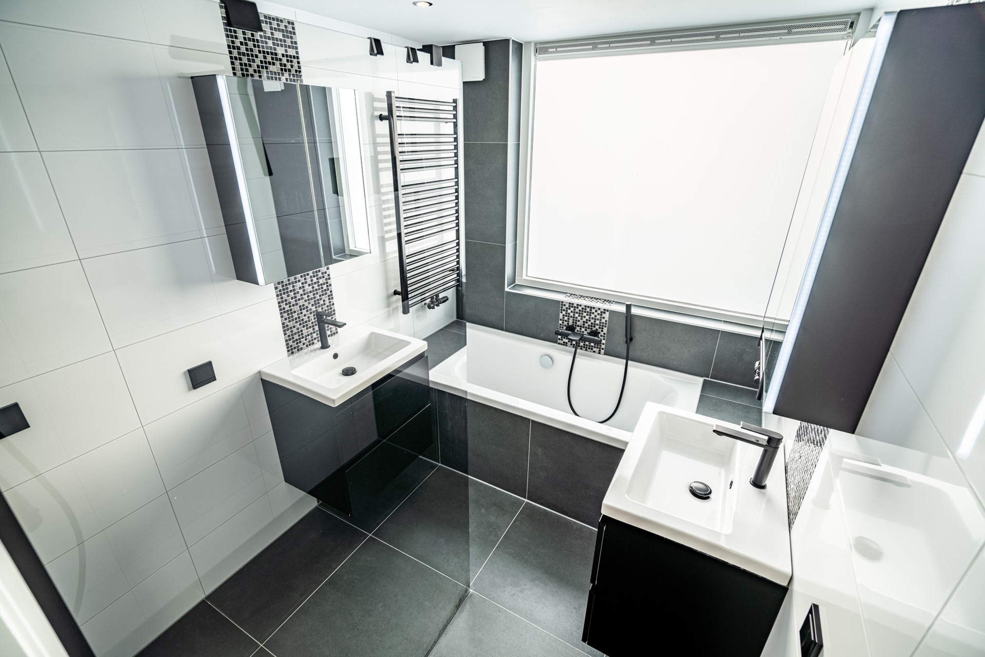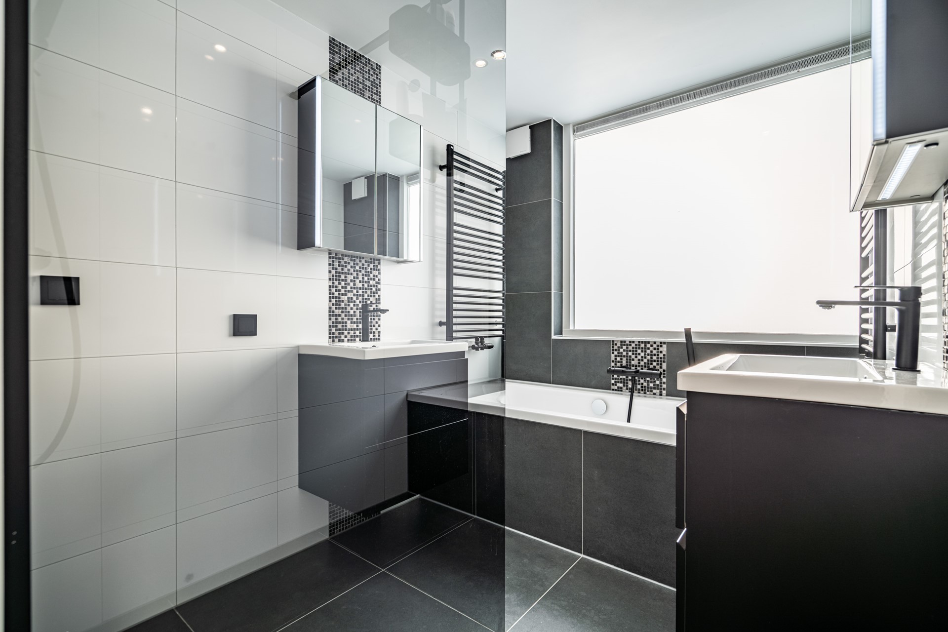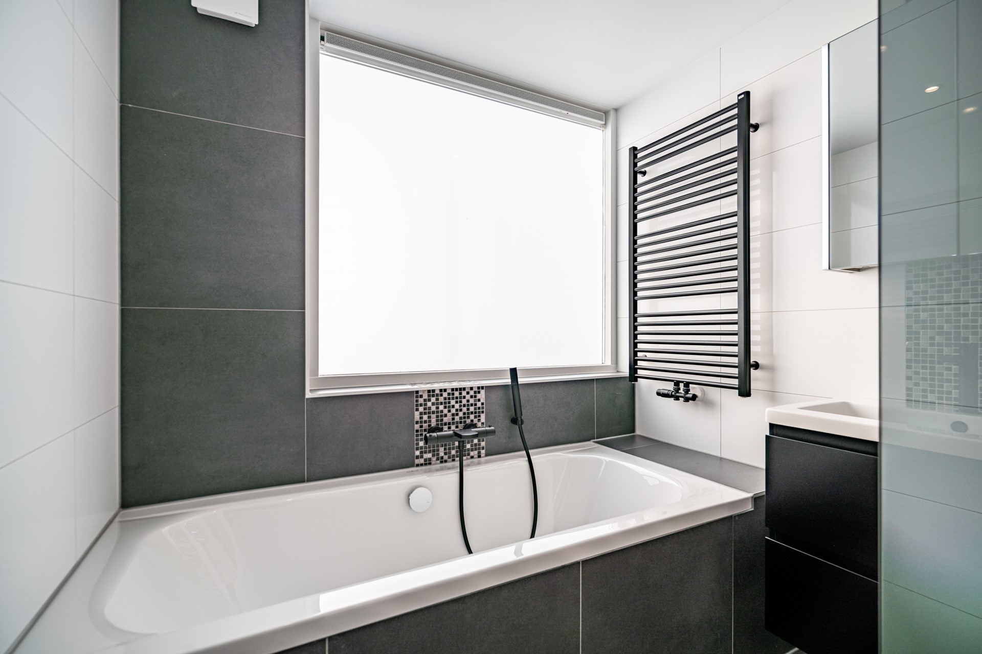 -Vernieuwde badkamer met ligbad, inloopdouche en wastafelmeubel