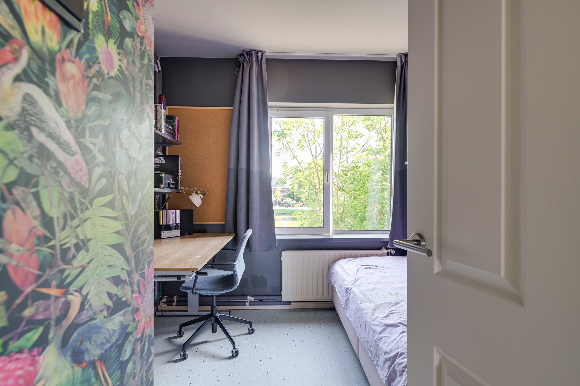 En dan de slaapkamers: drie volwaardige kamers en een extra tussenkamer die je helemaal naar eigen wens kunt gebruiken – van thuiskantoor tot inloopkast. De hoofdslaapkamer is royaal, de voorslaapkamer licht en knus, en de kleinere kamer met vaste kast kan zo omgetoverd worden tot logeer- of kinderkamer. Bovendien is er een praktische bijkeuken waar je de wasmachine en droger netjes kwijt kunt.