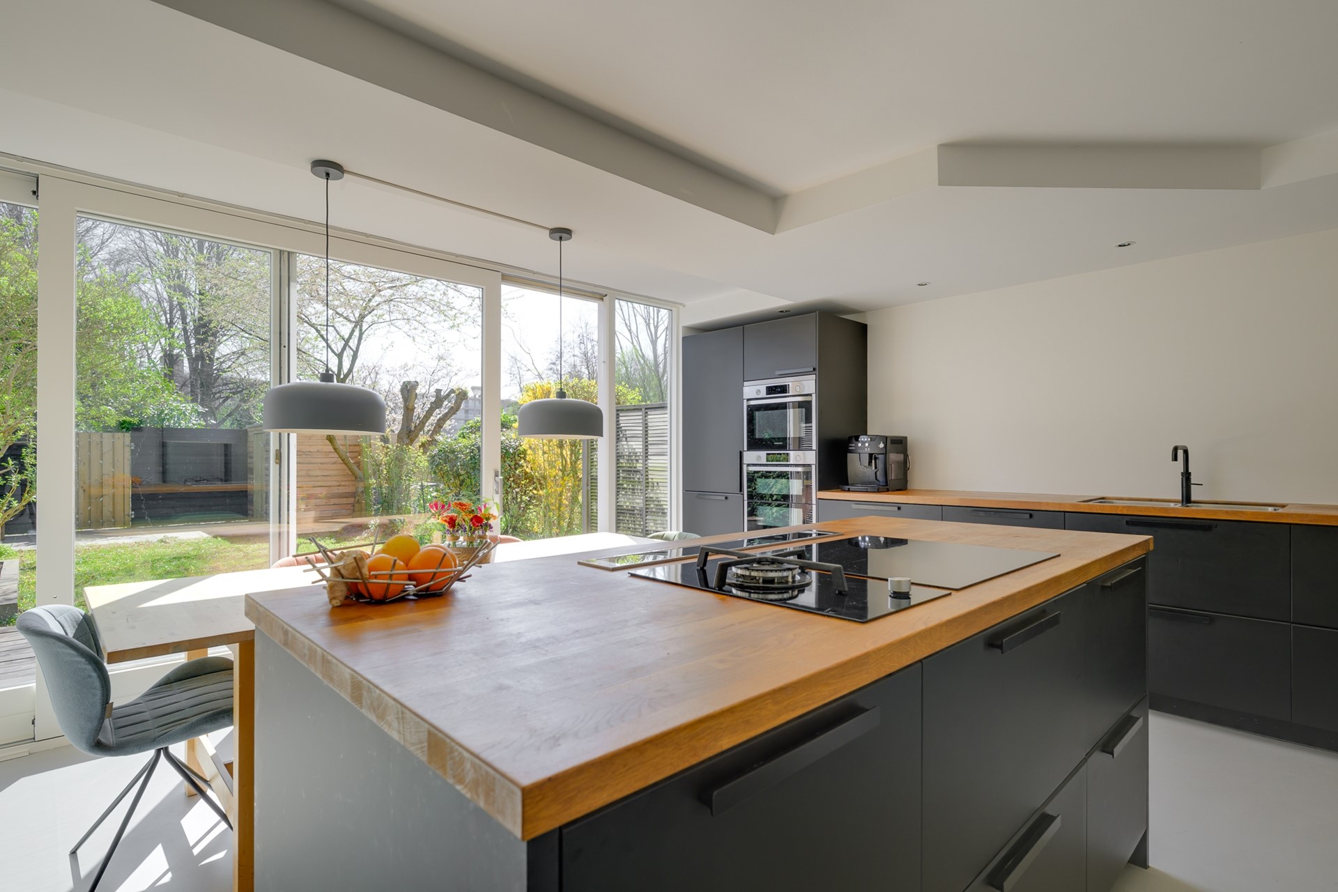 At the back of the house, you'll find the real eye-catcher of this floor: a lovely kitchen-diner with sliding doors leading to the garden. And what a kitchen! A stylish combination of modern and practical: a Quooker, an induction cooktop with a gas burner for the enthusiast, a double oven (including a steam oven!), an American-style refrigerator, and of course, a dishwasher that takes the work out of your hands. Perfect for a busy family or if you enjoy entertaining friends. Slide open the door and voilà – inside and out become one. Imagine: balmy summer evenings, babbling music, children playing in the grass, you with a glass of wine at the garden table.
