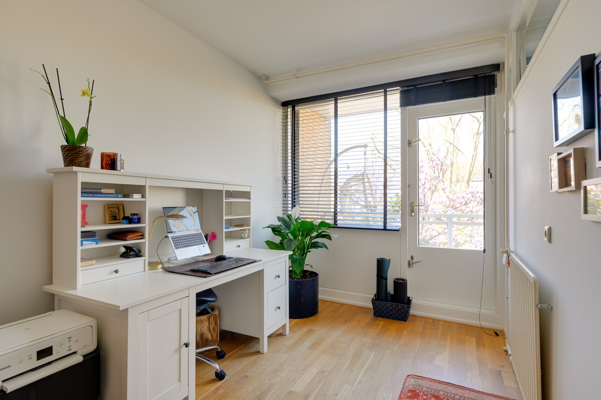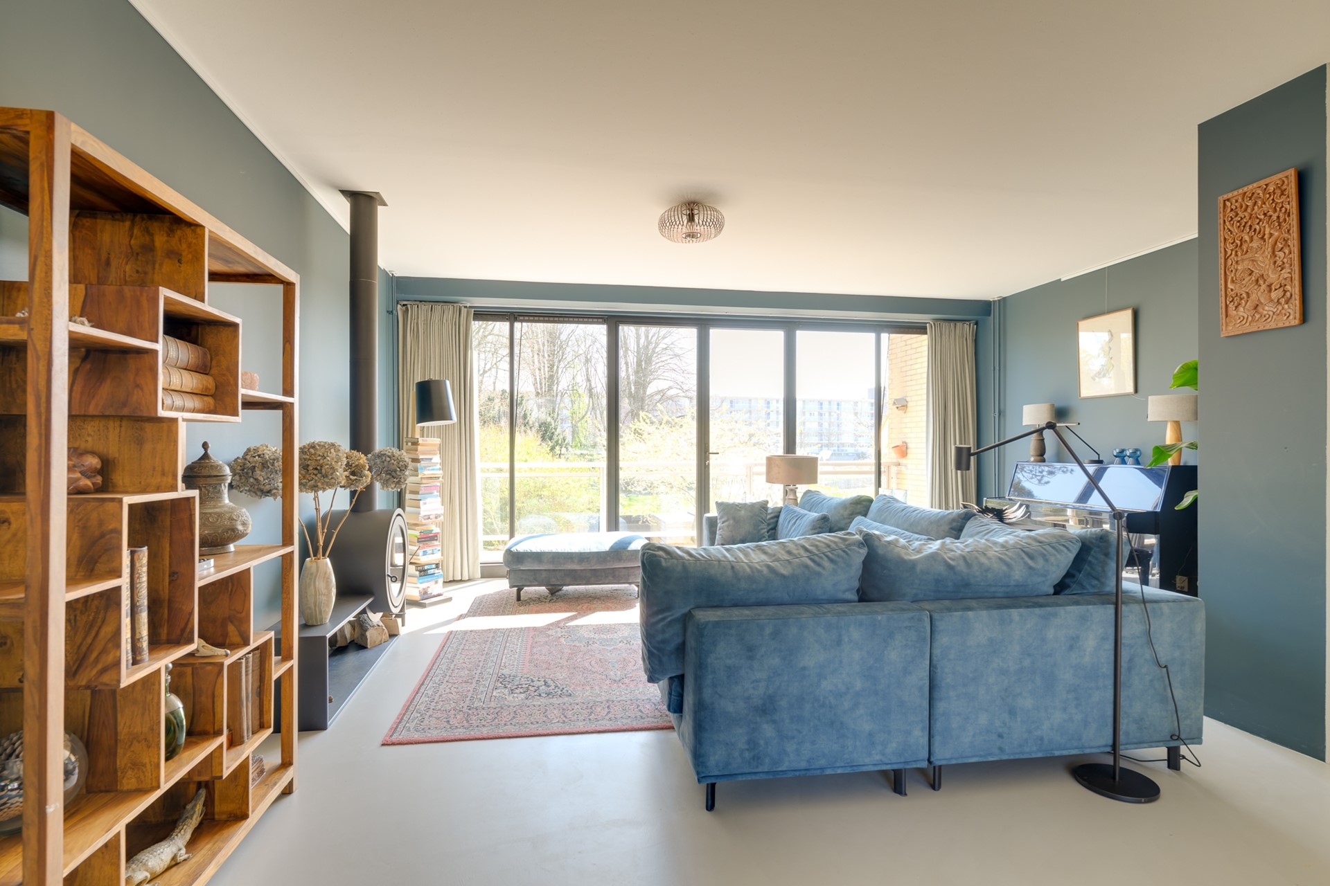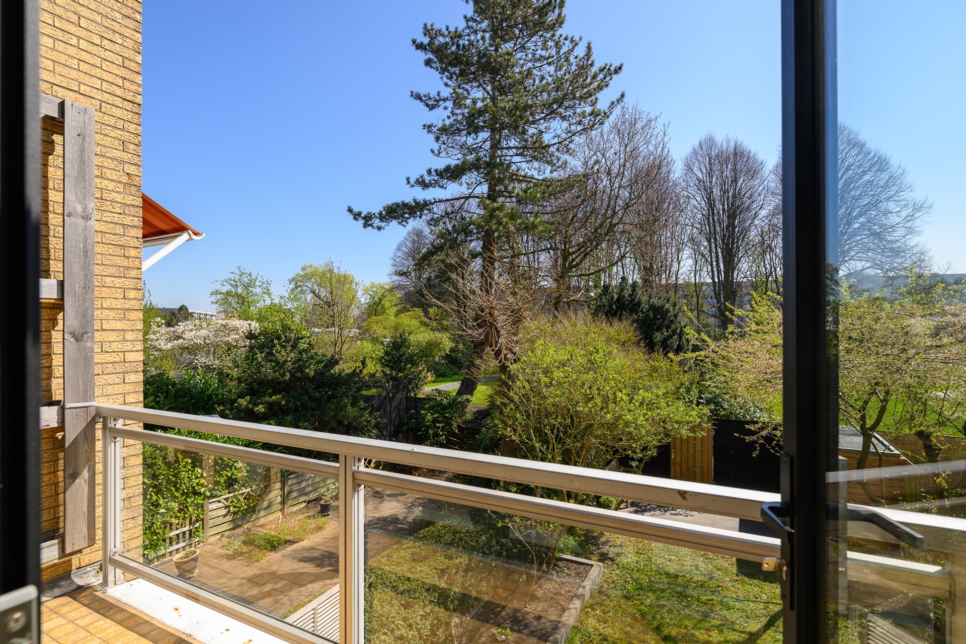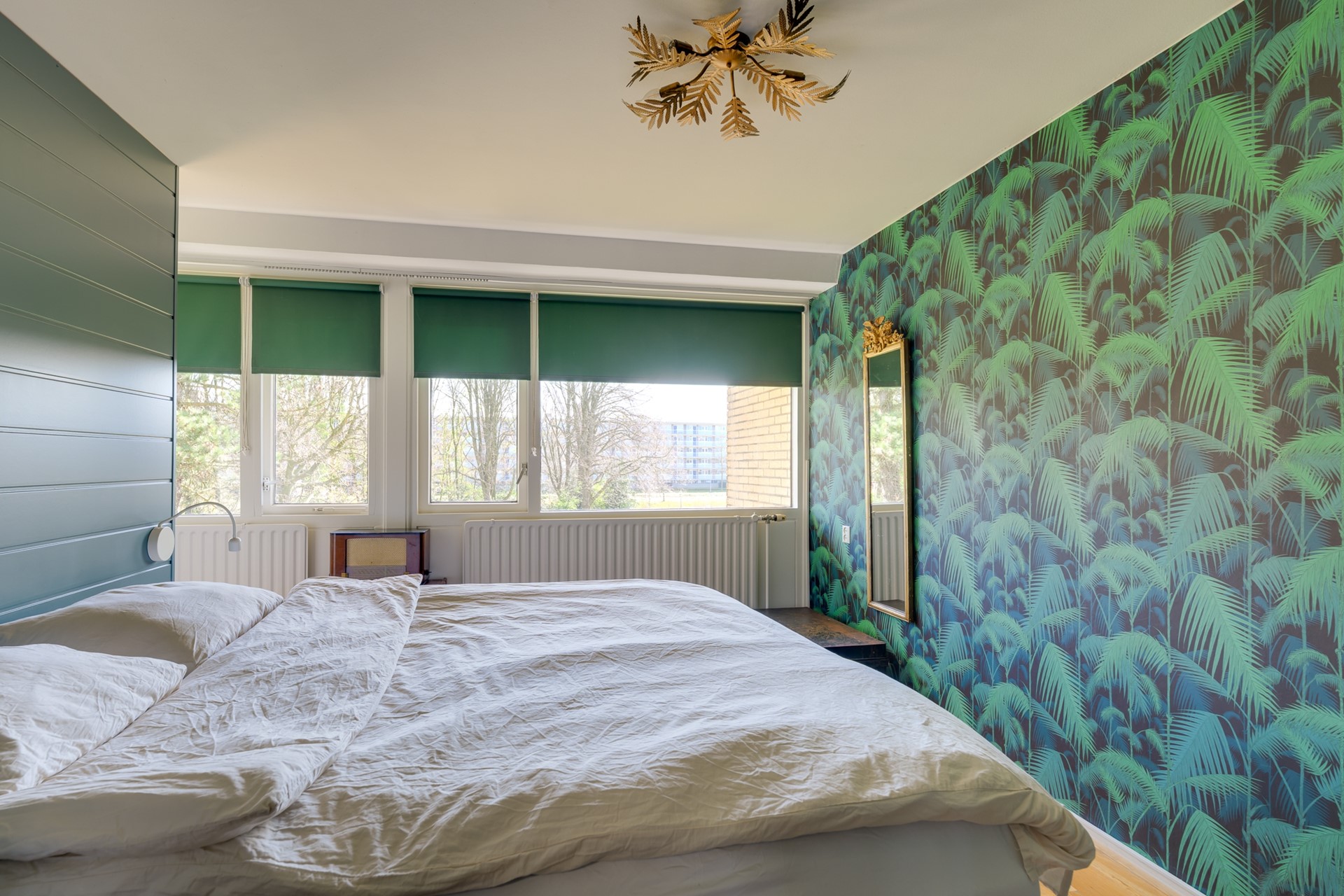 Trap op en je komt in een enorme, lichte woonkamer met een waanzinnig uitzicht over het park aan de achterkant. Grote ramen zorgen voor een zee aan licht, en de open haard maakt het extra knus in de winter. Je ploft hier neer met een plaid, Netflix aan – en de dag is compleet. Aan de voorzijde zit een fijne werk- of hobbykamer, met toegang tot een balkon – jouw eigen plek om even te ontsnappen aan de hectiek van de dag.