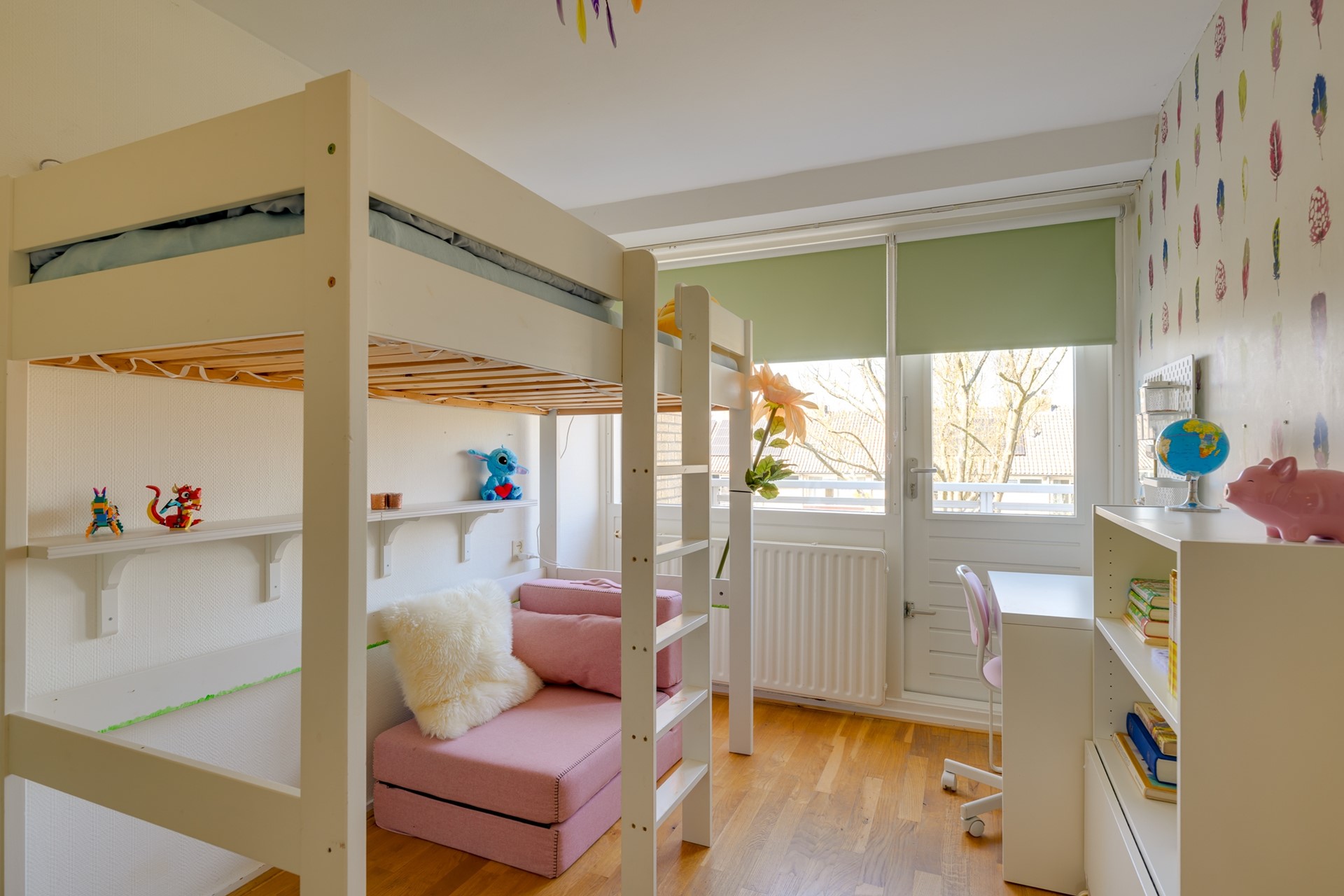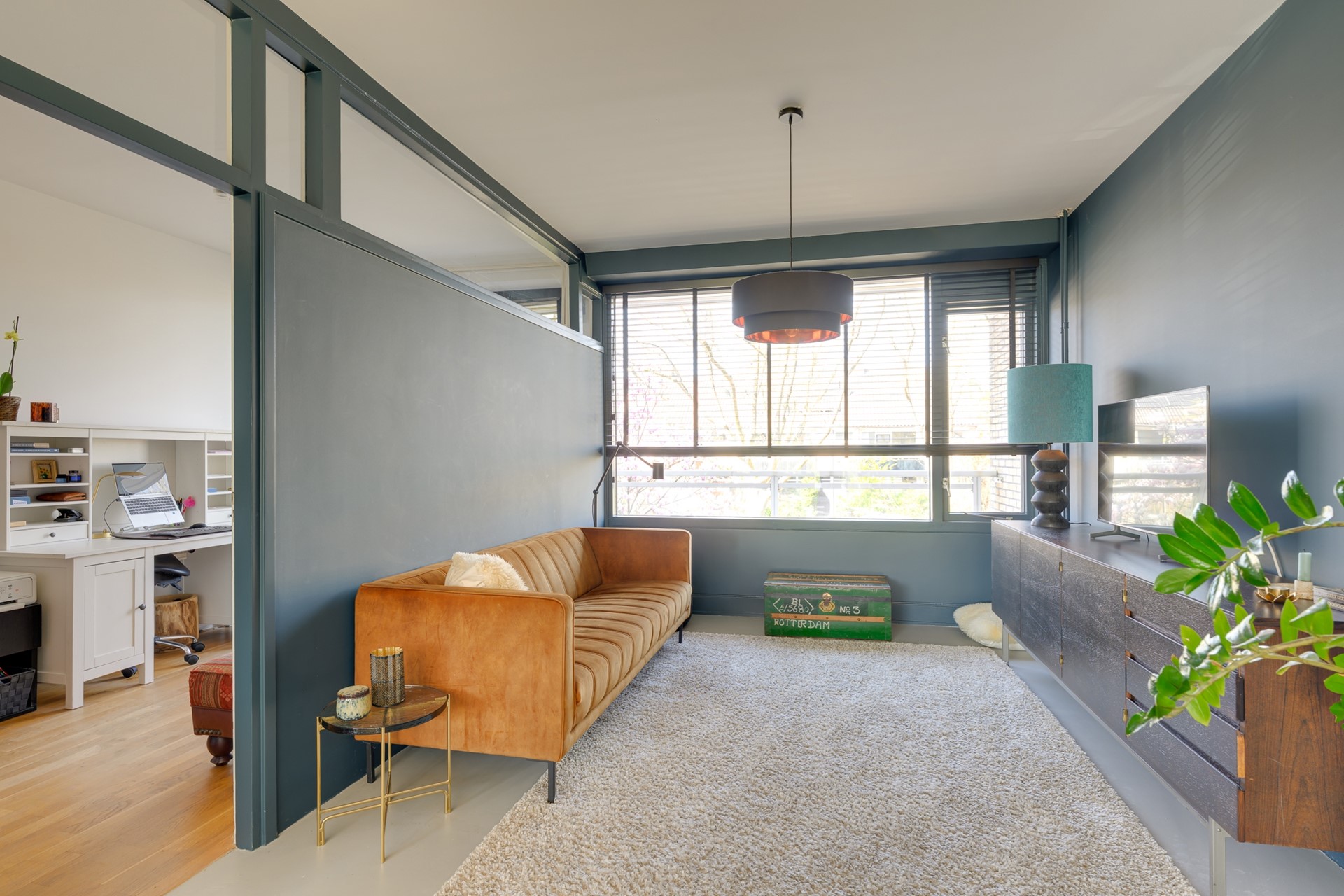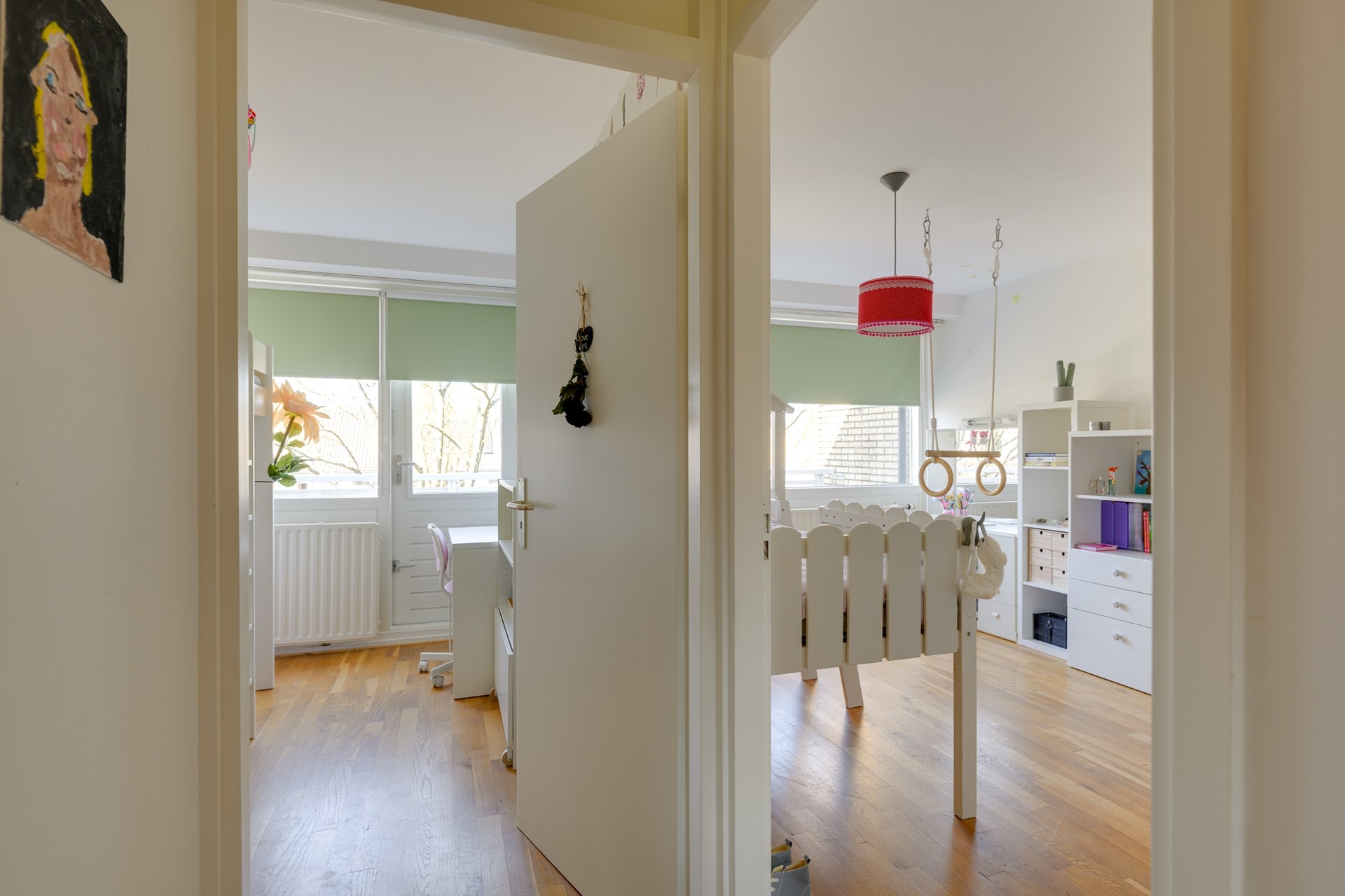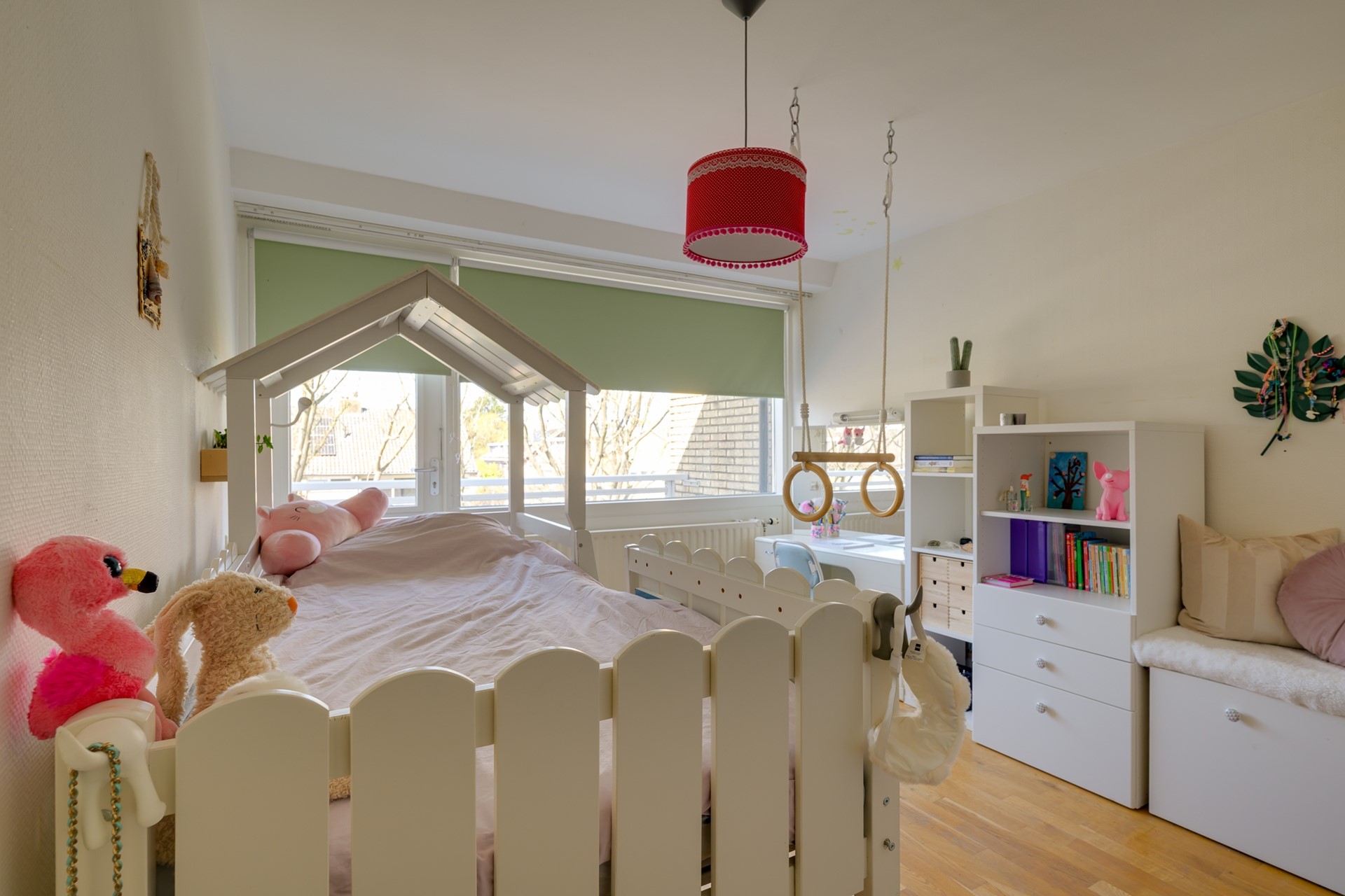 Trap op en je komt in een enorme, lichte woonkamer met een waanzinnig uitzicht over het park aan de achterkant. Grote ramen zorgen voor een zee aan licht, en de open haard maakt het extra knus in de winter. Je ploft hier neer met een plaid, Netflix aan – en de dag is compleet. Aan de voorzijde zit een fijne werk- of hobbykamer, met toegang tot een balkon – jouw eigen plek om even te ontsnappen aan de hectiek van de dag.