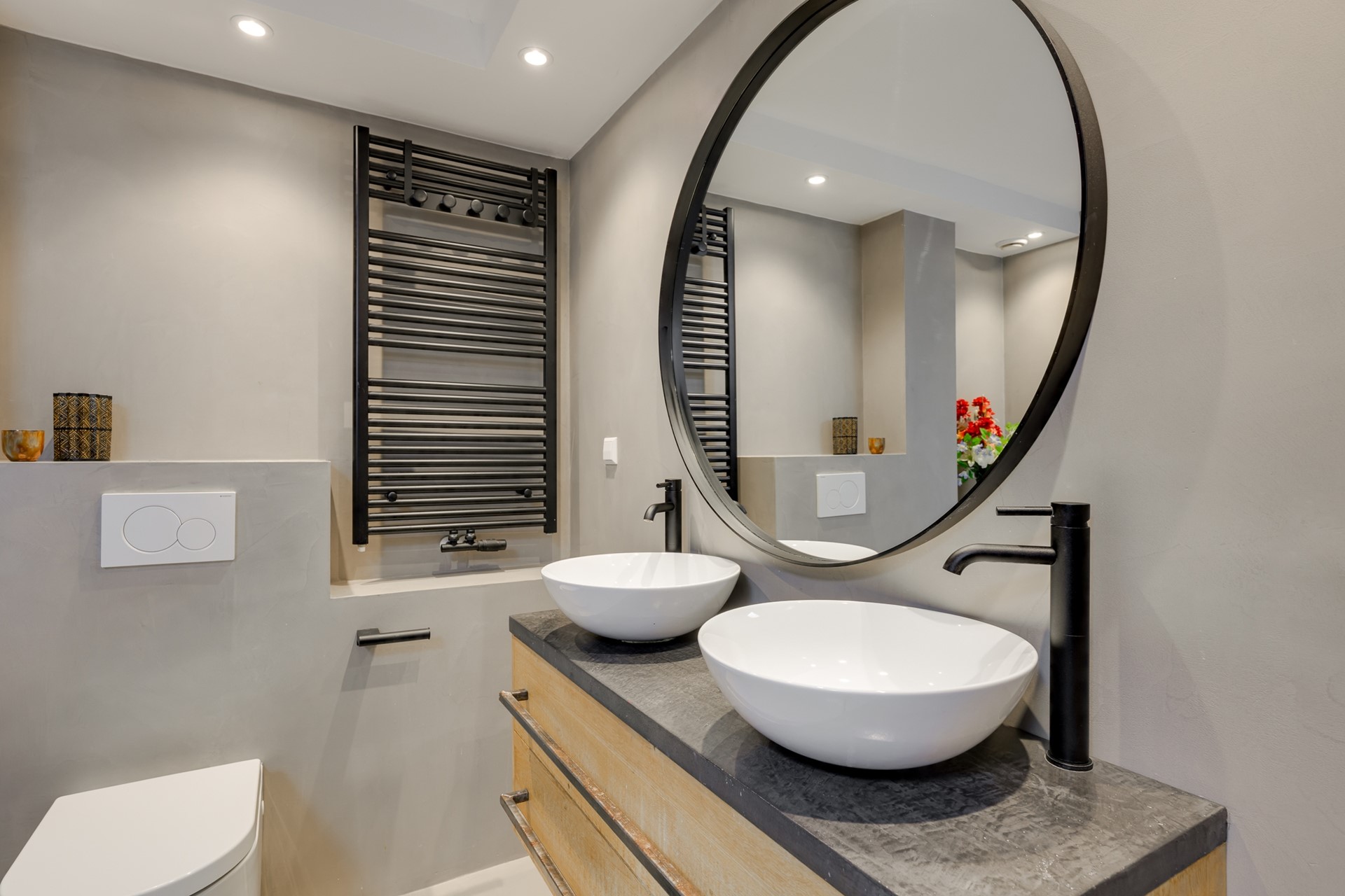 Luxe badkamer met ligbad, inloopdouche, dubbele waskommen en toilet