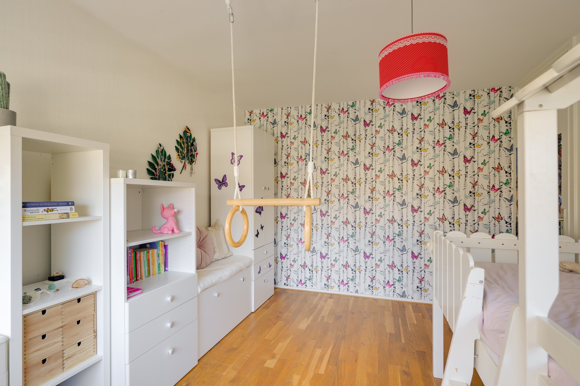 Here you'll find three bedrooms—each spacious, bright, and cleverly designed. The master bedroom at the rear is a true gem: a tranquil cocoon, with a view of the greenery and direct access to your own walk-in closet. The two front bedrooms both have access to the balcony—ideal for teenagers who want to get some fresh air or for guests you'd like to pamper.