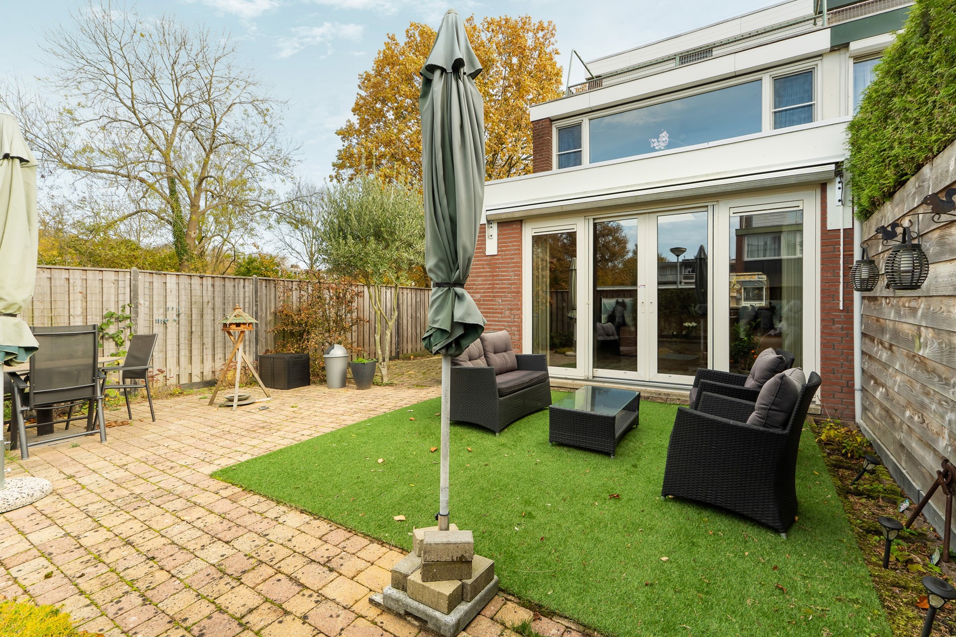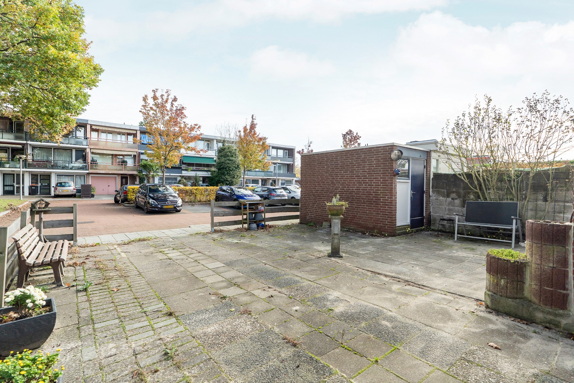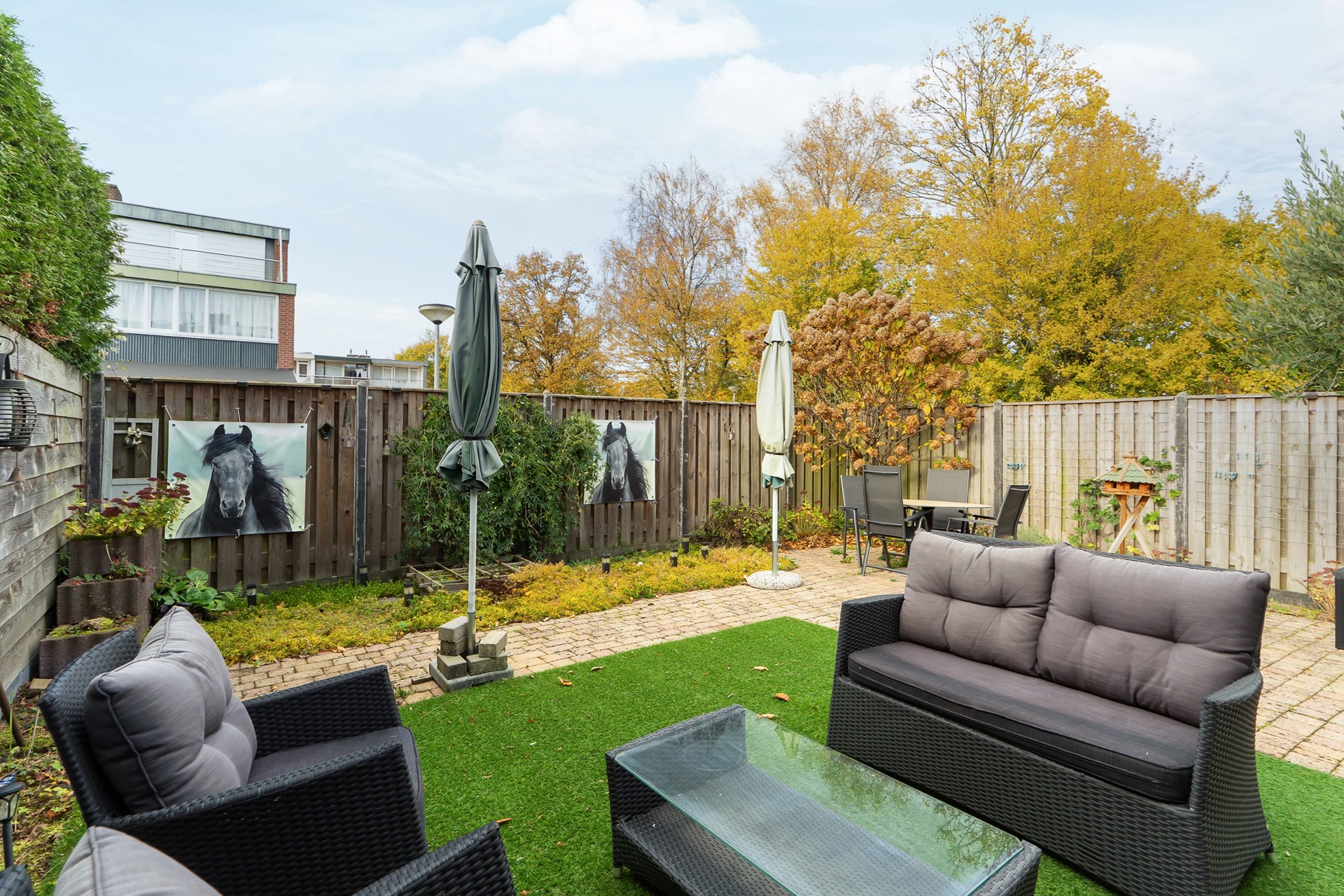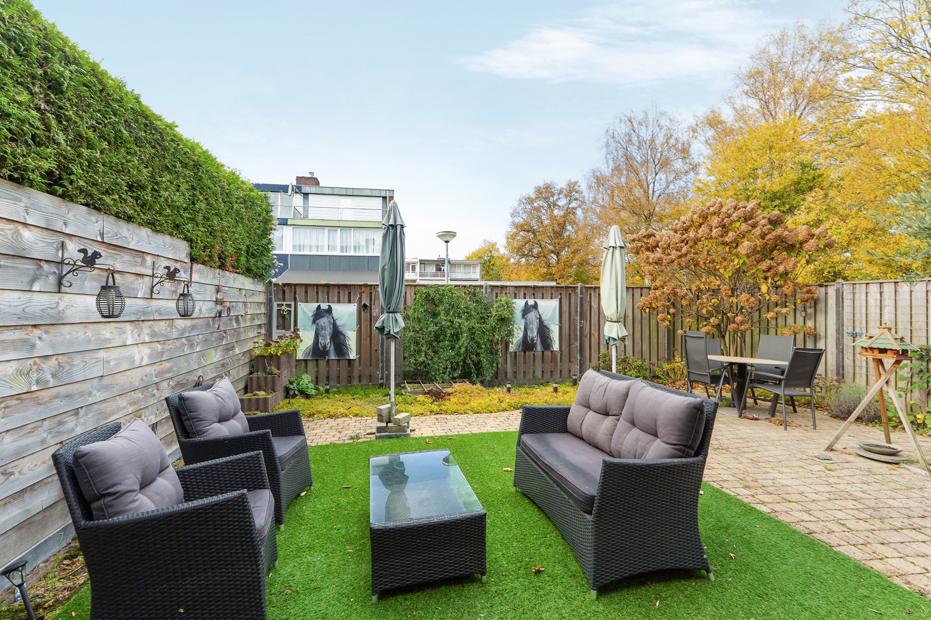 De woning beschikt over een voortuin met berging, een zij tuin en een ruime achtertuin op het zuidwesten, waar je van de middag- en avondzon kunt genieten. De tuin is verzorgd aangelegd, voorzien van een terras en beplanting, en heeft een achterom voor extra gemak. Via de voorzijde en achterzijde is de garage te bereiken welke in 2022 is aangebouwd. Dankzij de hoekligging heb je hier veel privacy en een rustige ligging.