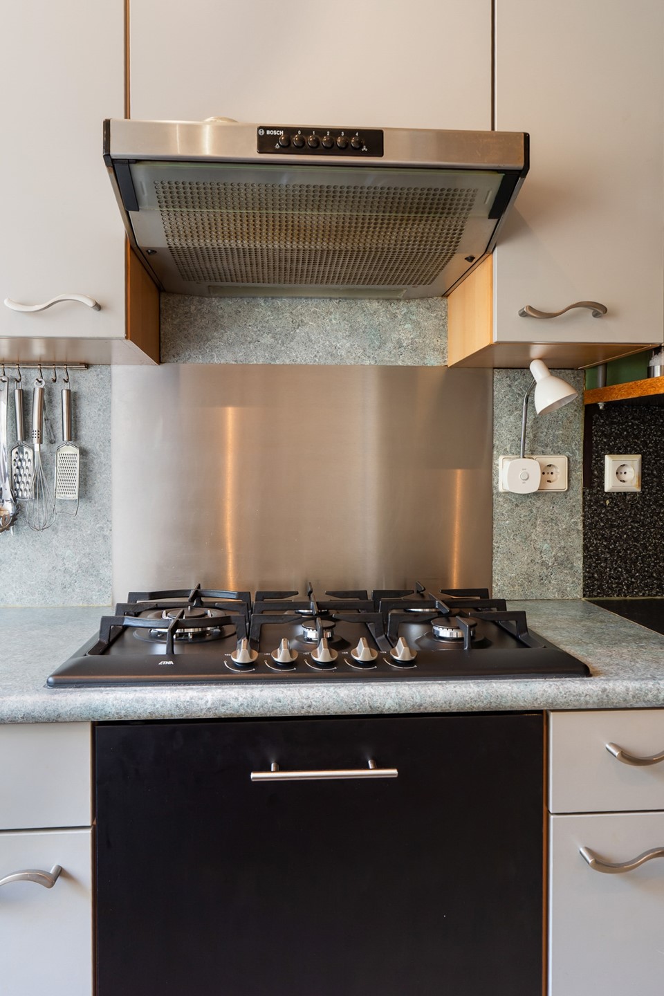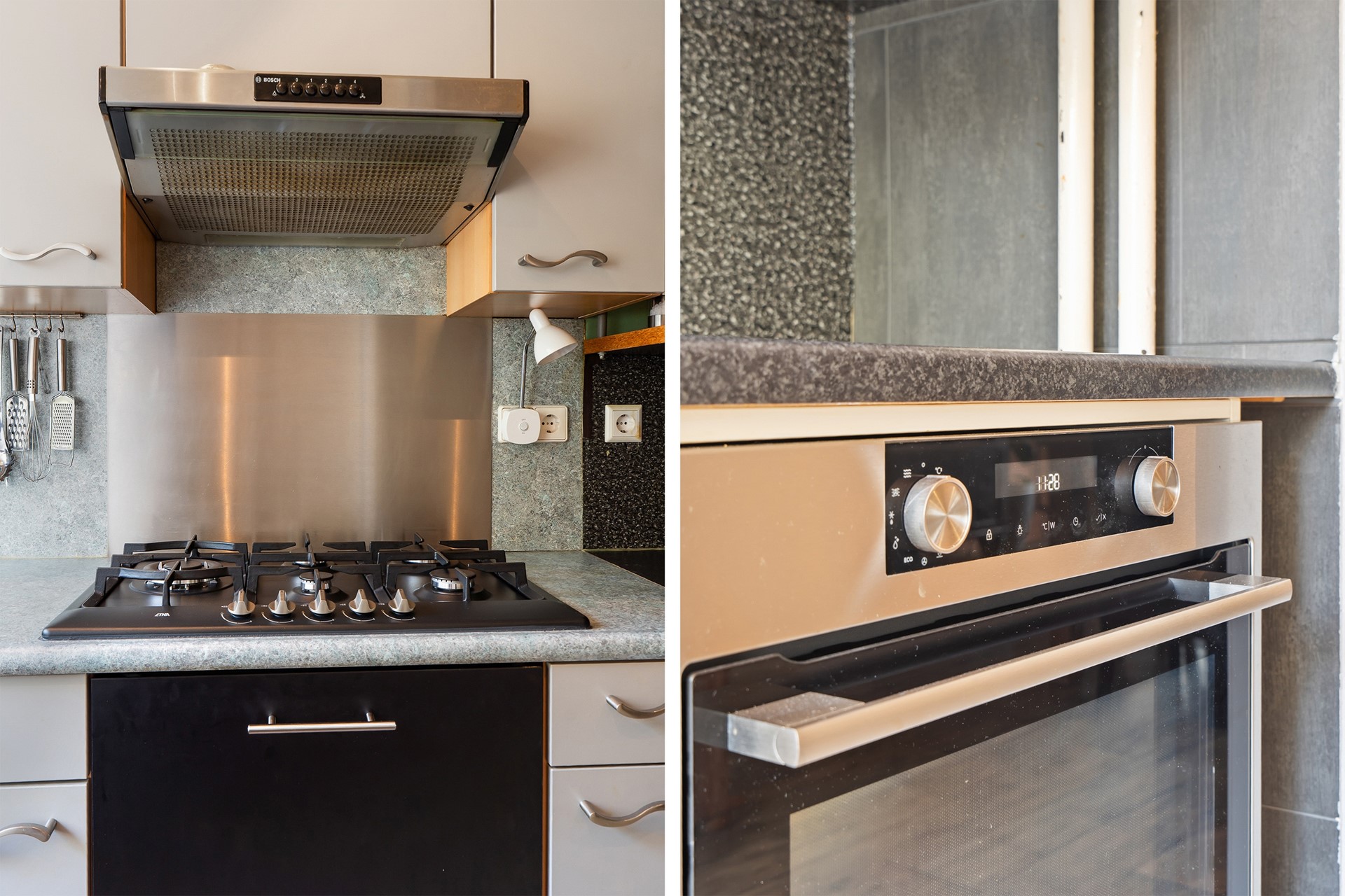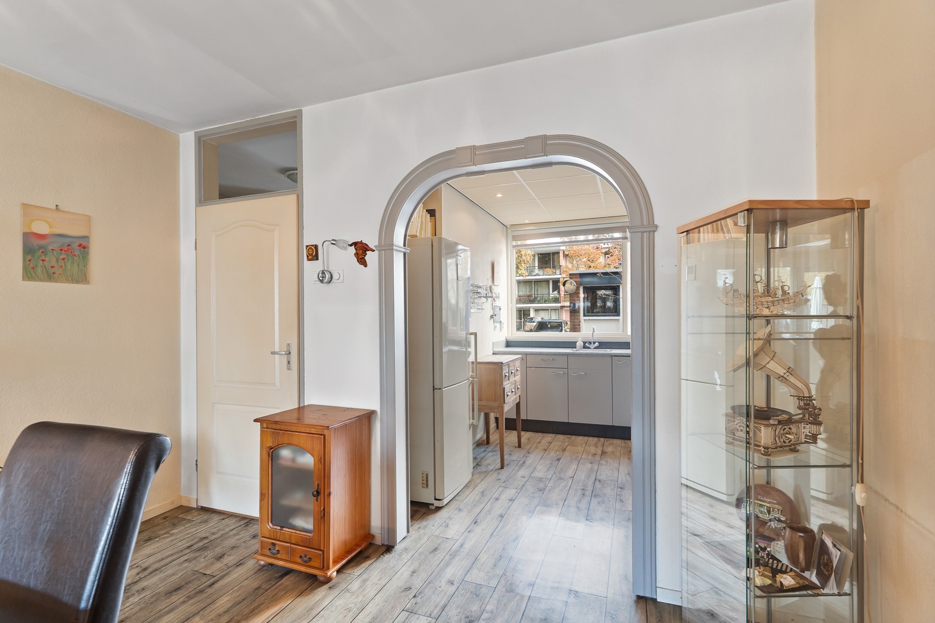 Via de verzorgde voortuin met stenen berging en garage bereik je de entree van de woning. In de hal bevinden zich de meterkast, het toilet, de trapopgang naar de eerste verdieping en toegang tot de woonkamer. De ruime woonkamer is aan de achterzijde over de volle breedte uitgebouwd, wat zorgt voor extra leefruimte en veel lichtinval middels een dakkoepel. Met dubbele schuifdeuren is de zonnige achtertuin toegankelijk. Aan de voorzijde bevindt zich de keuken in praktische hoekopstelling, voorzien van diverse inbouwapparatuur zoals een gaskookplaat, combi-oven en vaatwasser. De gehele verdieping is voorzien van een tapijtvloer (linoleum).