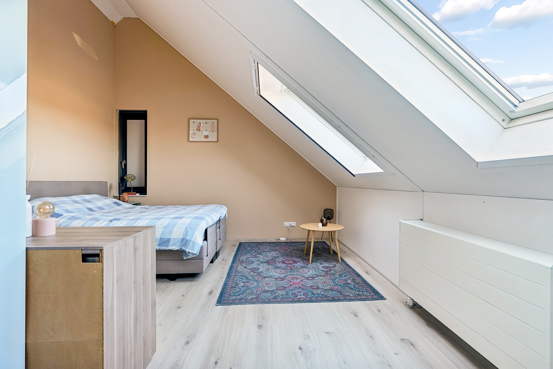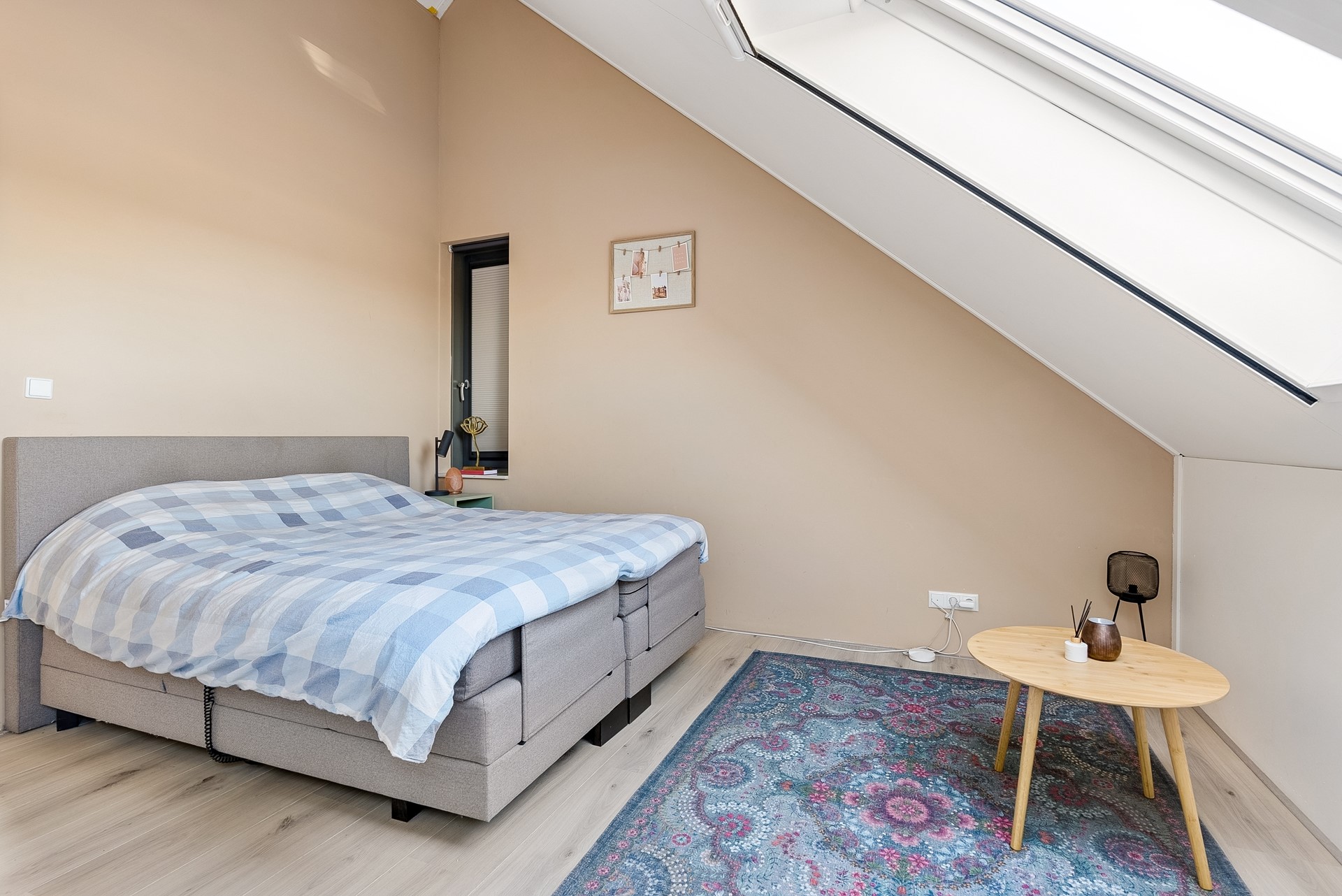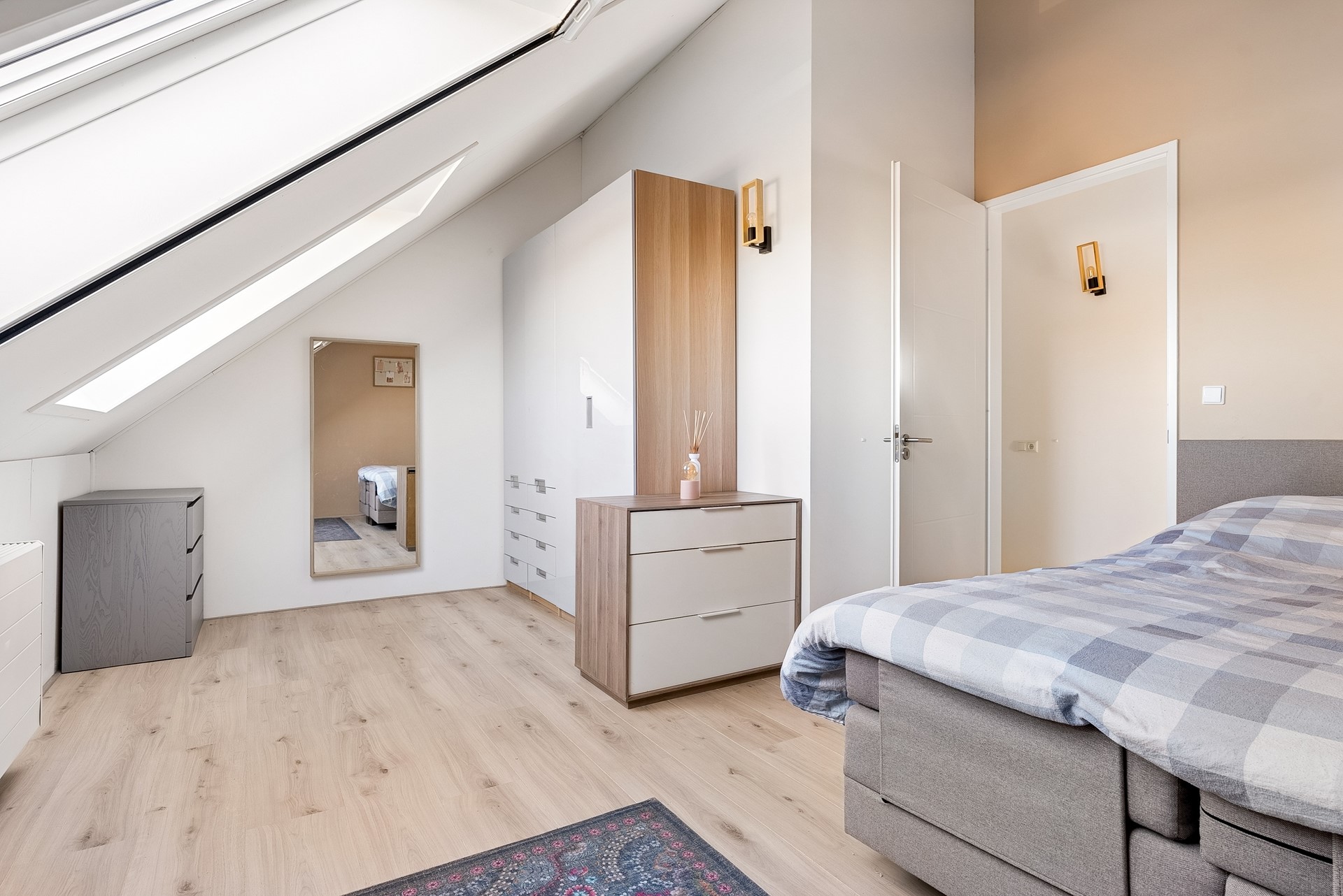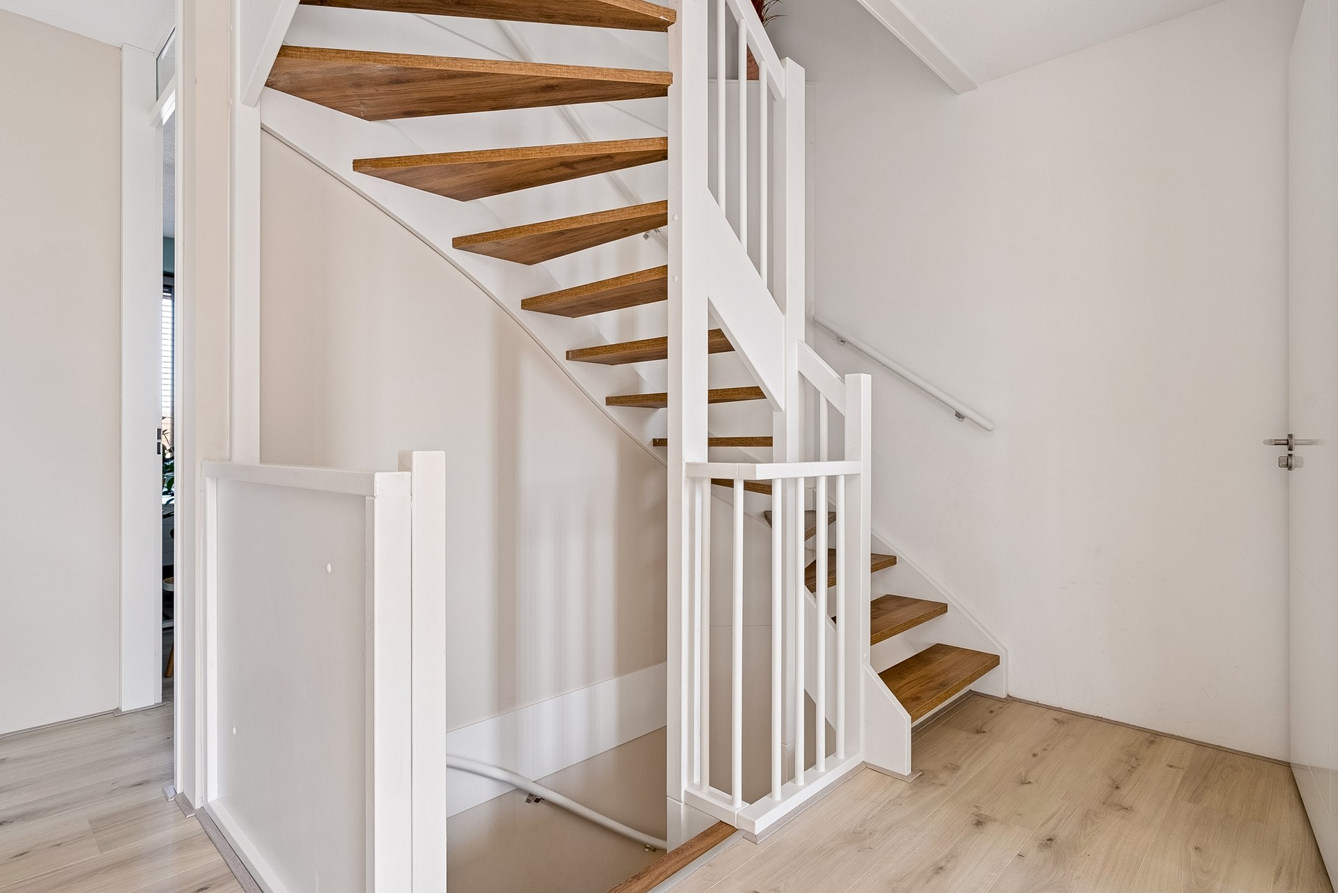 De gehele verdieping is uitgerust met een keurige laminaatvloer en stucwerk wandafwerking.