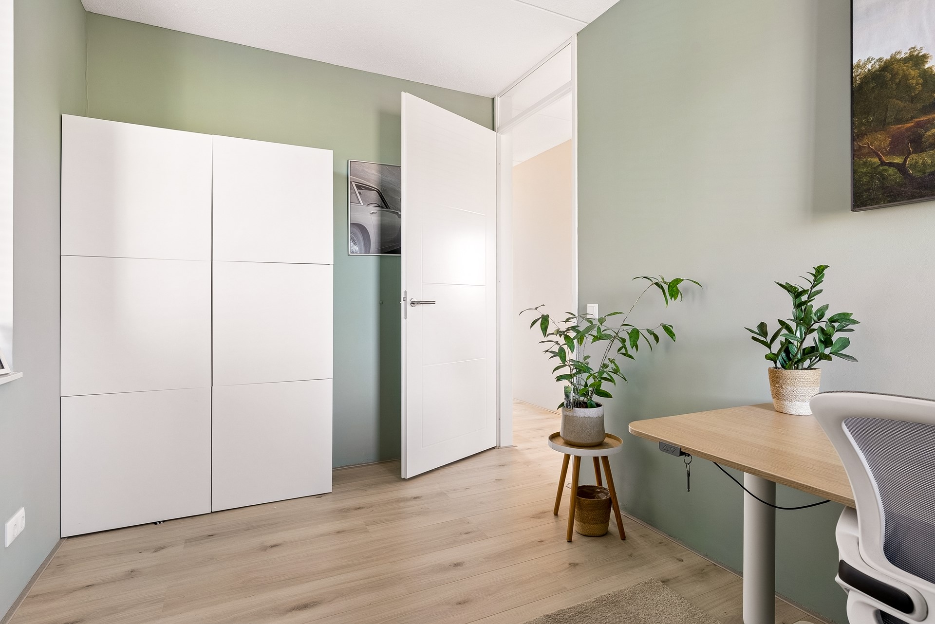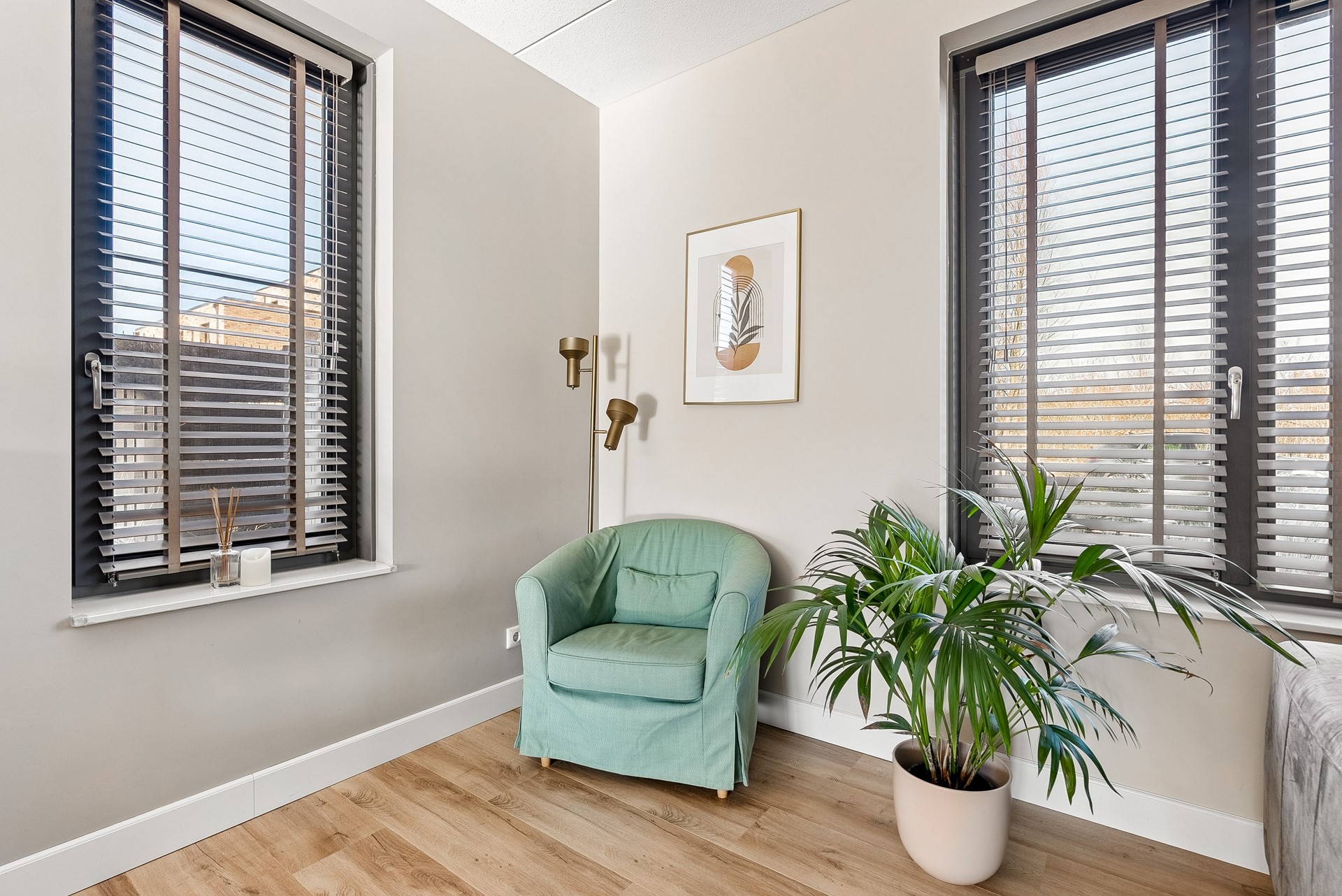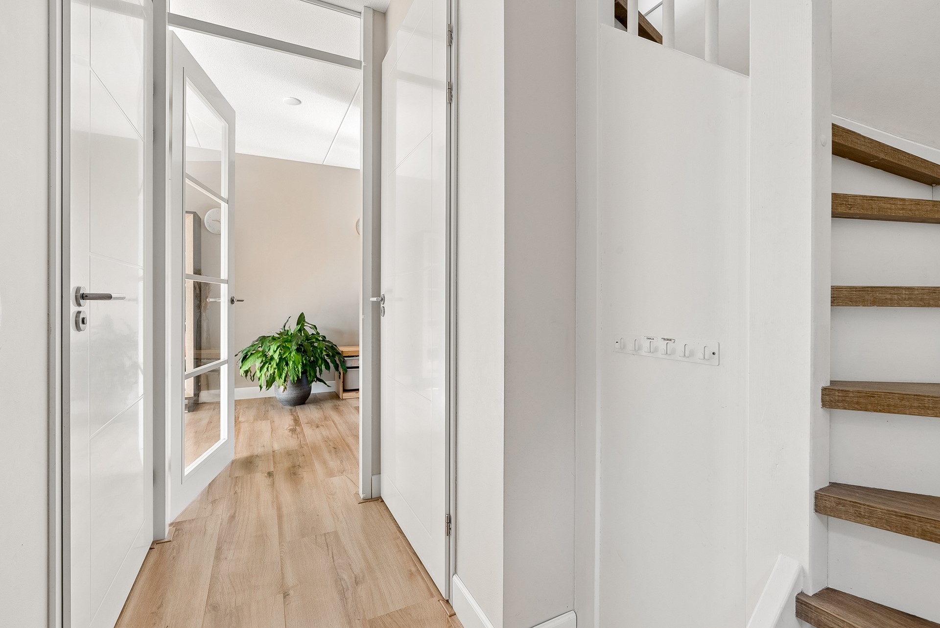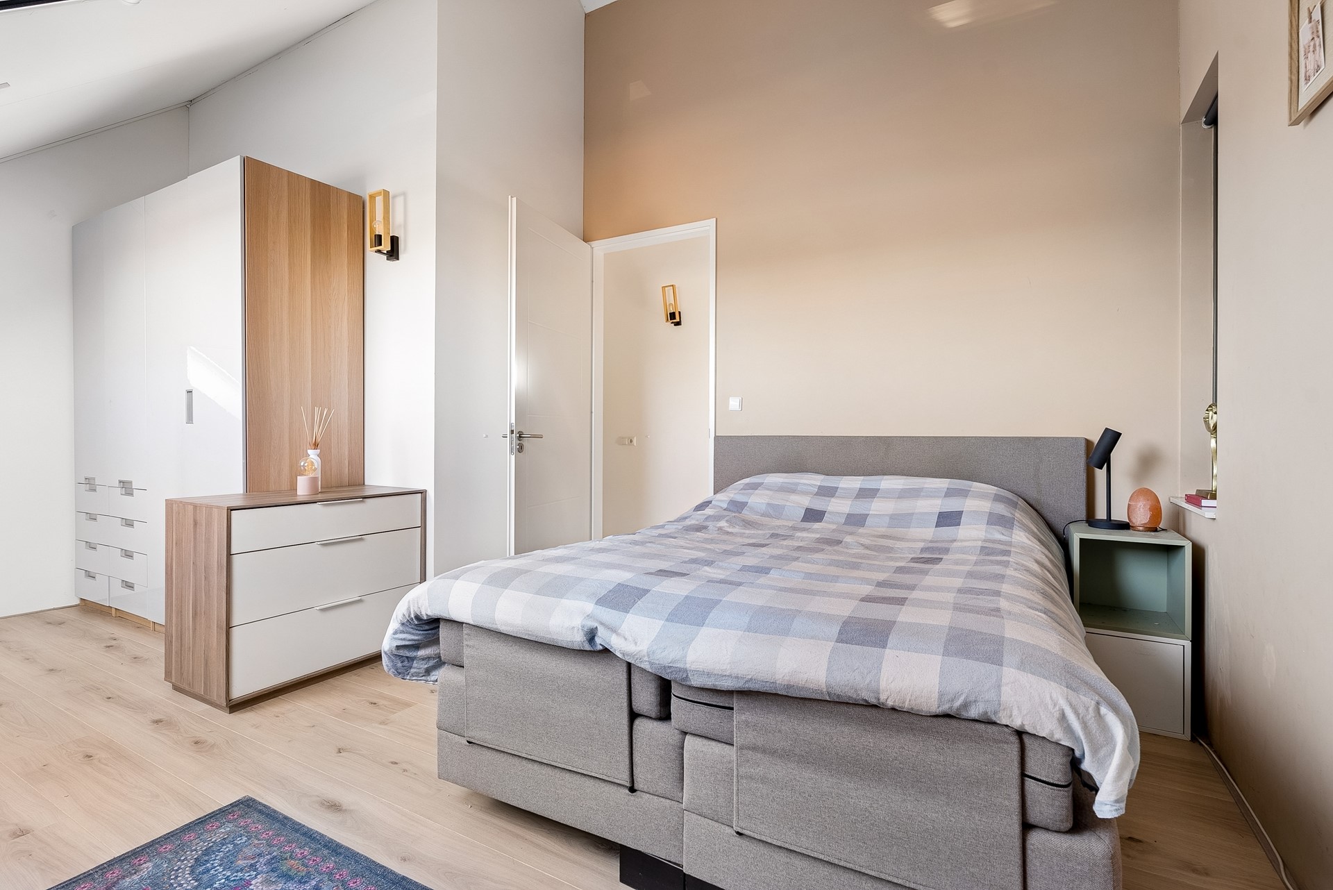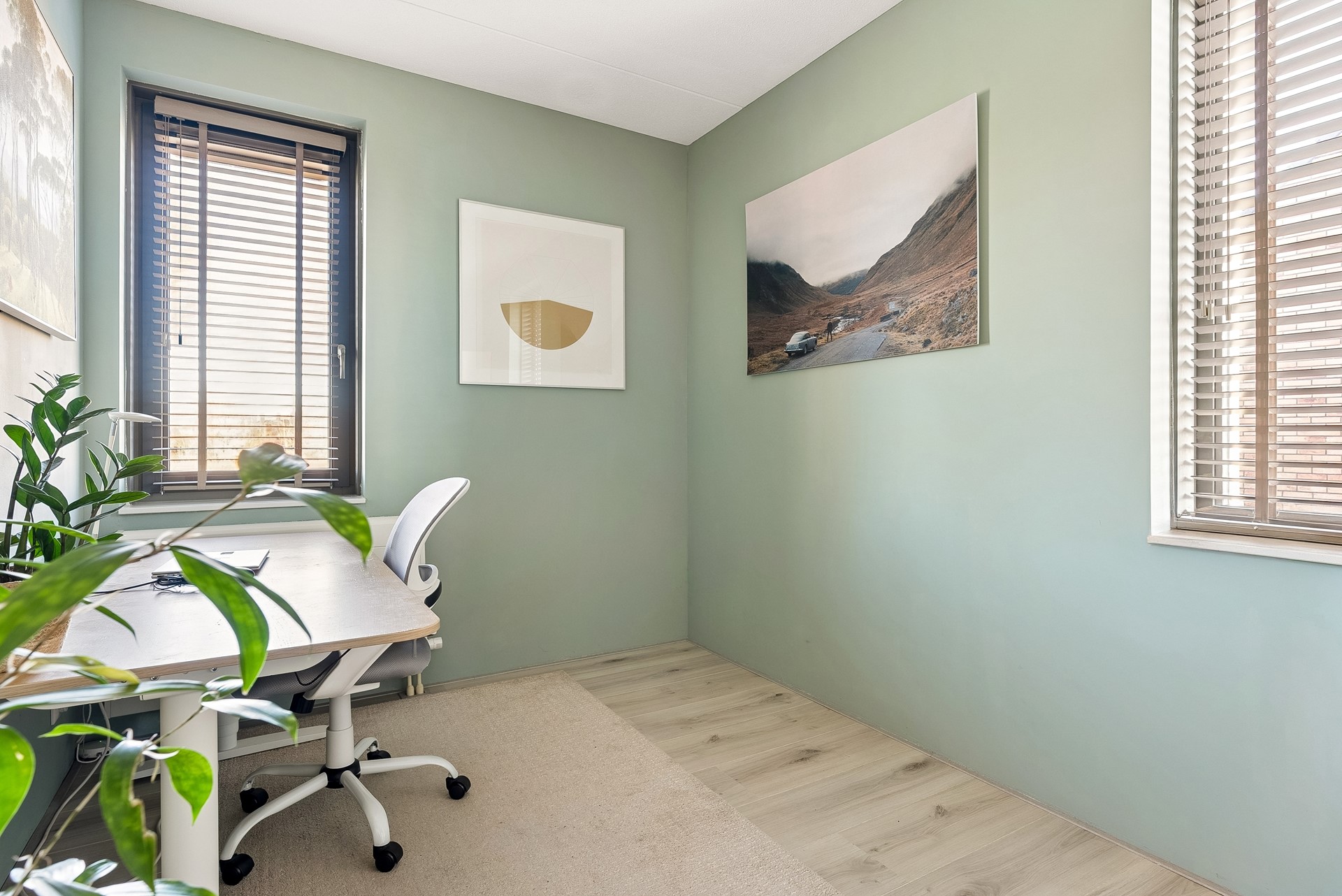 De gehele verdieping is uitgerust met een keurige laminaatvloer en stucwerk wandafwerking.