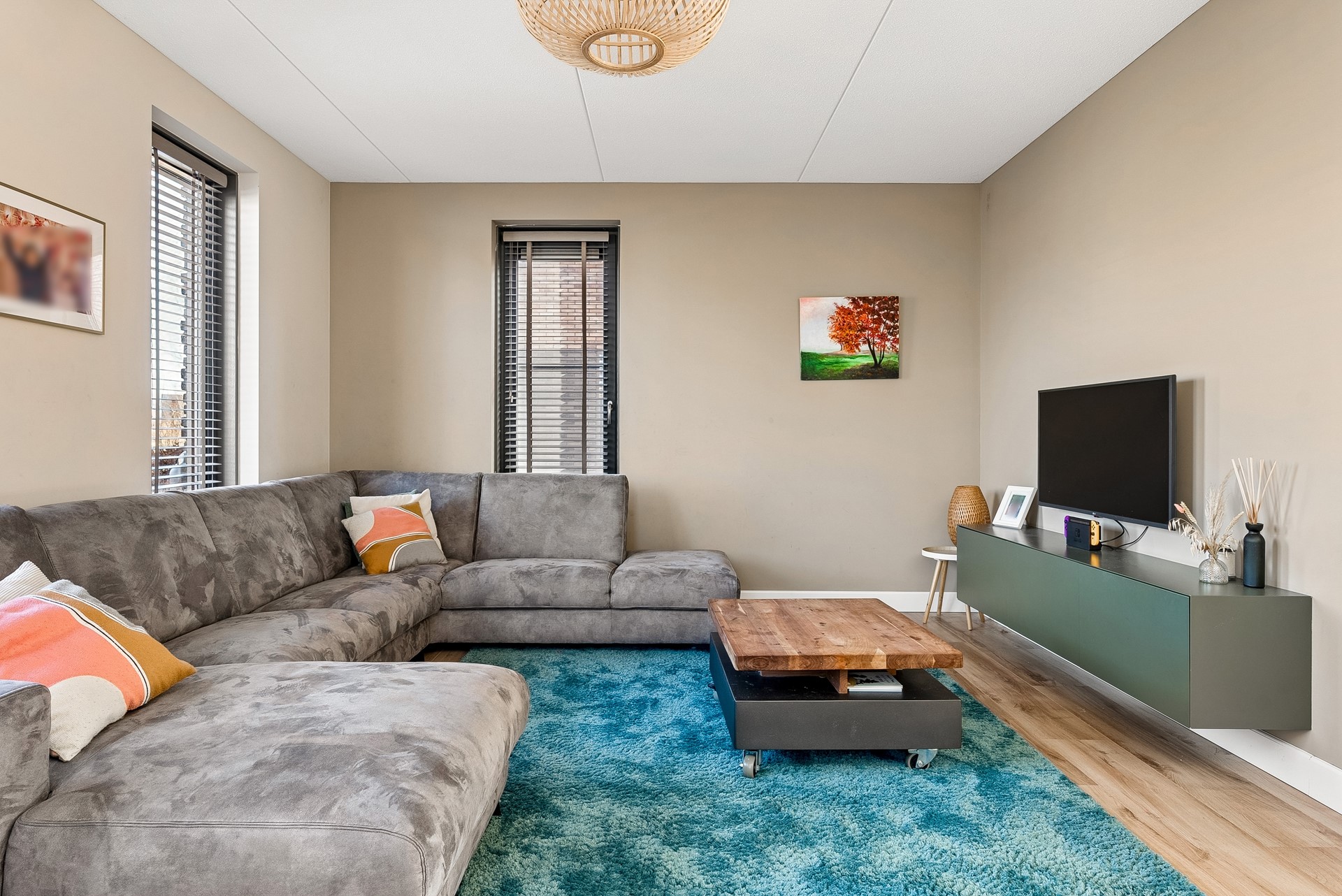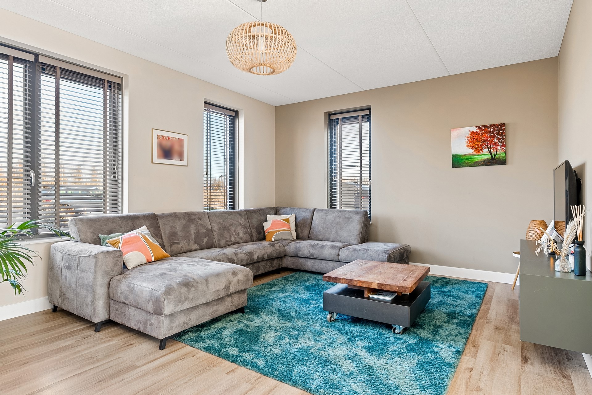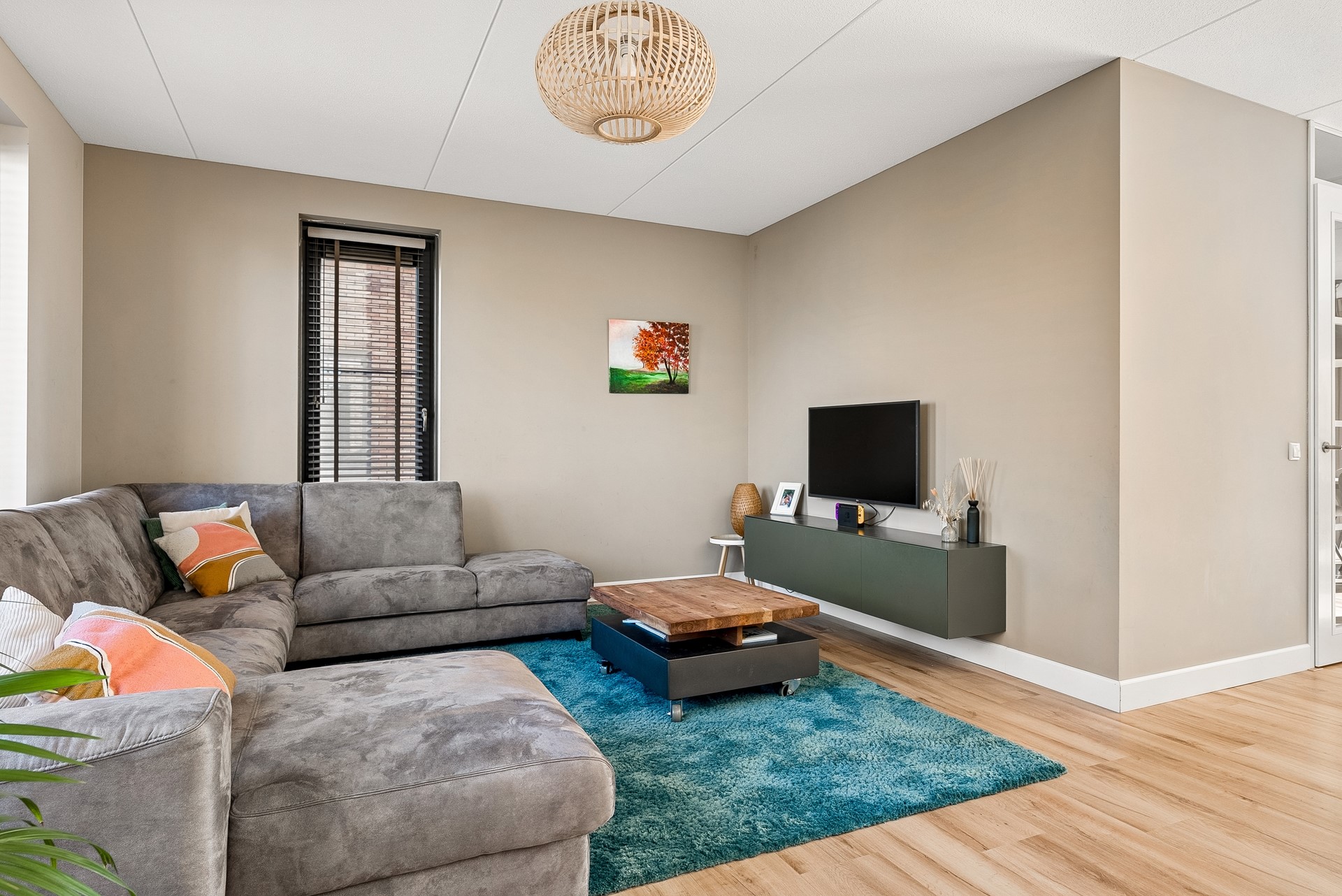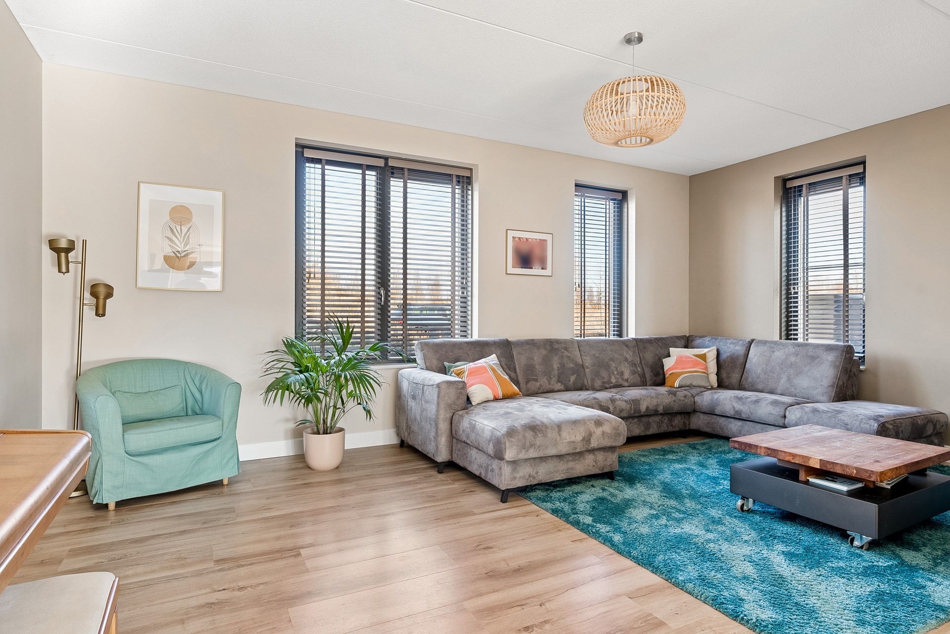 De gehele verdieping is uitgerust met een keurige laminaatvloer en stucwerk wandafwerking.