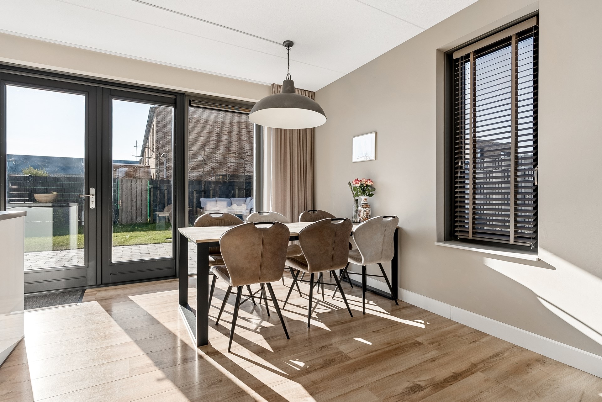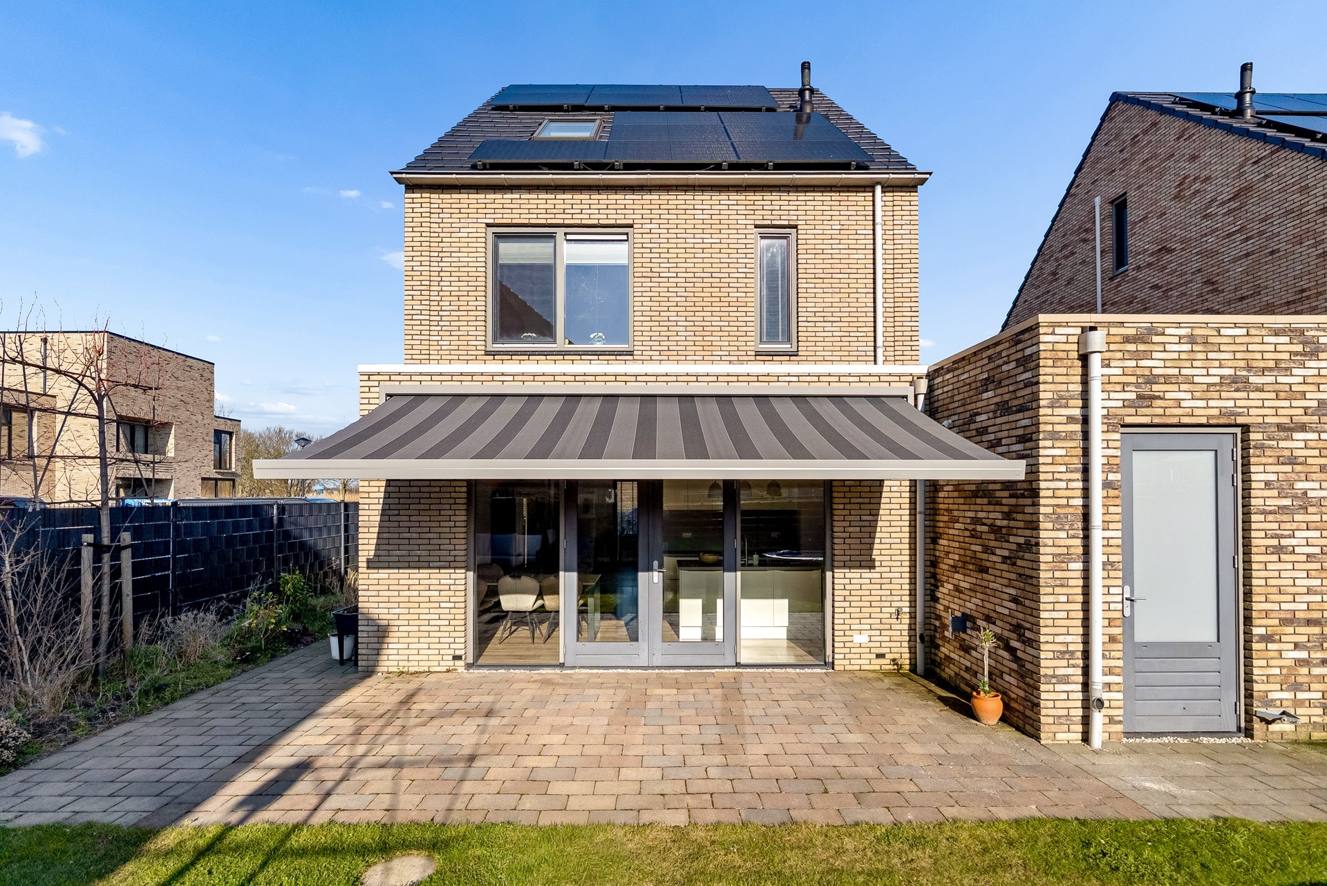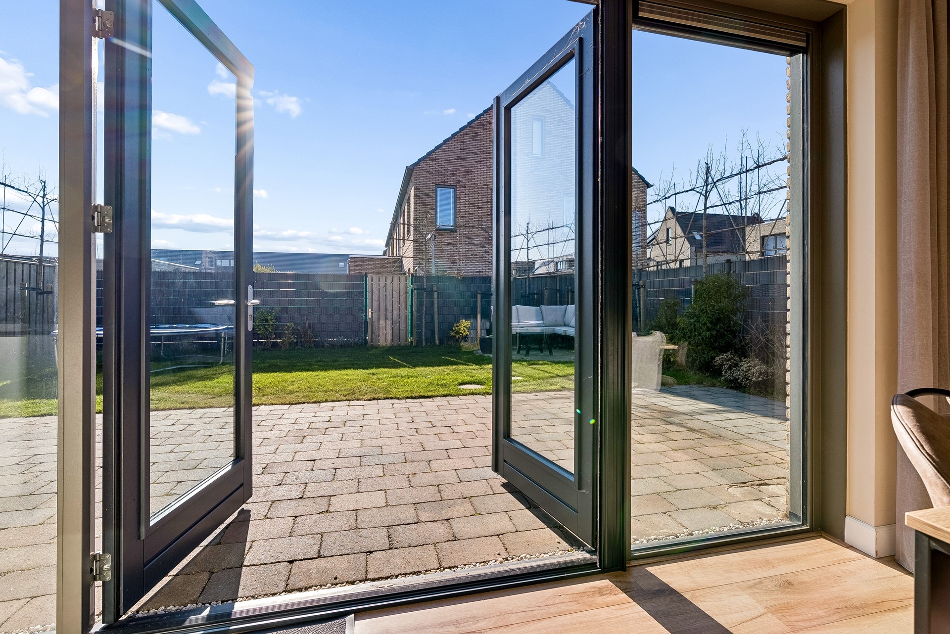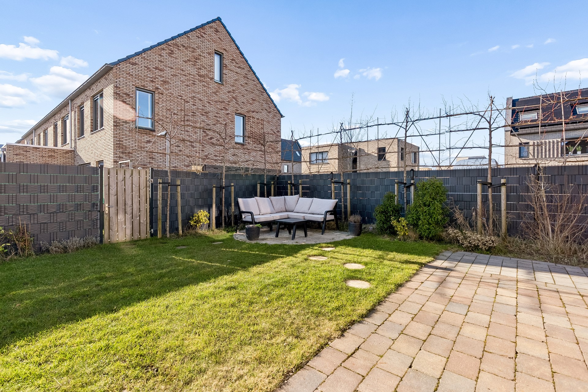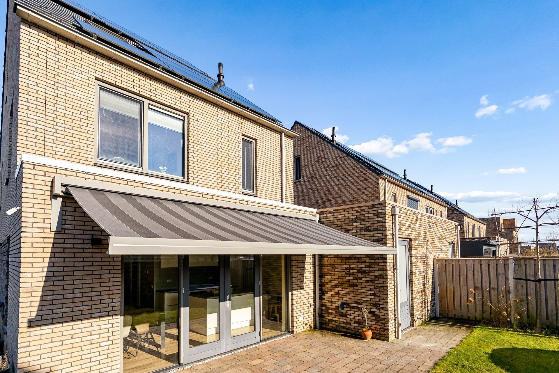 De tuin biedt mogelijkheid tot het plaatsen van meerdere zithoeken, er is een elektrisch zonnescherm aangebracht en geeft voldoende gelegenheid voor kinderen om te spelen.