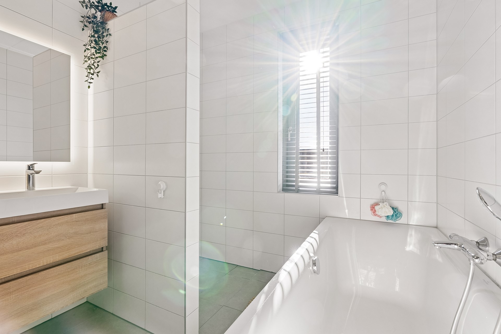 Middels het raampje kan licht en lucht de badkamer binnentreden.