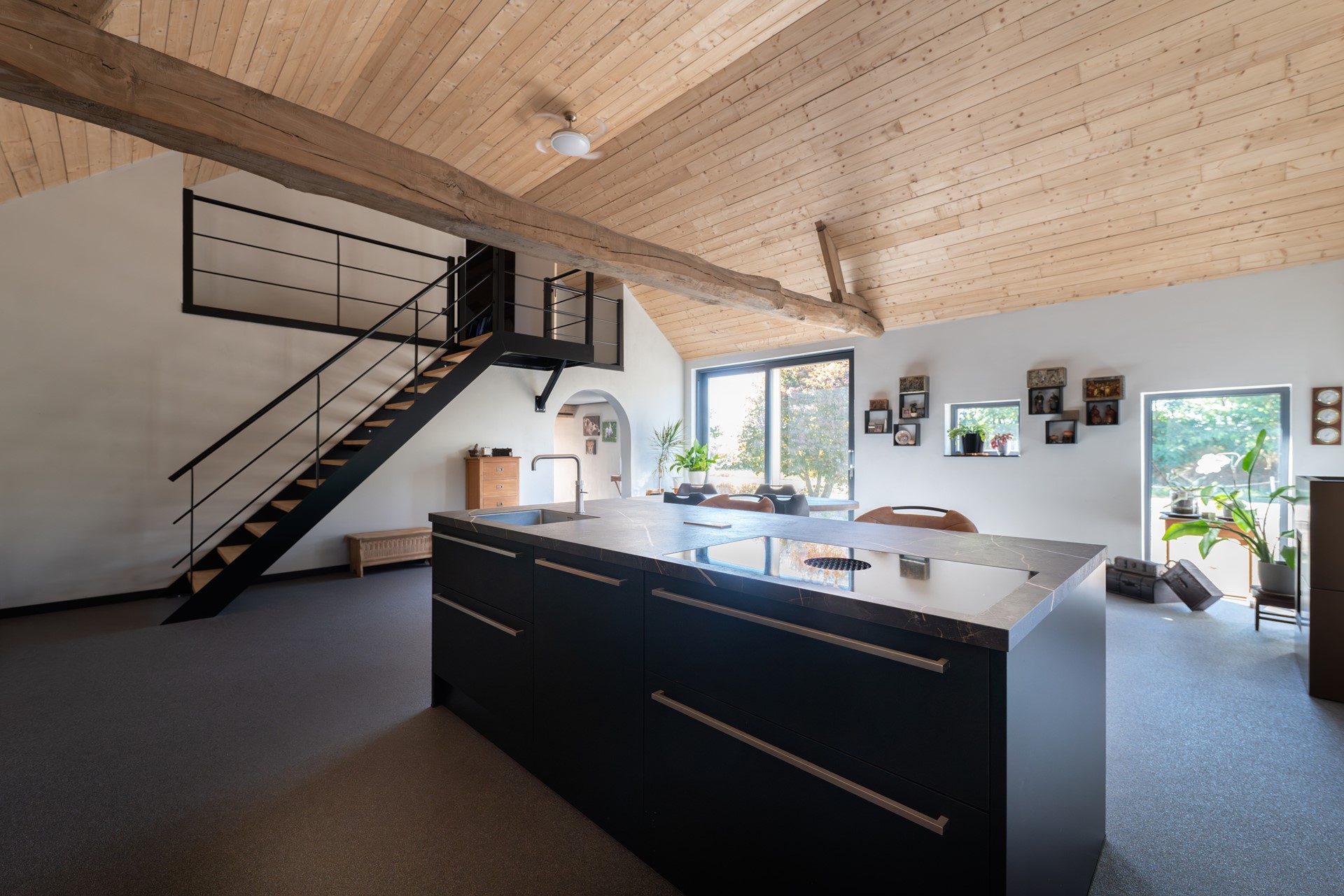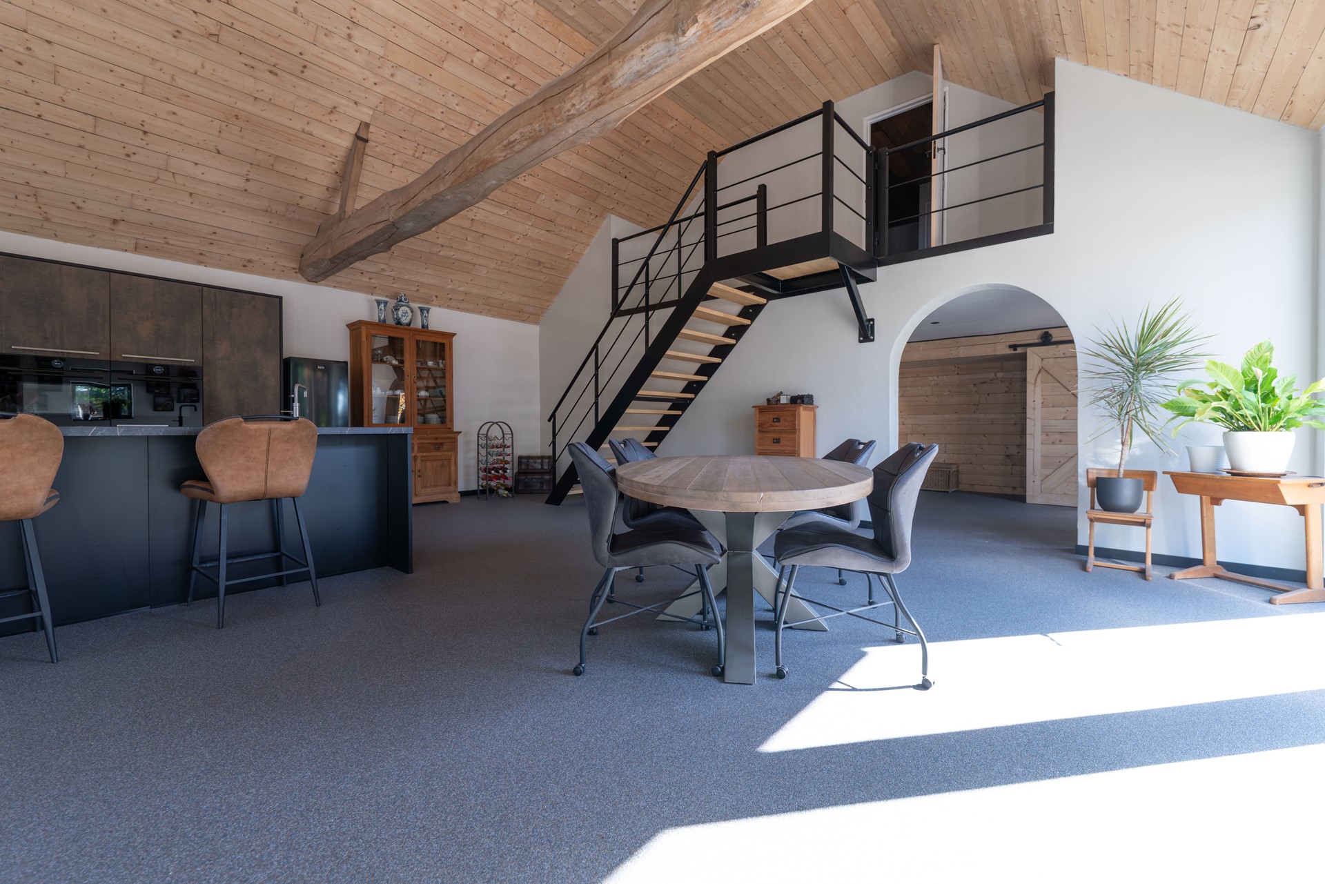 • Luxe open keuken voorzien van o.a. vaatwasser, quooker, stoomoven, combi-oven, koelkast en inductiekookplaat met interne afzuiging