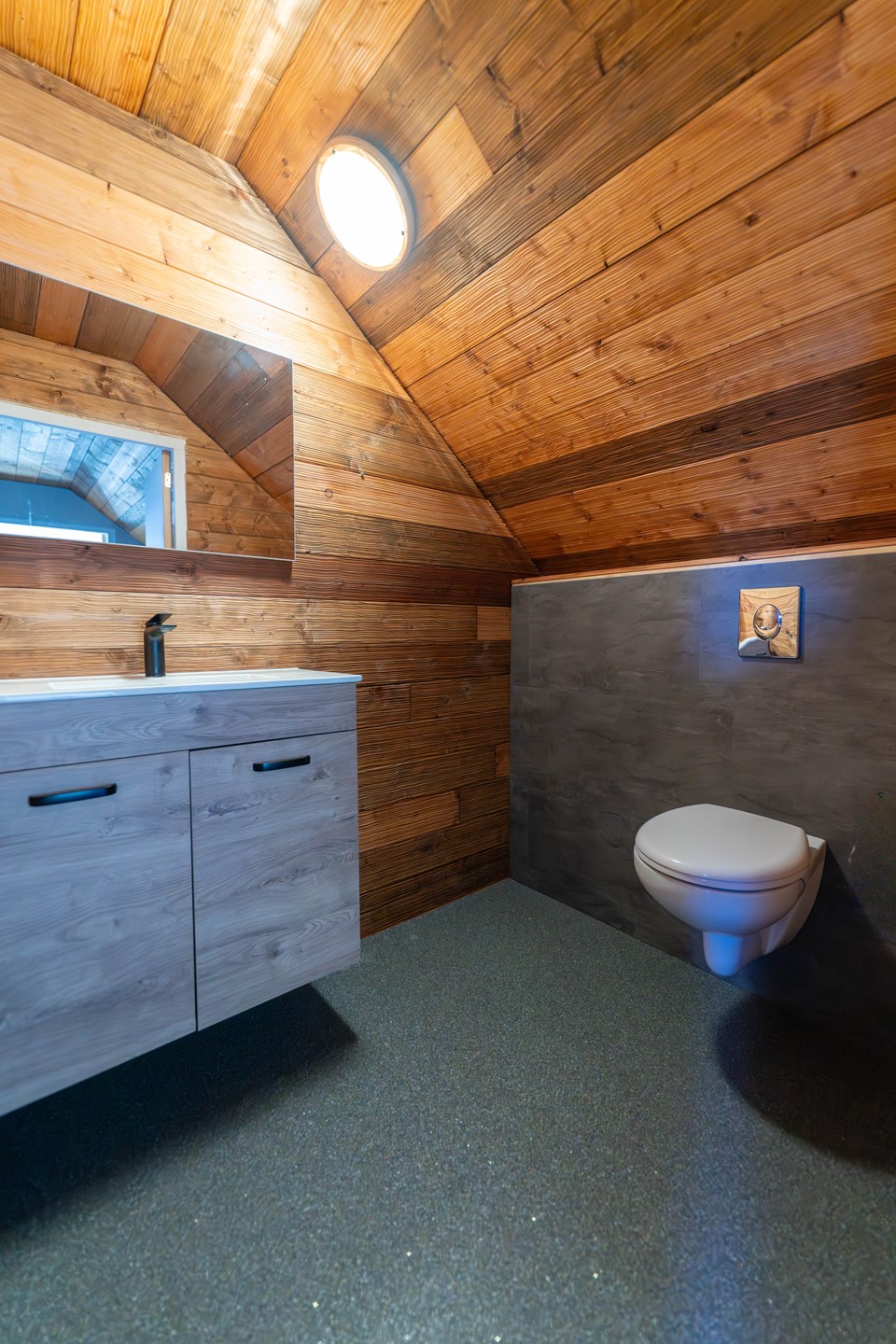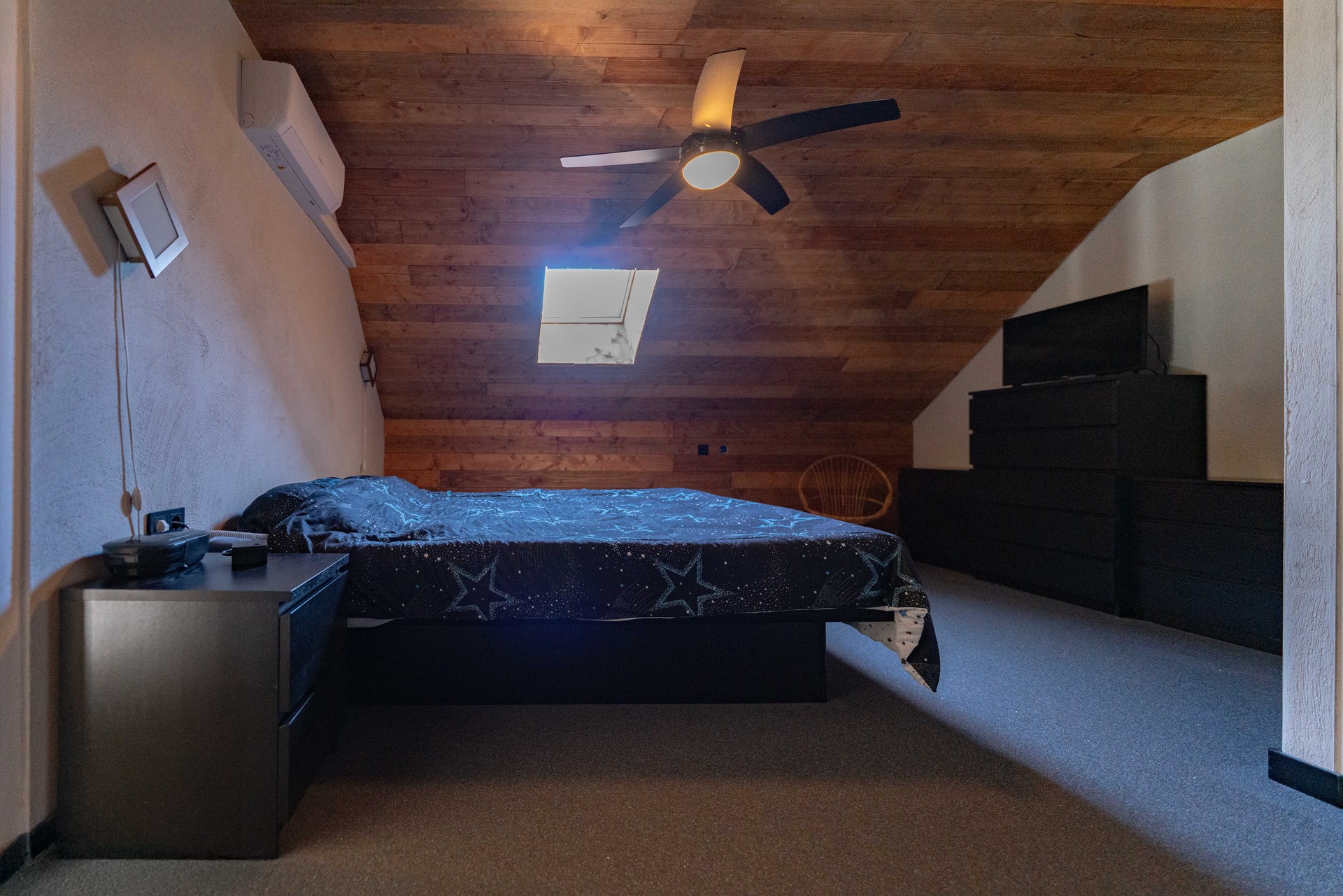 • Slaapkamer met airco (verwarmen/koelen) en aansluitend een compacte badkamer met wastafel en toilet