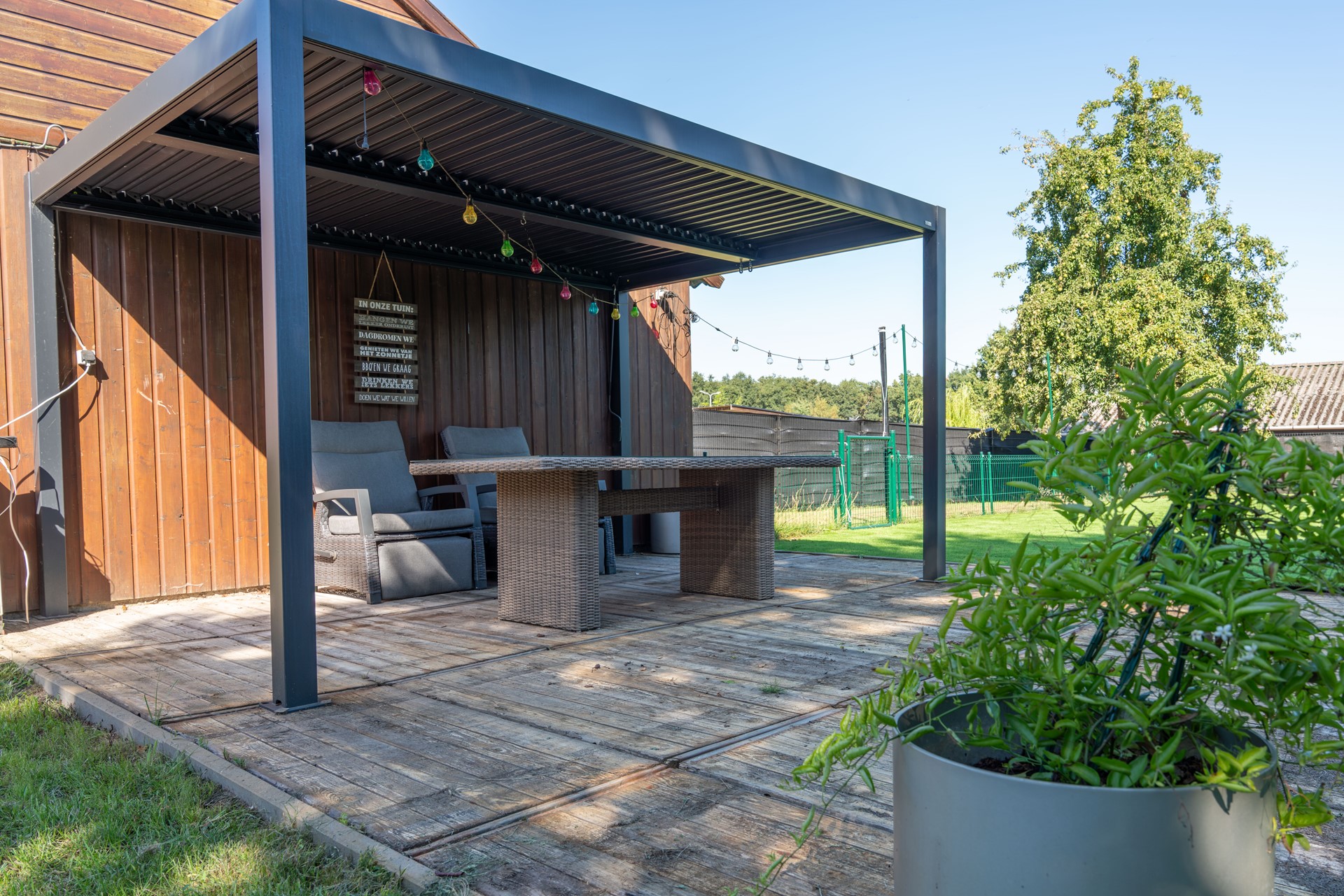 • Serre met elektrische zonneluifel