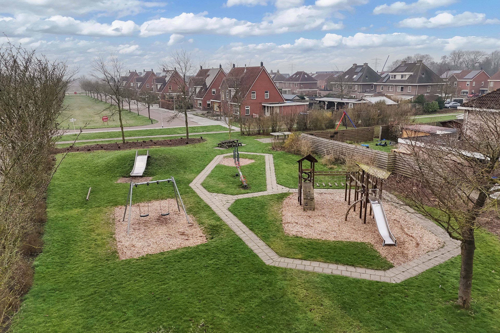 Buiten valt direct de ruime tuin op, waar je heerlijk kunt zitten dankzij de zonligging en het aanwezige zonnescherm aan de gevel bij het terras. De achtertuin met de mooie fruitbomen biedt volop ruimte voor spelende kinderen, gezellige momenten met familie en ontspannen buitenleven. Daarnaast bevindt zich op korte afstand een speeltuintje, ideaal voor gezinnen met (jonge) kinderen.