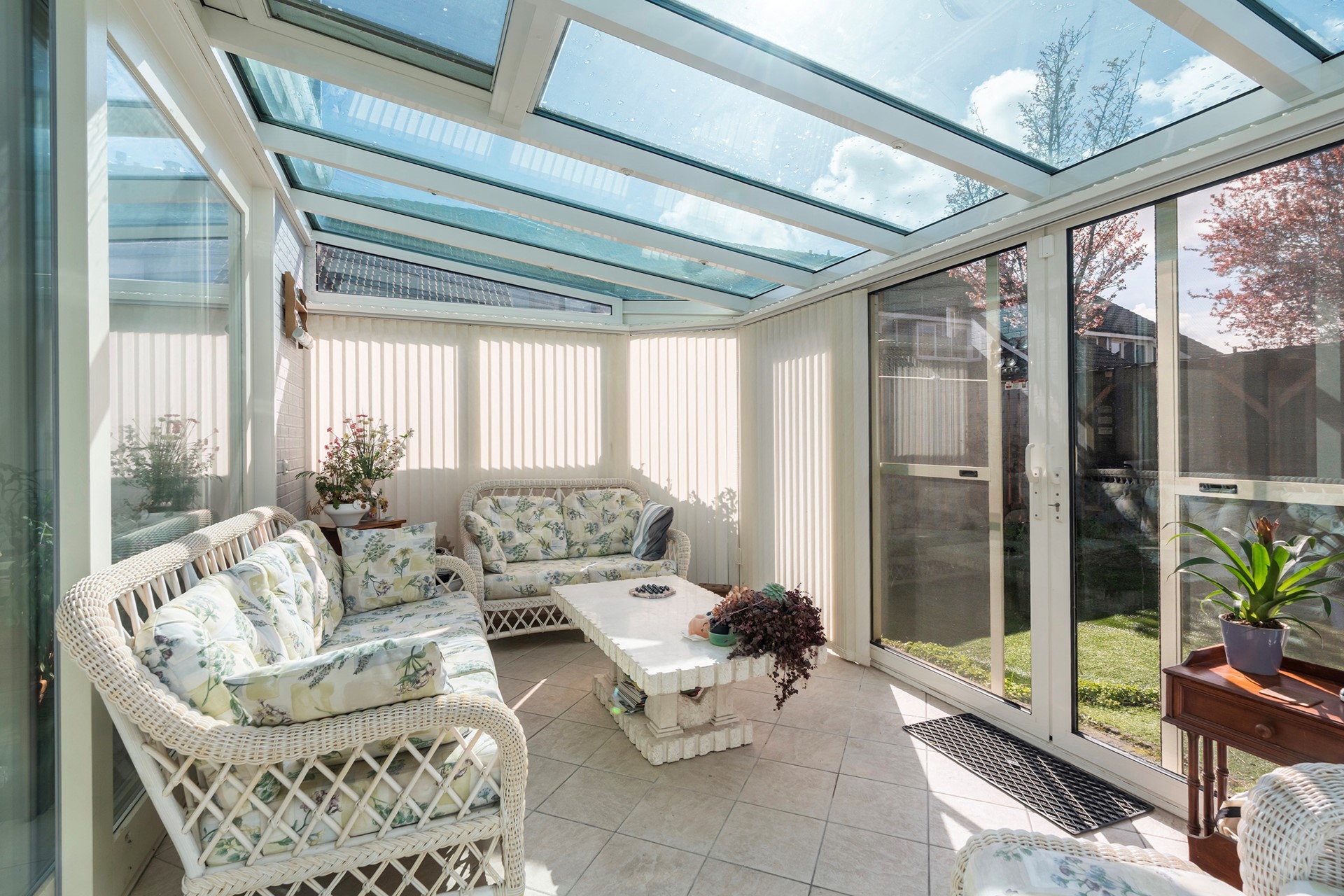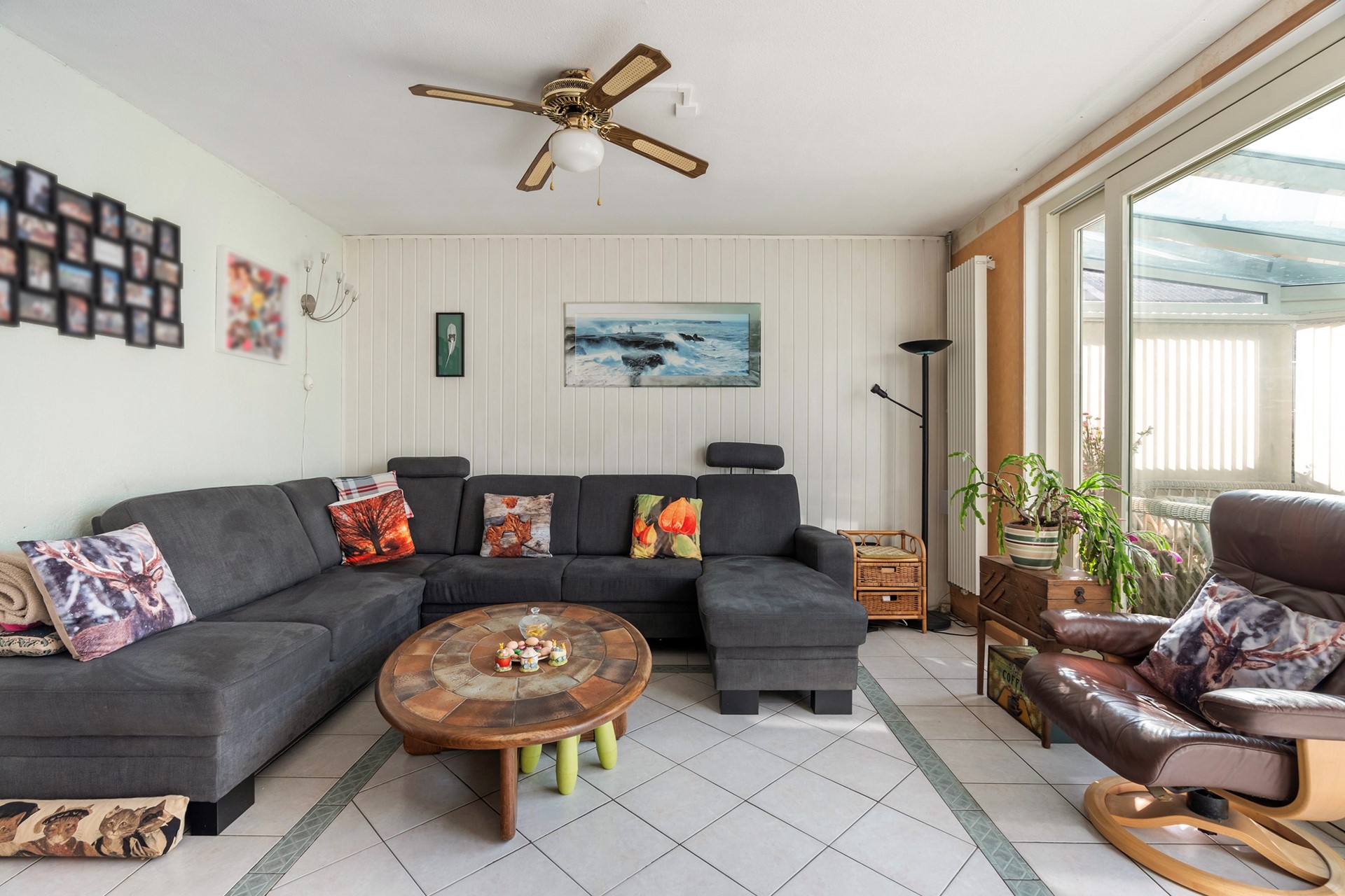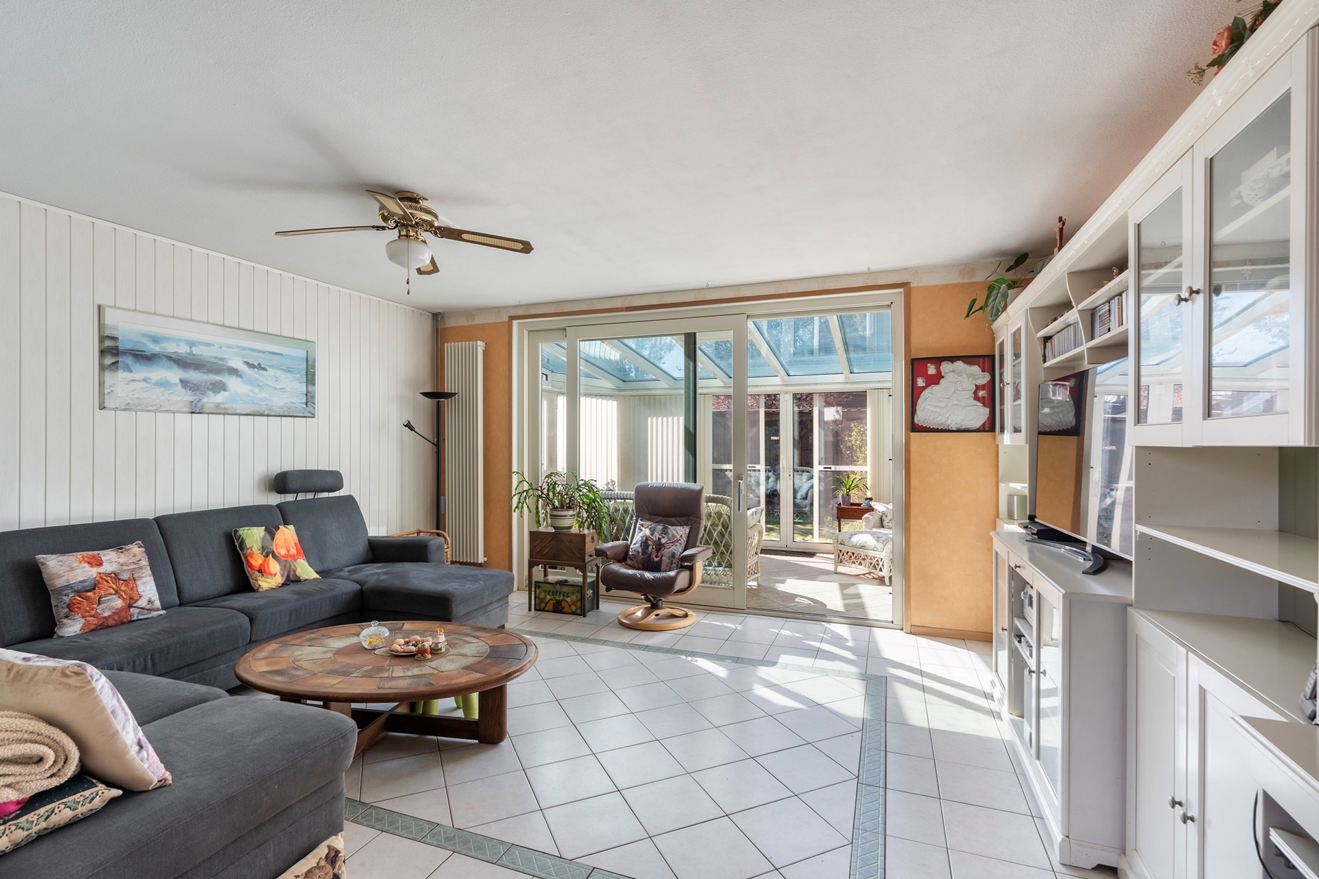 De tuingerichte woonkamer is ruim en beschikt over een grote voorraadkast. Het absolute hoogtepunt is echter de zonnige serre op het westen.