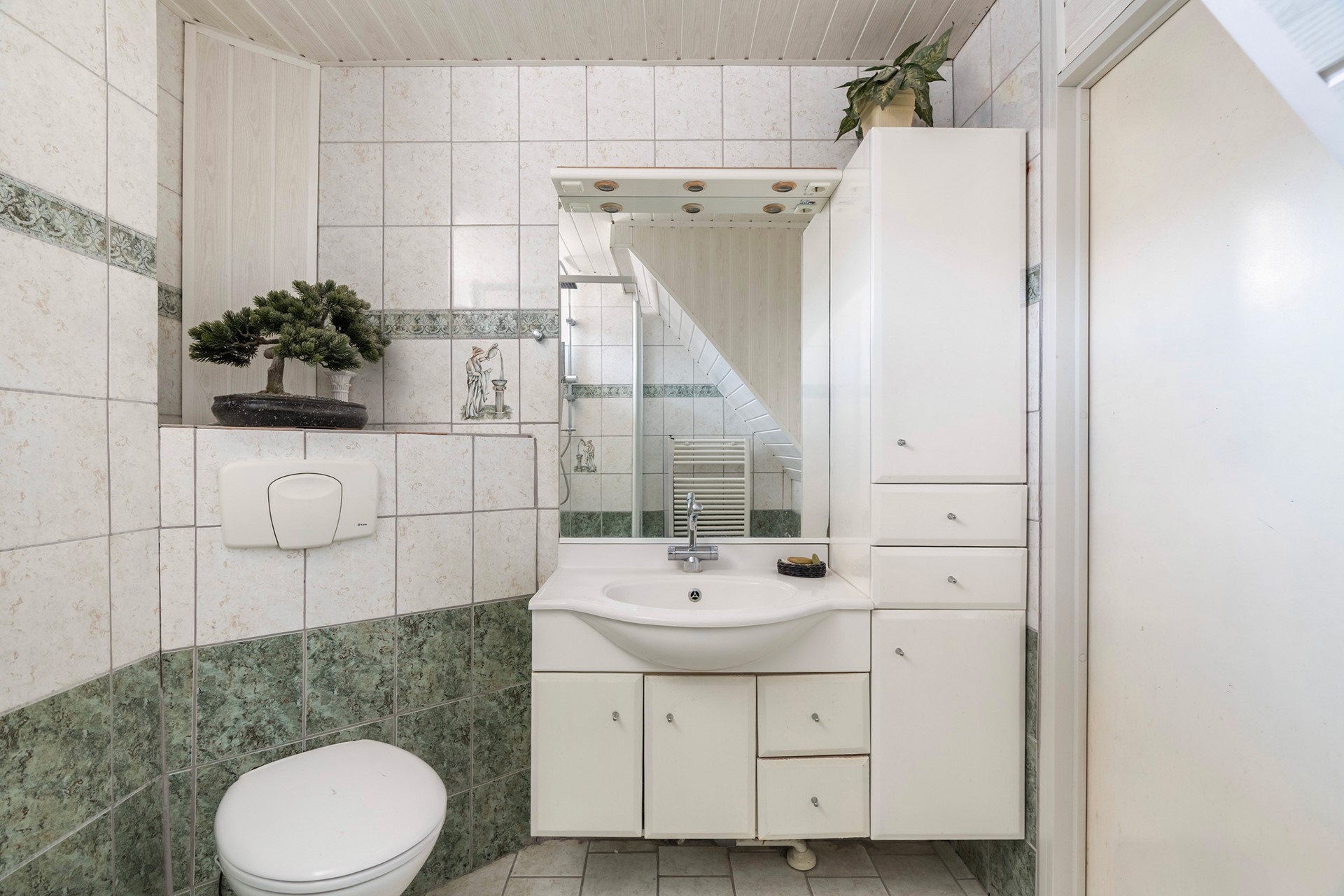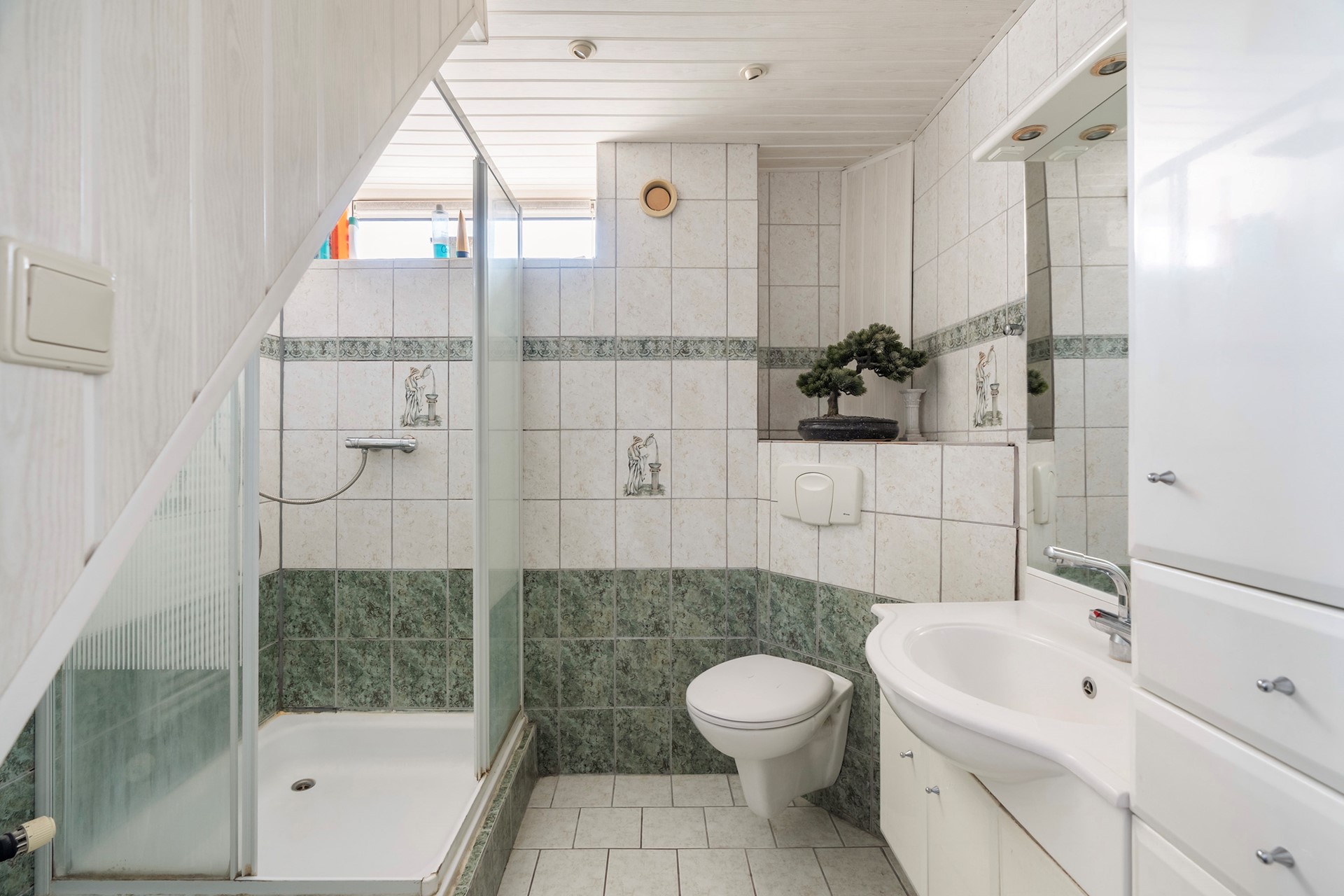 Ook de badkamer is, gezien zijn leeftijd, toe om deze naar eigen smaak te moderniseren.