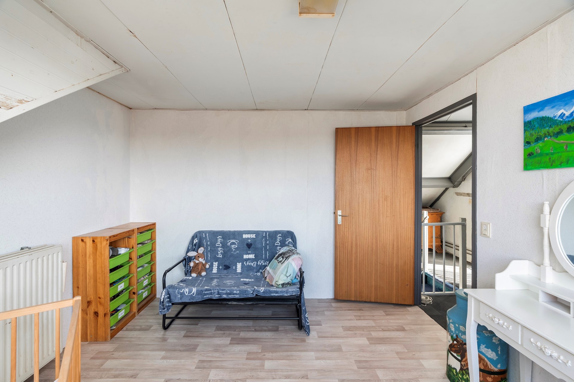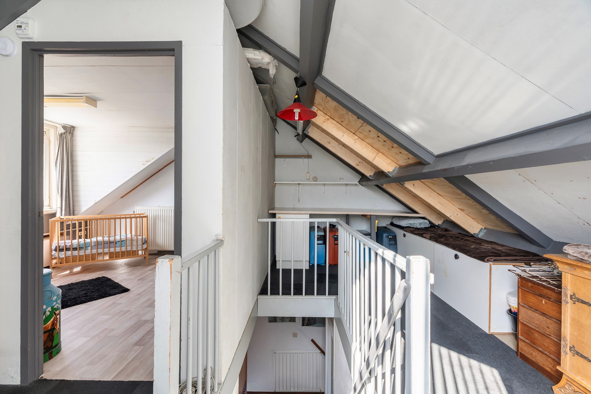 Verrassend veel extra'sDe vaste trap brengt je naar de tweede etage. Hier vind je een verrassend ruime vierde slaapkamer. Daarnaast is er een aparte was- en stookruimte aanwezig en is er aan bergruimte geen gebrek dankzij de slimme opbergmogelijkheden achter de knieschotten.