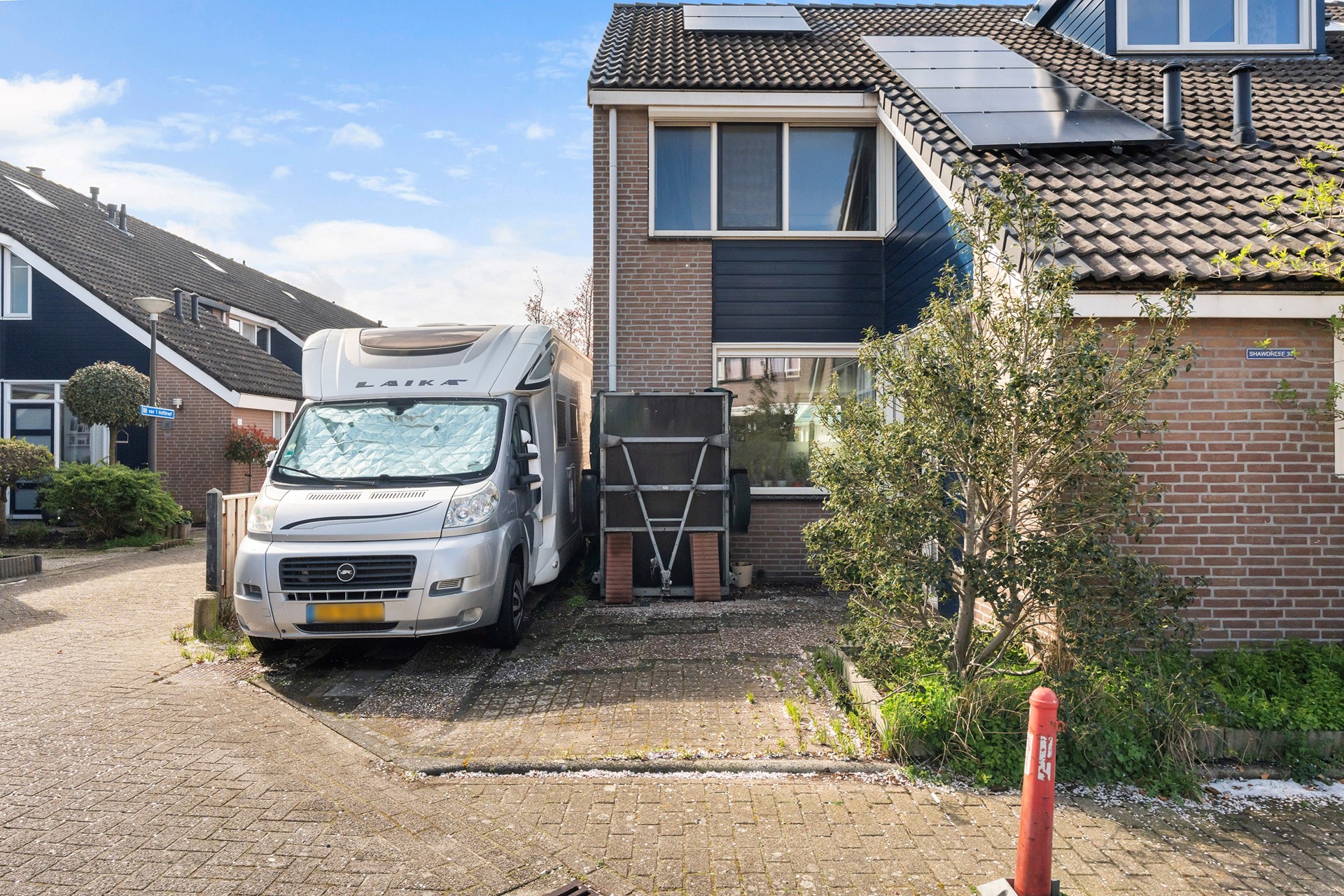 Wat deze woning echt uniek maakt, is de royale eigen strook grond direct naast het huis. Of je nu twee auto’s hebt, een grote werkbus rijdt of een plek zoekt voor de camper of caravan: hier parkeer je moeiteloos op eigen terrein. Geen gezoek naar een plekje, maar het gemak van alles direct bij de hand.
