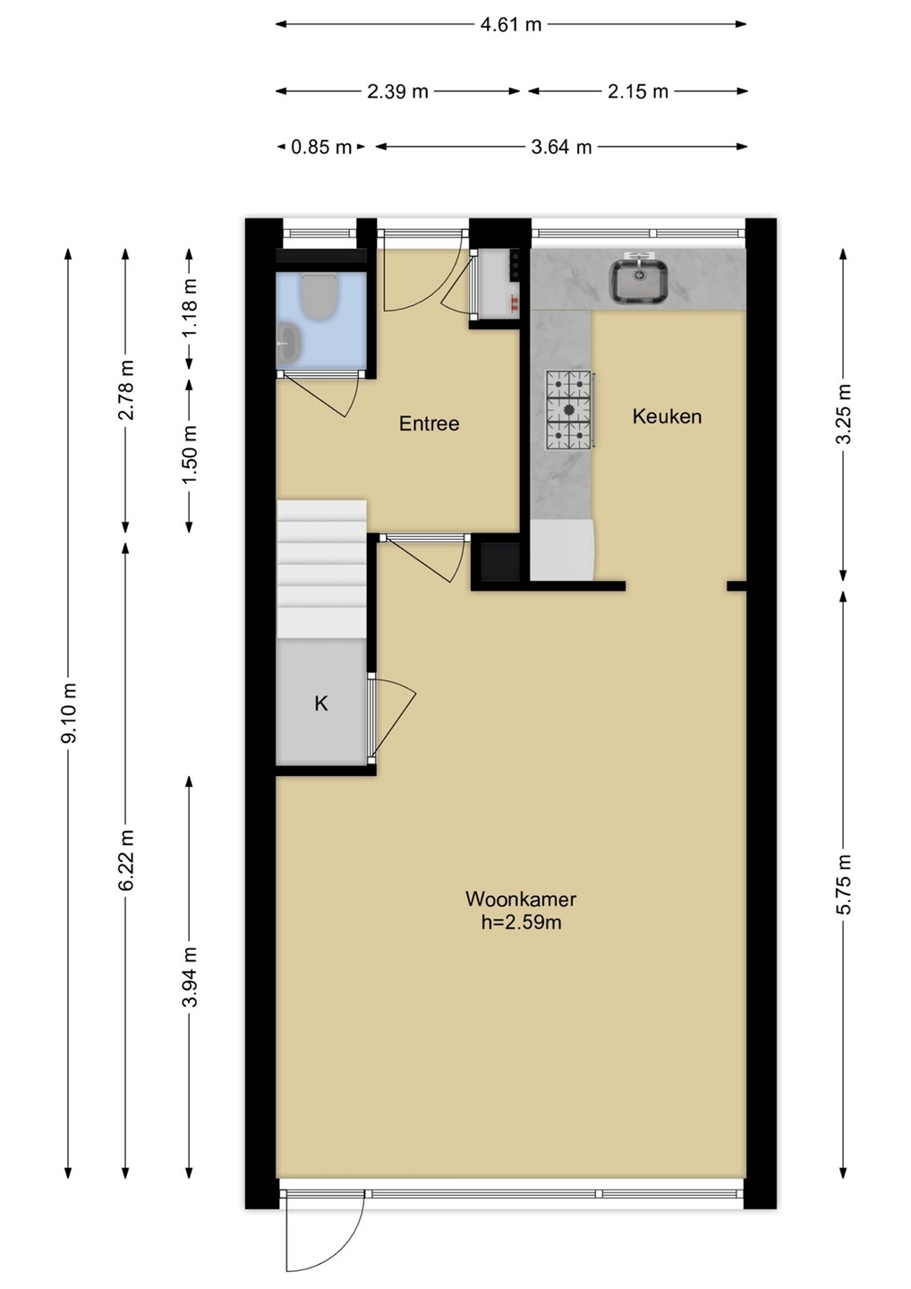 Grenzend aan de woonkamer bevindt zich de keuken, die in een modern jasje is gestoken en van alle gemakken is voorzien. Wat direct opvalt: het strakke granieten werkblad en de witte soft-close kastjes, die niet alleen functioneel, maar ook stijlvol ogen. Koken wordt hier bijna een hobby dankzij het complete apparatuurpakket: een koelkast met vriesvak, oven, 4-pits gaskookplaat, afzuigkap en een vaatwasser die het werk uit handen neemt. Zo blijft er genoeg tijd over voor echt gezellige momenten aan tafel!