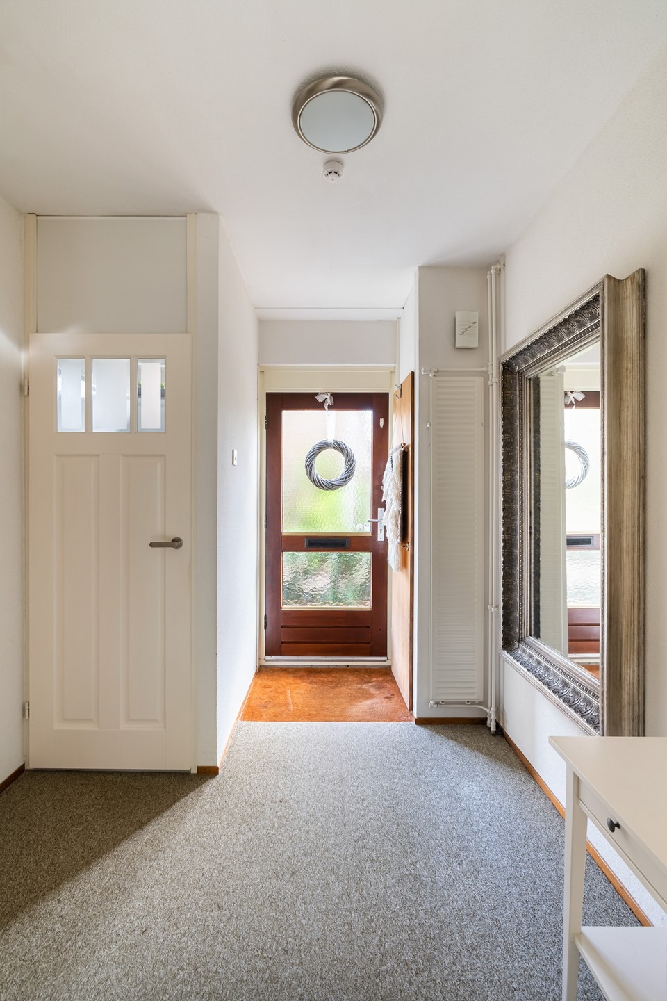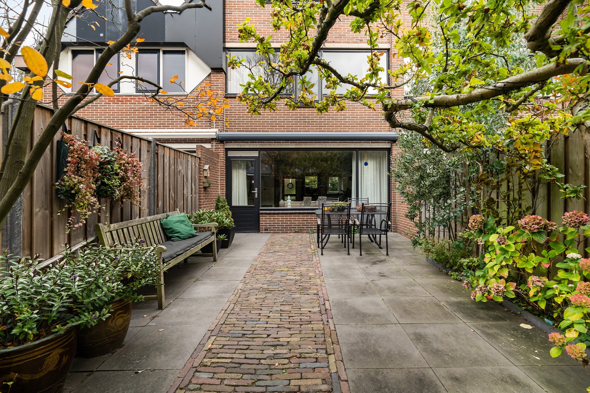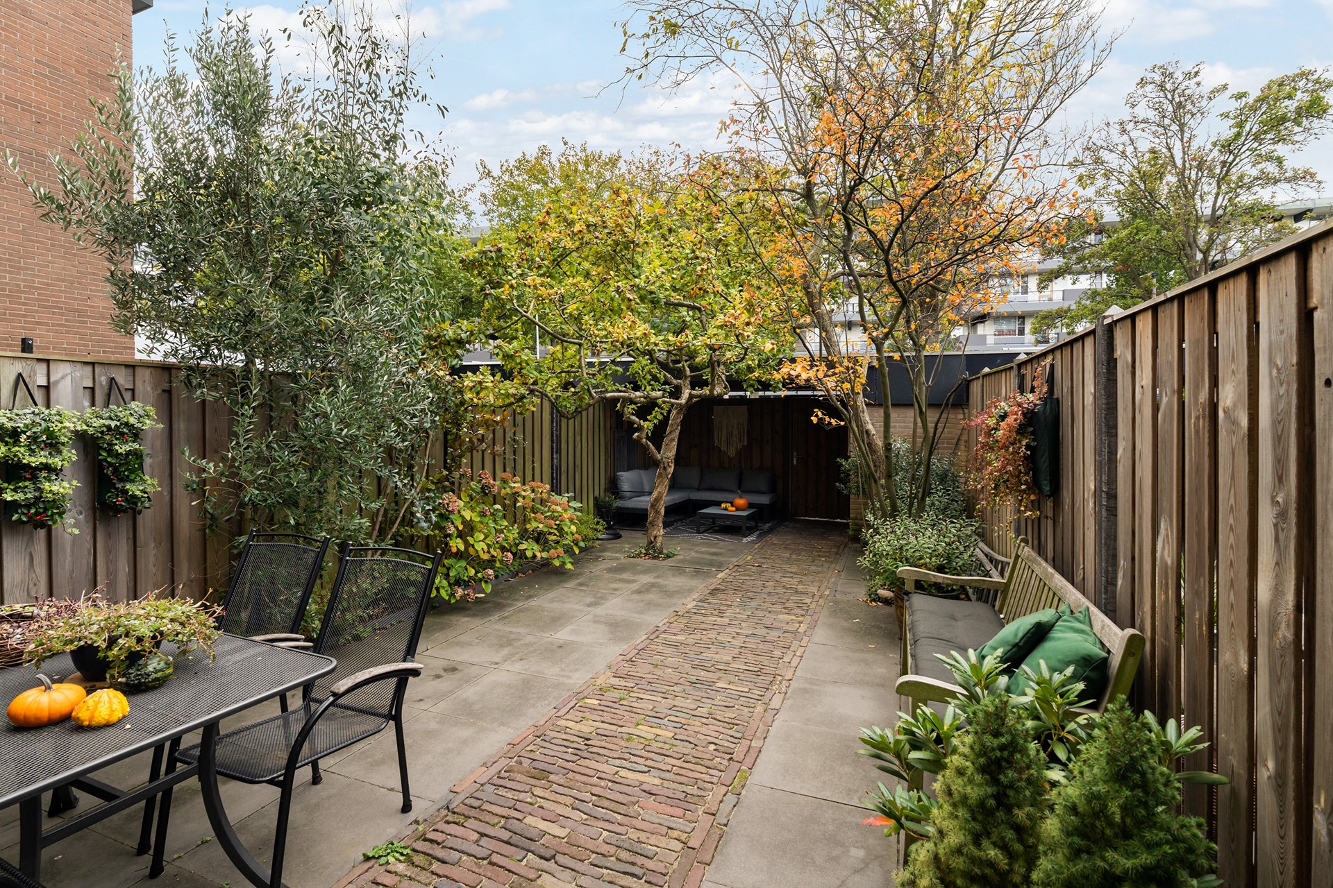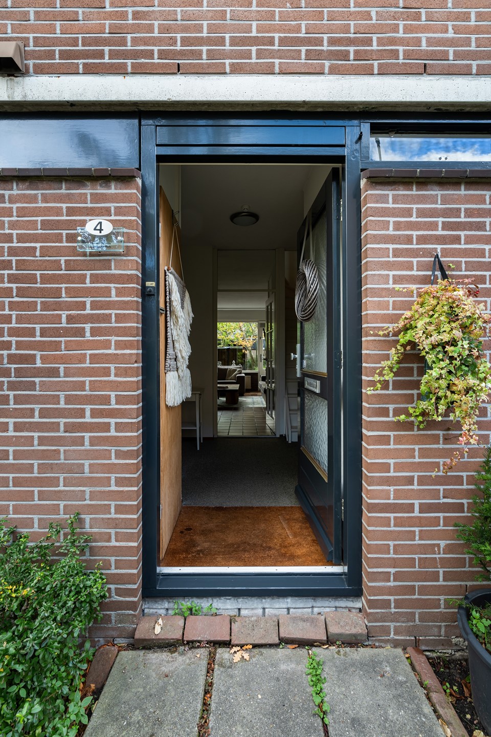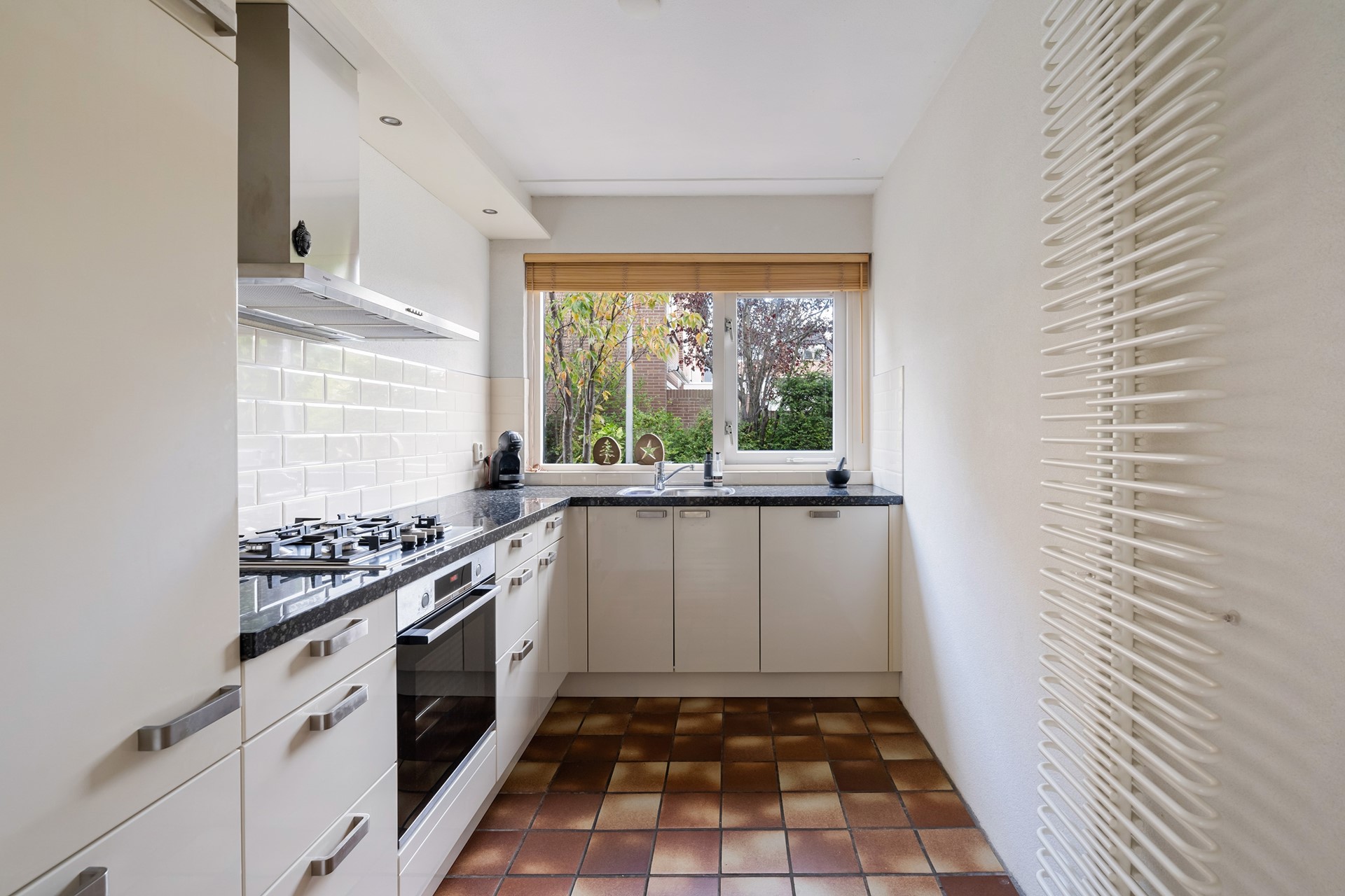 Zodra je de voordeur opent, valt het daglicht je al tegemoet in de ruime hal. Hier zit alles slim ingedeeld: aan de ene kant vind je praktische zaken als de meterkast en het moderne toilet, aan de andere kant leidt de trap naar boven, en uiteraard is er toegang tot de woonkamer. Die woonkamer is écht het kloppende hart van het huis. Bijzonder detail: de authentieke vloertegeltjes herinneren nog aan het bouwjaar, maar verder is het strak en eigentijds. Dankzij de grote raampartijen – met dubbel glas! – valt het zonnetje royaal naar binnen en zorgt voor een prettige sfeer. De zithoek aan de tuinzijde nodigt uit om te ontspannen met uitzicht op het groen. Ook in de zomer zit je hier goed, want het nieuwe zonnescherm houdt de warmte buiten en het leven binnen lekker koel.