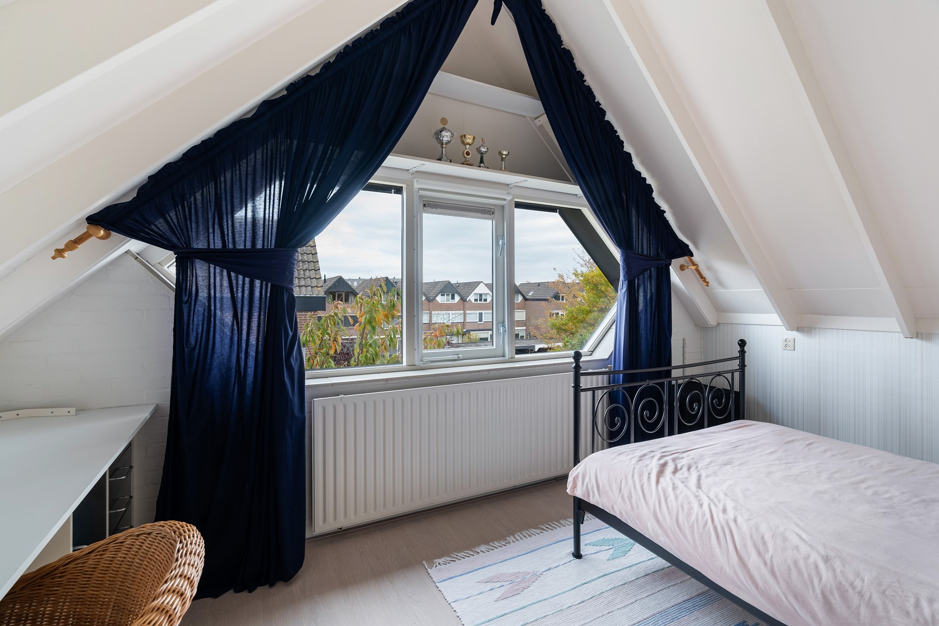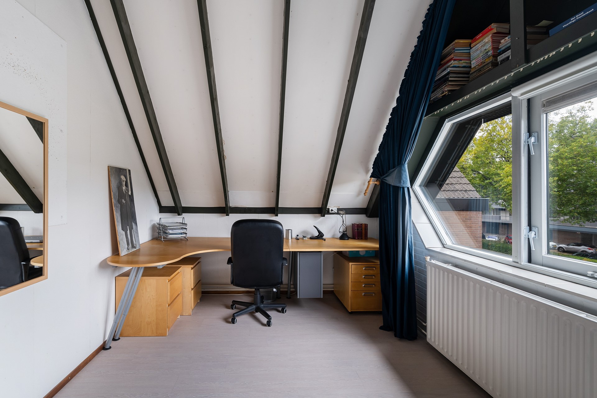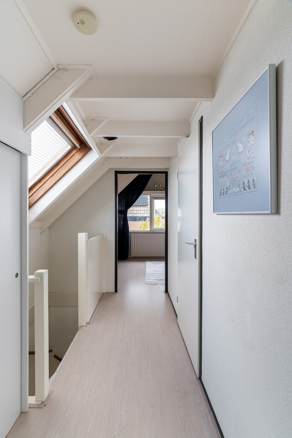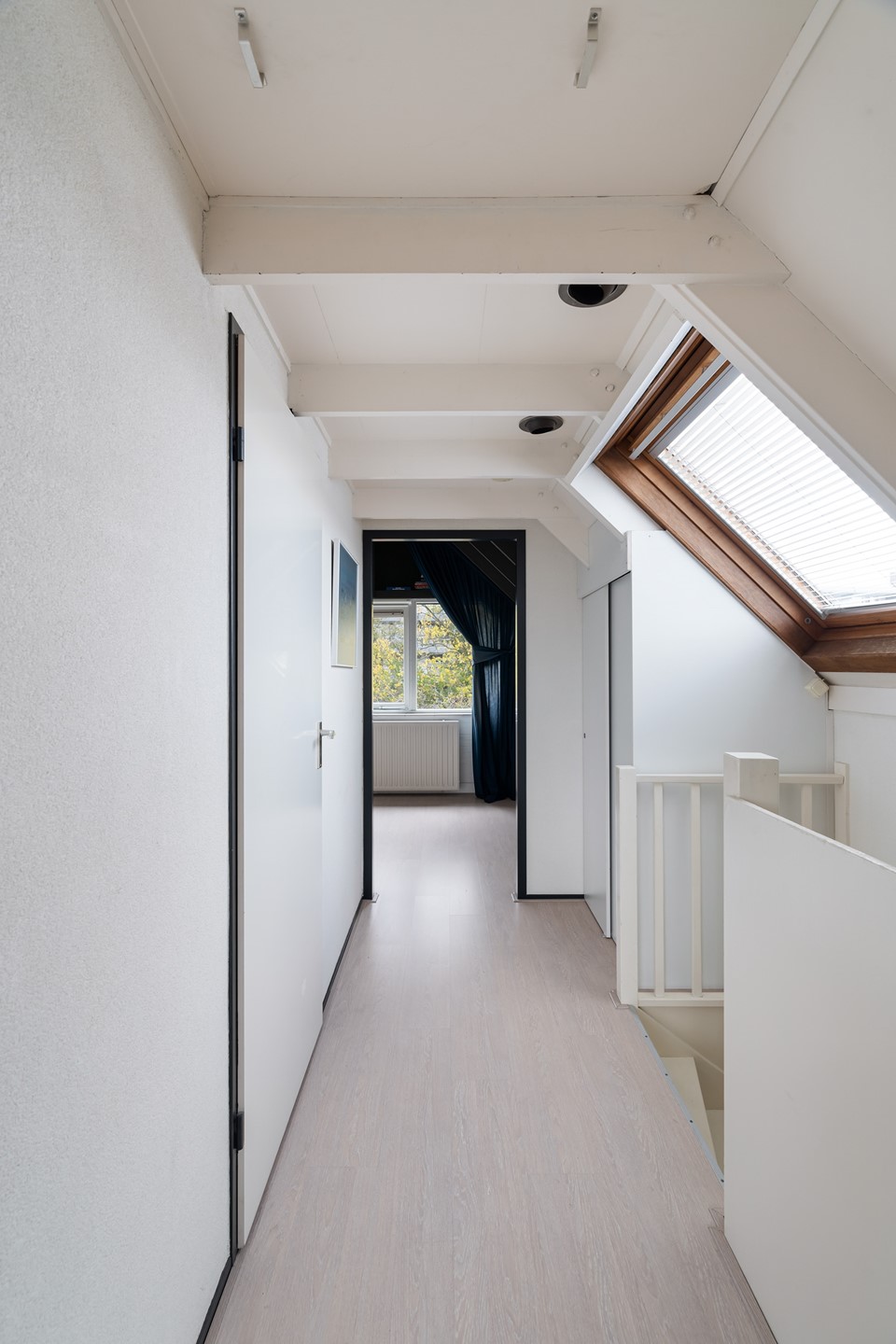 De tweede verdieping blijft verrassen! Zeker met het daglicht wat naar binnen schijnt door het grote dakraam. Met nog eens twee grote slaapkamers is het huis uitermate geschikt voor grotere gezinnen of thuiswerkers. Dankzij het nieuwe dubbel glas (2023) zit je ook hier comfortabel. En kijk eens naar boven? De hoogte tot aan het plafond met de prachtige balken maakt dit plaatje compleet.