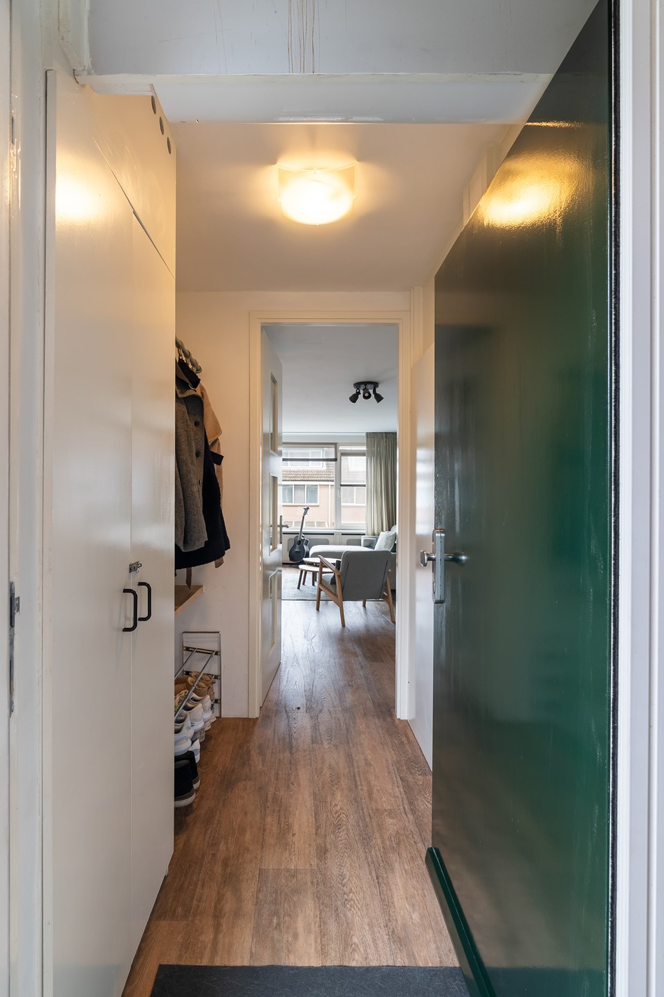 Dit exclusieve appartement is een ware maisonnette, verdeeld over twee verdiepingen, die je bereikt via een prachtig vormgegeven houten trap. De gehele woonlaag bevindt zich op de eerste etage en zodra je bovenkomt, ervaar je direct de intimiteit en geborgenheid die deze privé-etage kenmerkt.