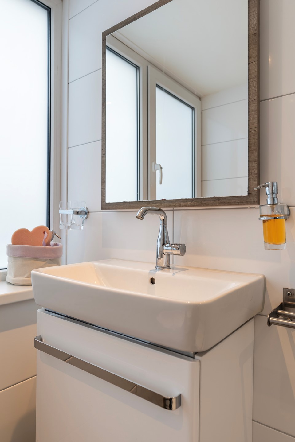Vanuit je slaapkamer stap je direct je eigen luxe badkamer in, waar het natuurlijke daglicht je elke ochtend tegemoet komt.