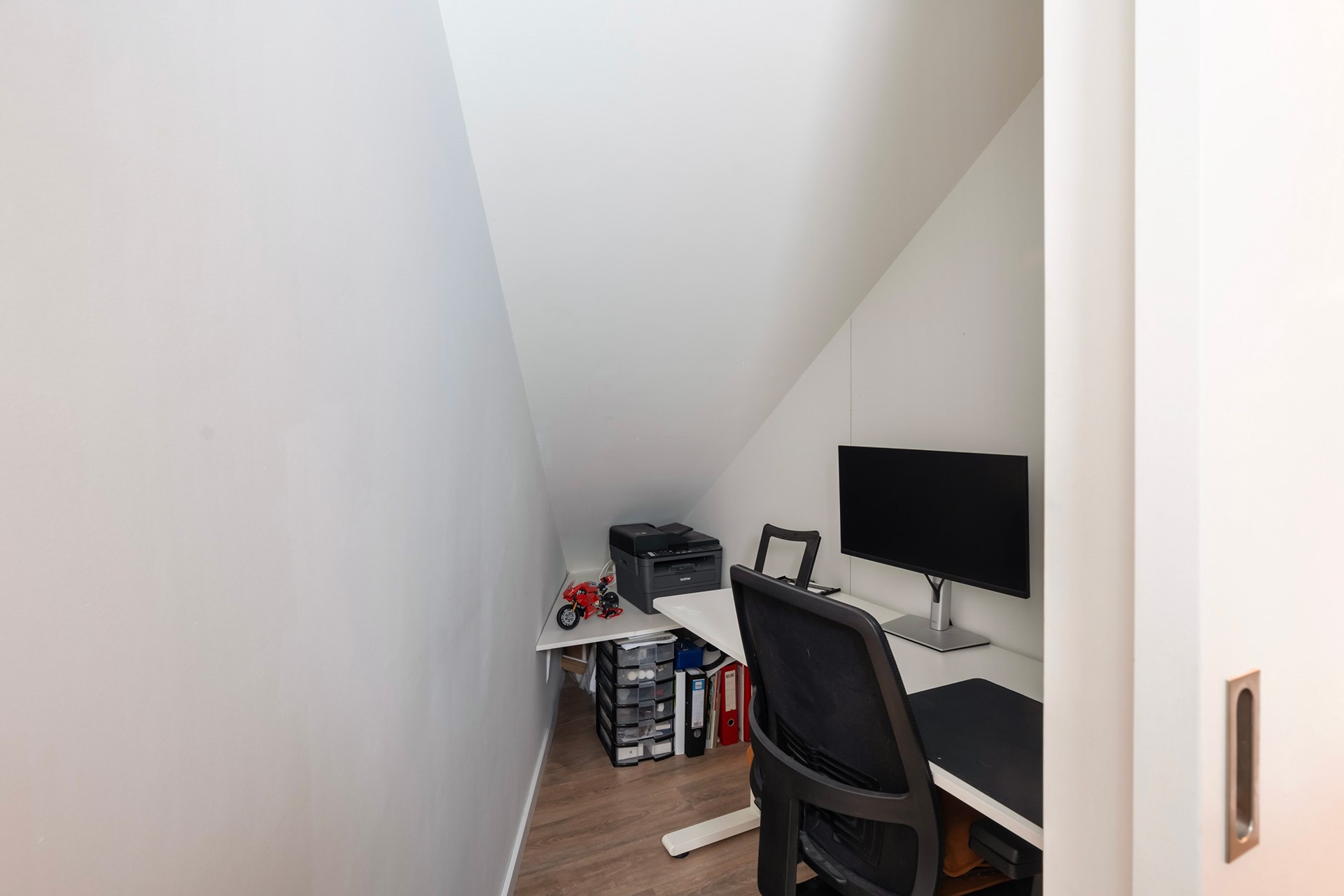 De aangrenzende kamer is nu een ideale werkplek, maar kan ook perfect dienen als inloopkast