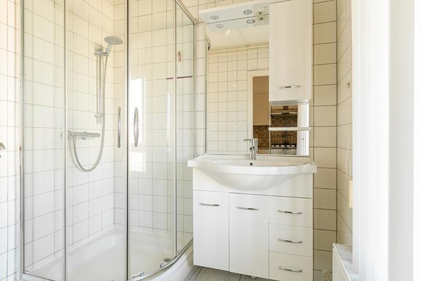 De badkamer is netjes en voorzien van een douche, wastafel, aansluiting voor de wasmachine en mechanische ventilatie. Beide slaapkamers (14 m² en 10 m²) zijn eveneens afgewerkt met laminaatvloeren en genieten van veel natuurlijk licht.