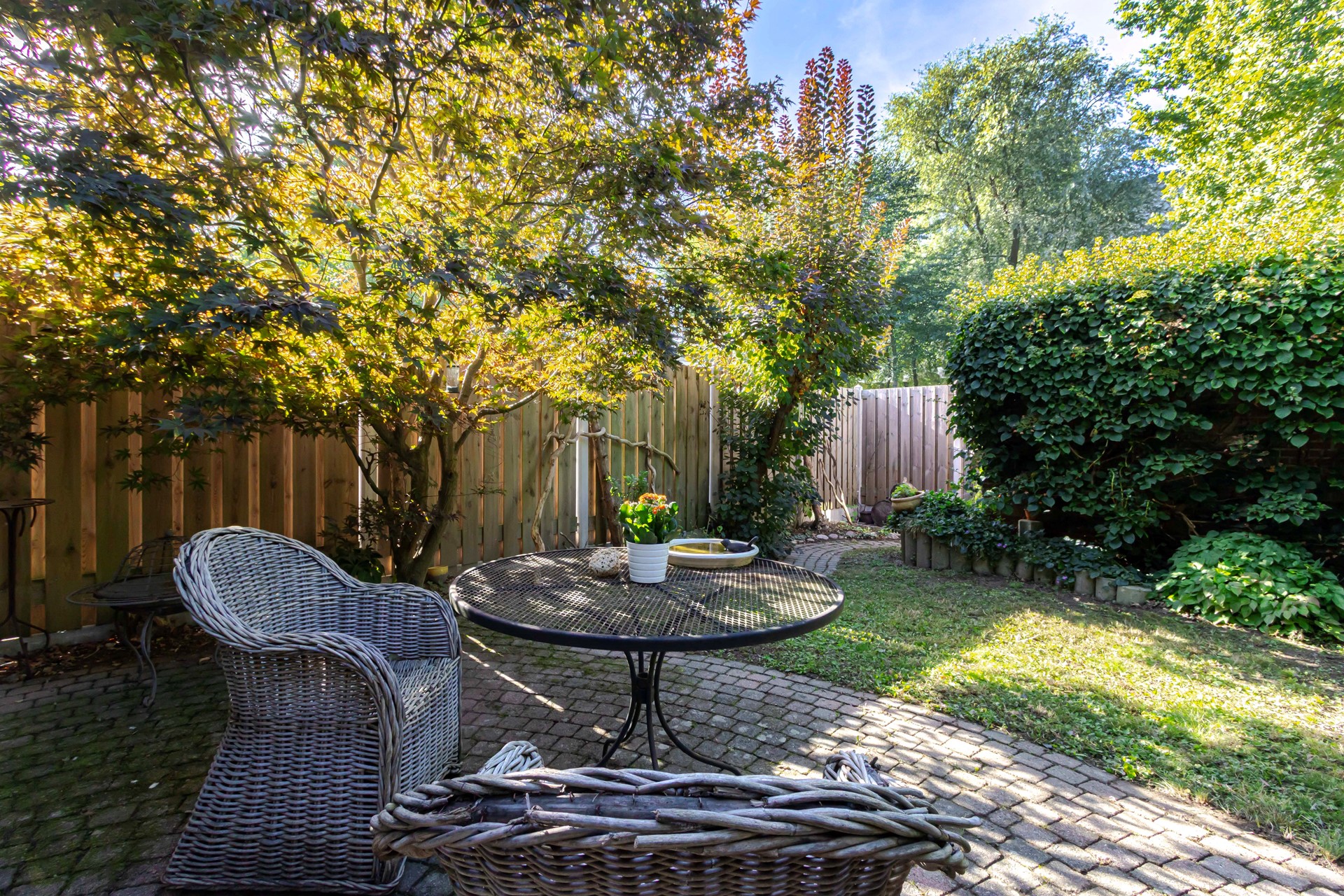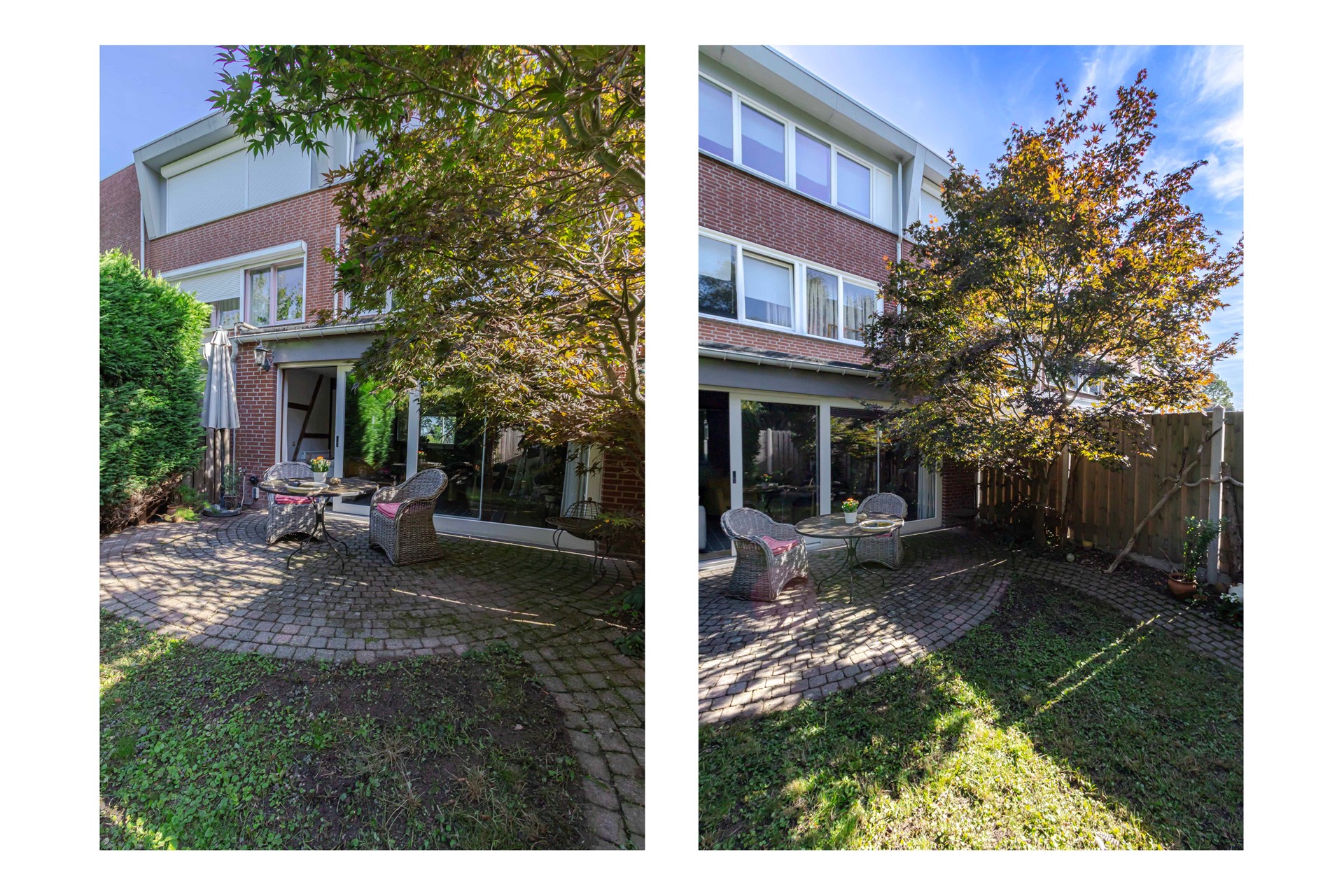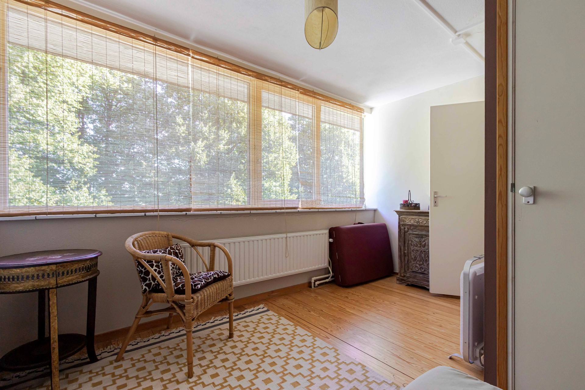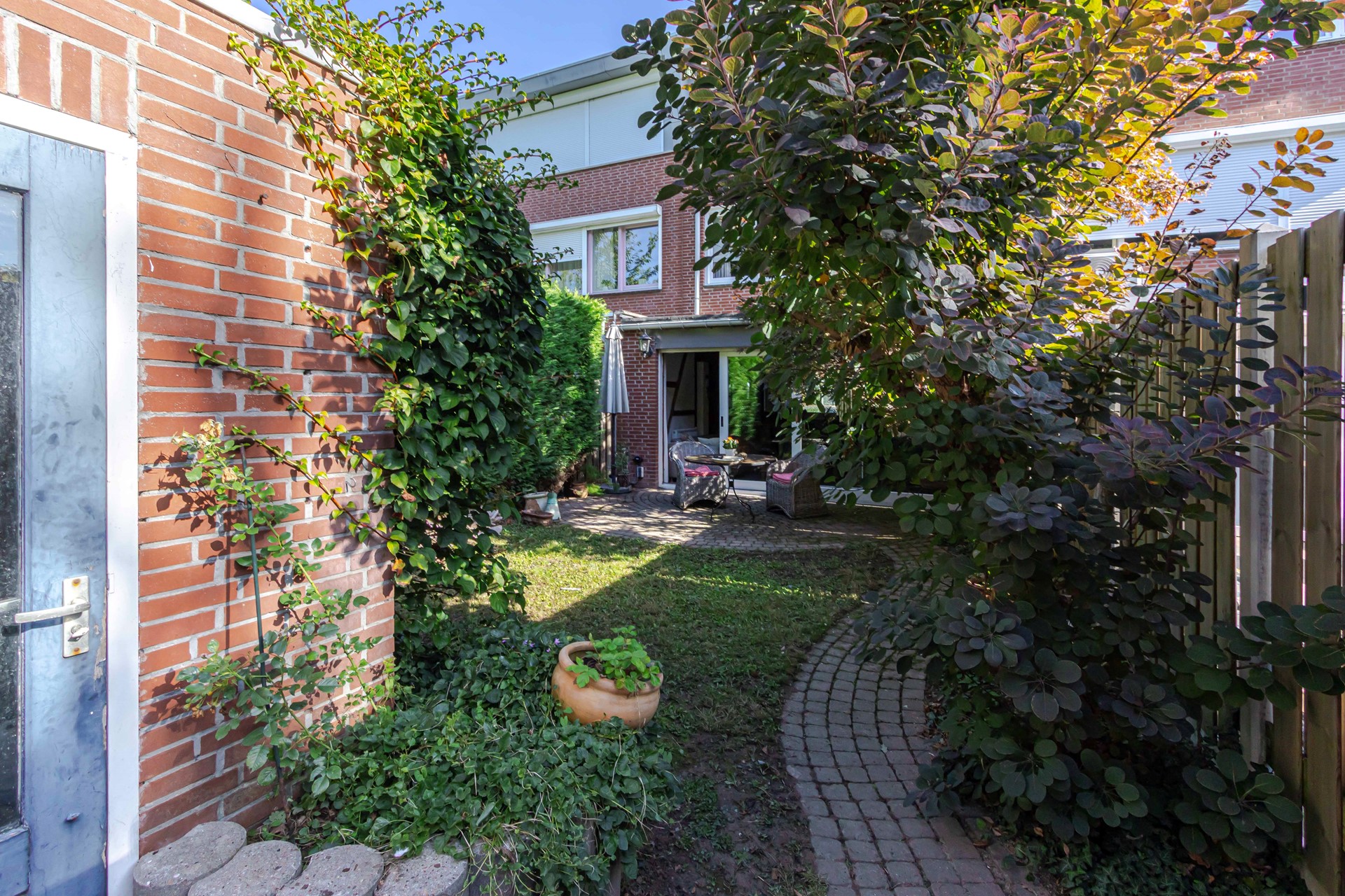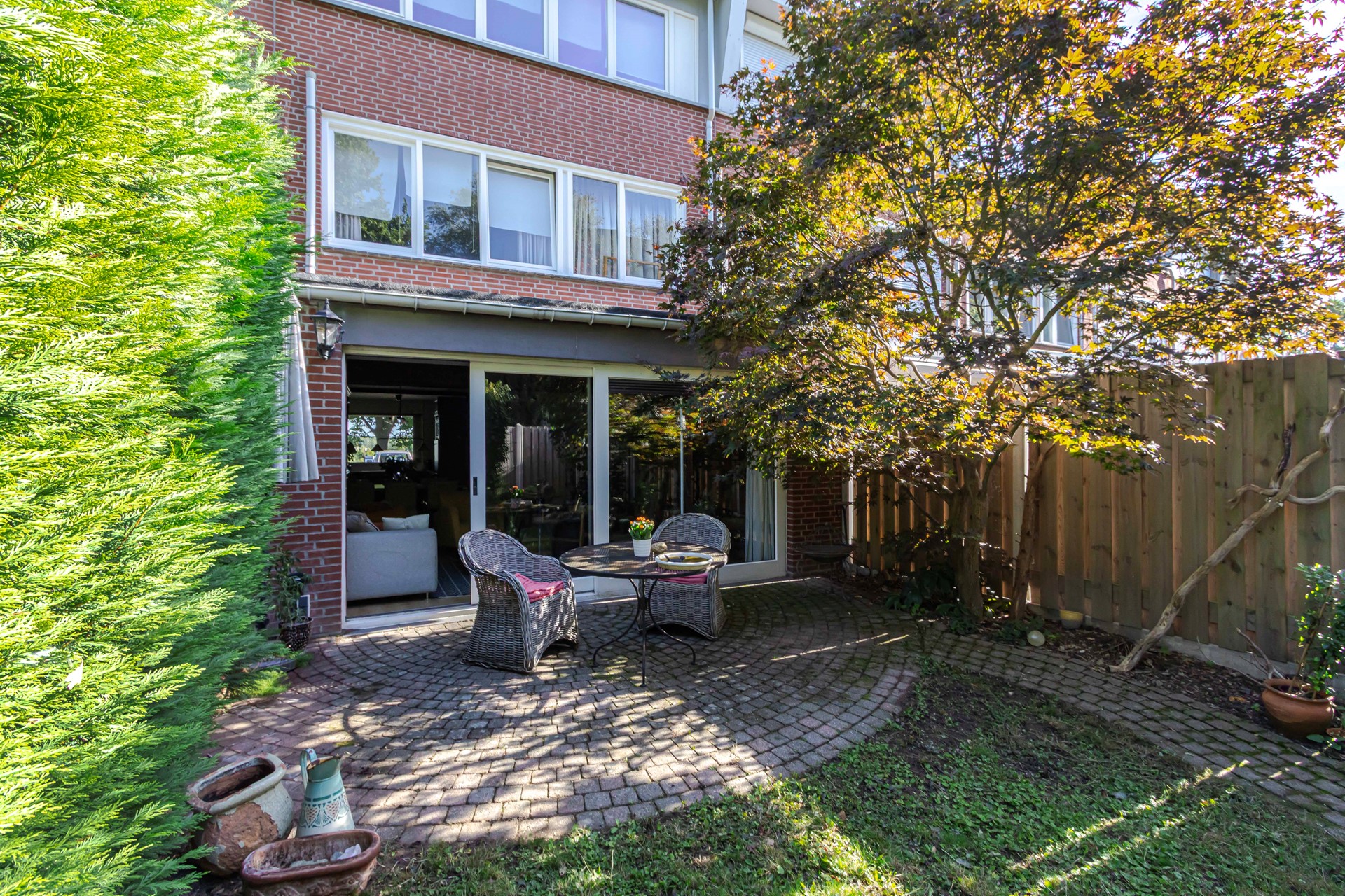 De woonkamer met aanbouw over de gehele breedte en met unieke details, geeft toegang tot de achtertuin gelegen op zuid-west, met een handige tuinberging en een achteringang.
