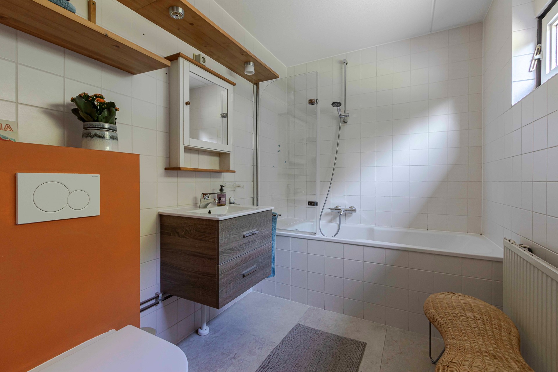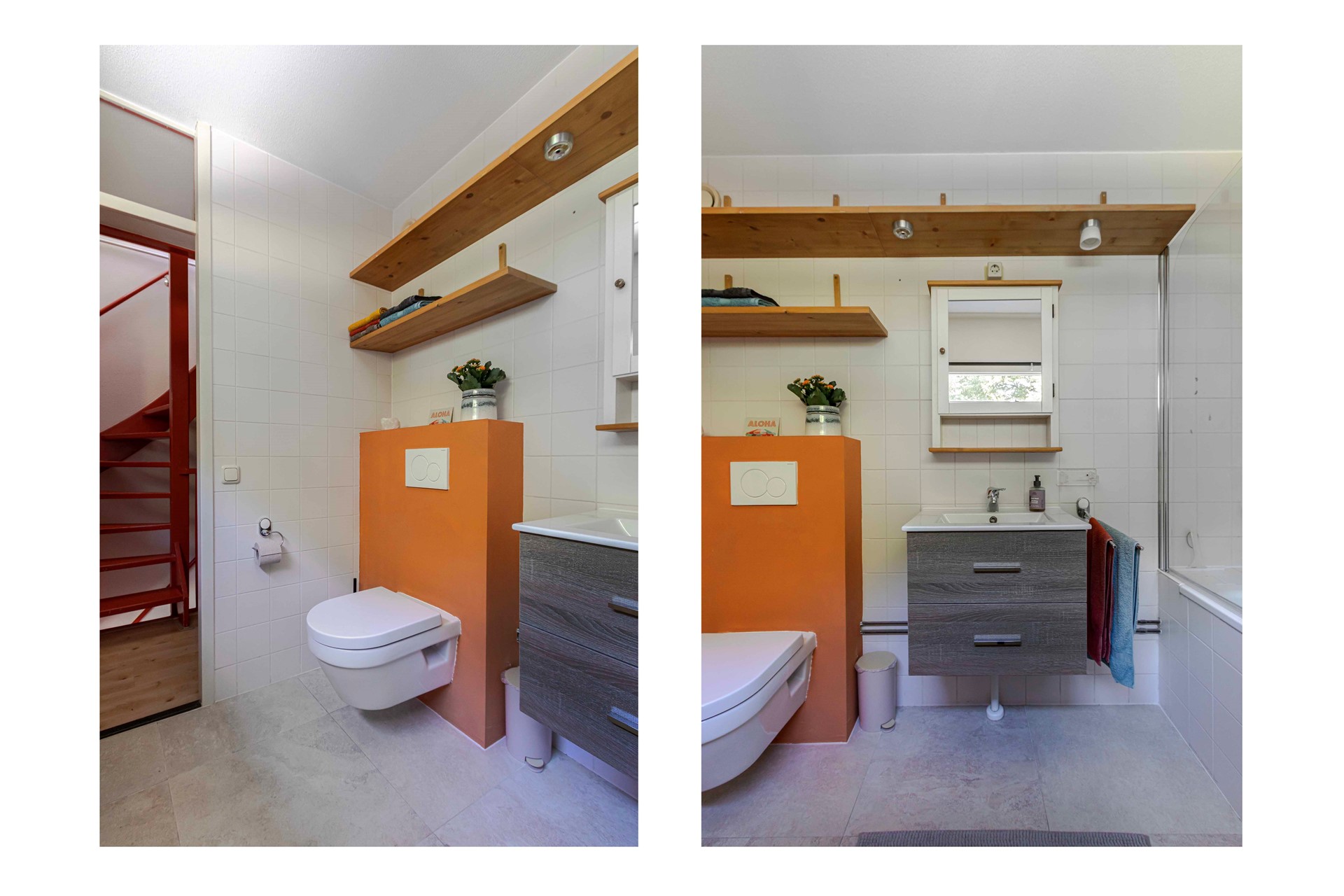 Hier bevinden zich twee slaapkamers met een badkamer. De badkamer is voorzien van een ligbad met douchewand, wastafelmeubel en een tweede toilet.