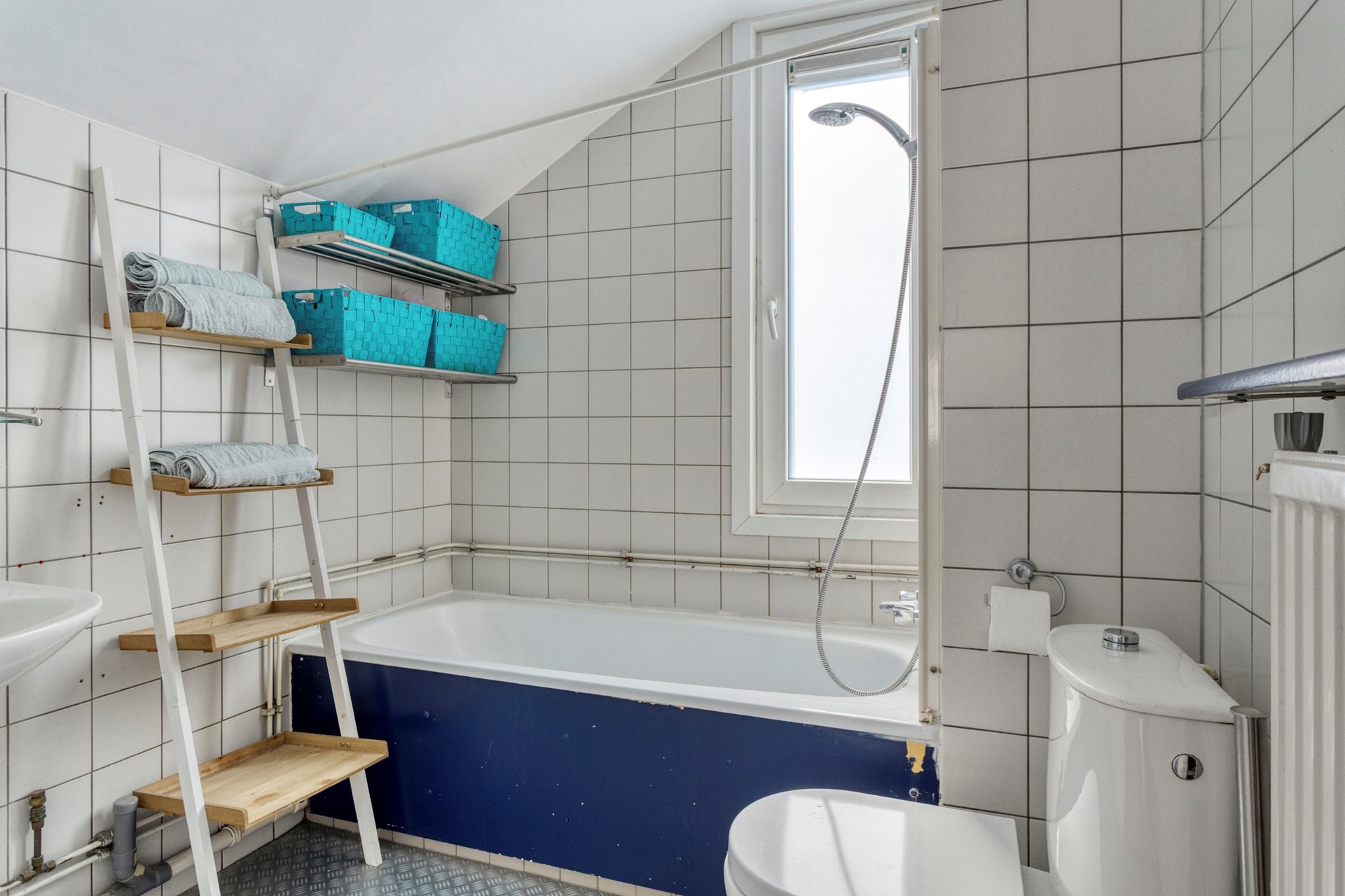 De badkamer kan een upgrade gebruiken, dus zie het vooral als een blank canvas voor je eigen stijl. Liever een inloopdouche, designbad of toffe wastafelmeubel? Hier kun je helemaal los gaan. Ook is er op deze verdieping een praktisch luik naar de zolder.
