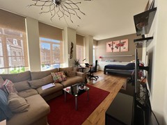De woon- slaapkamer heeft een prachtig uitzicht op de Rechtstraat en Hoogbrugstraat.