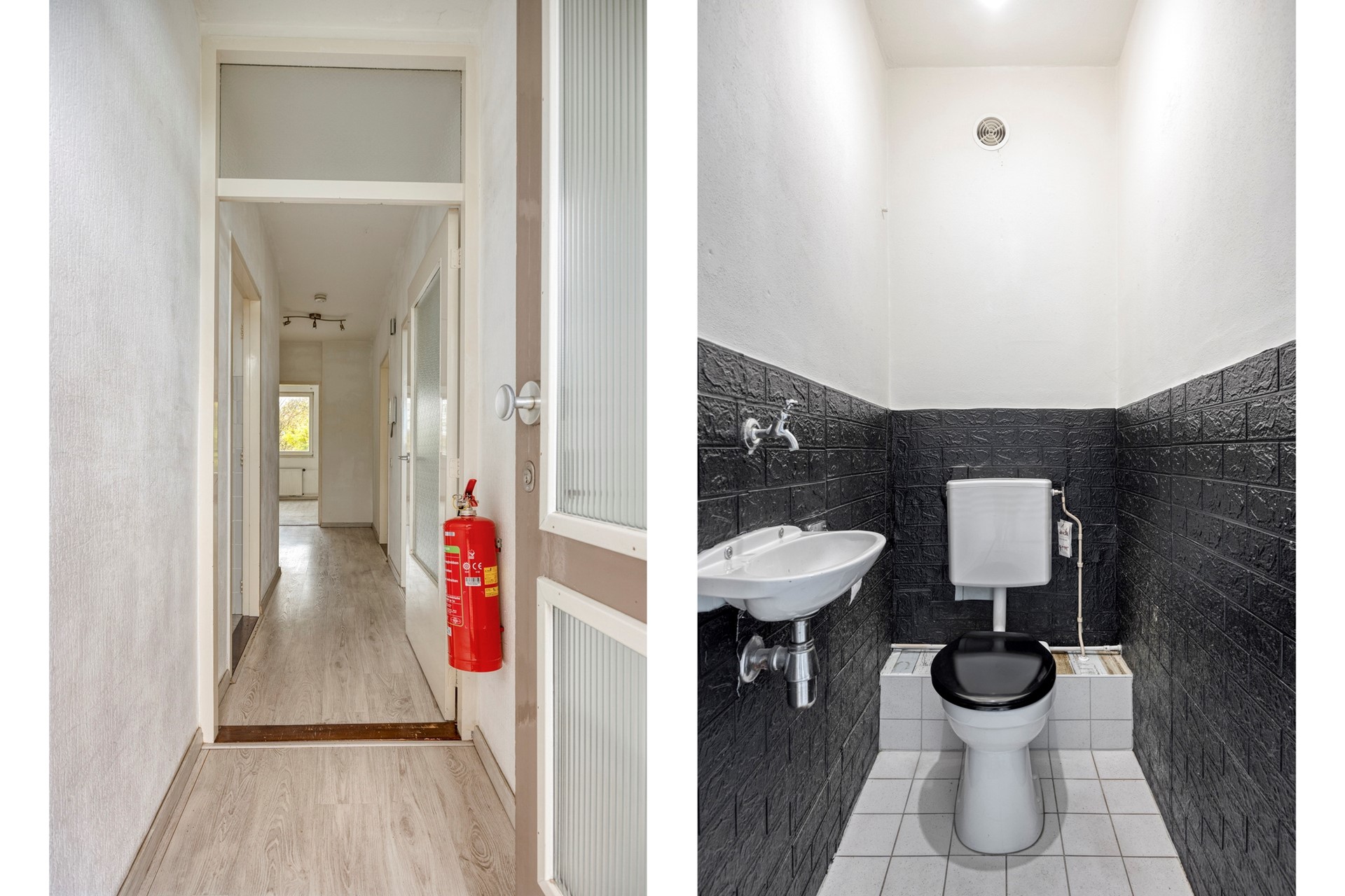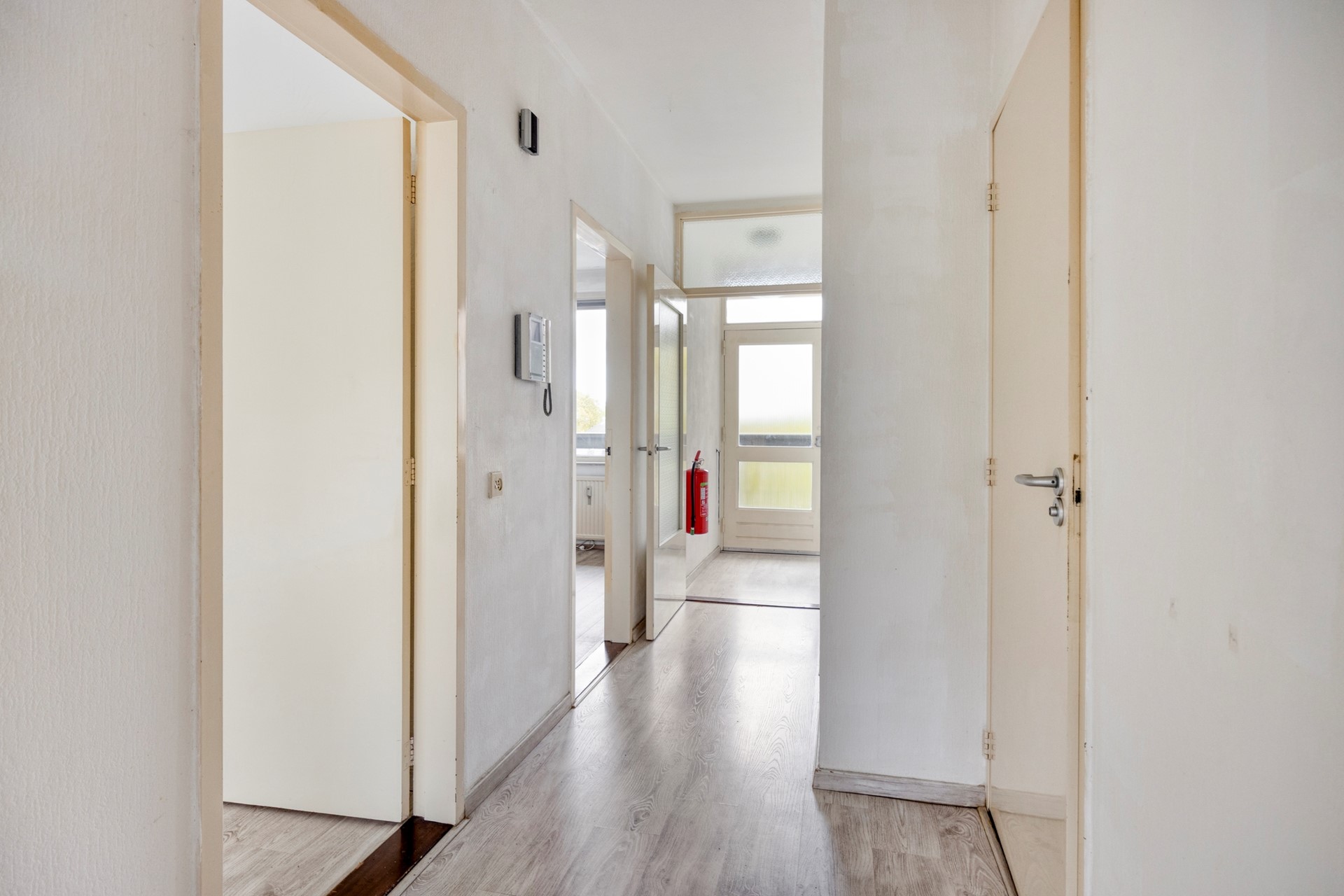 De centrale toegangsdeur is vanuit het appartement met een intercom te openen.