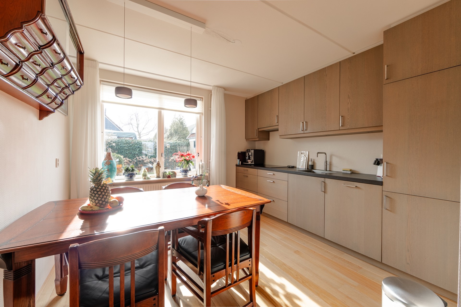 Via de hal met toilet en een deur naar de bijkeuken kom je in de woonkamer met een houten vloer en een prachtig uitzicht op het doorgaand vaarwater. De woonkeuken is vernieuwd in 2022 en prachtig uitgevoerd door een meubelmaker. De bijkeuken heeft een wasmachineaansluiting en een cv-installatie uit 2022.