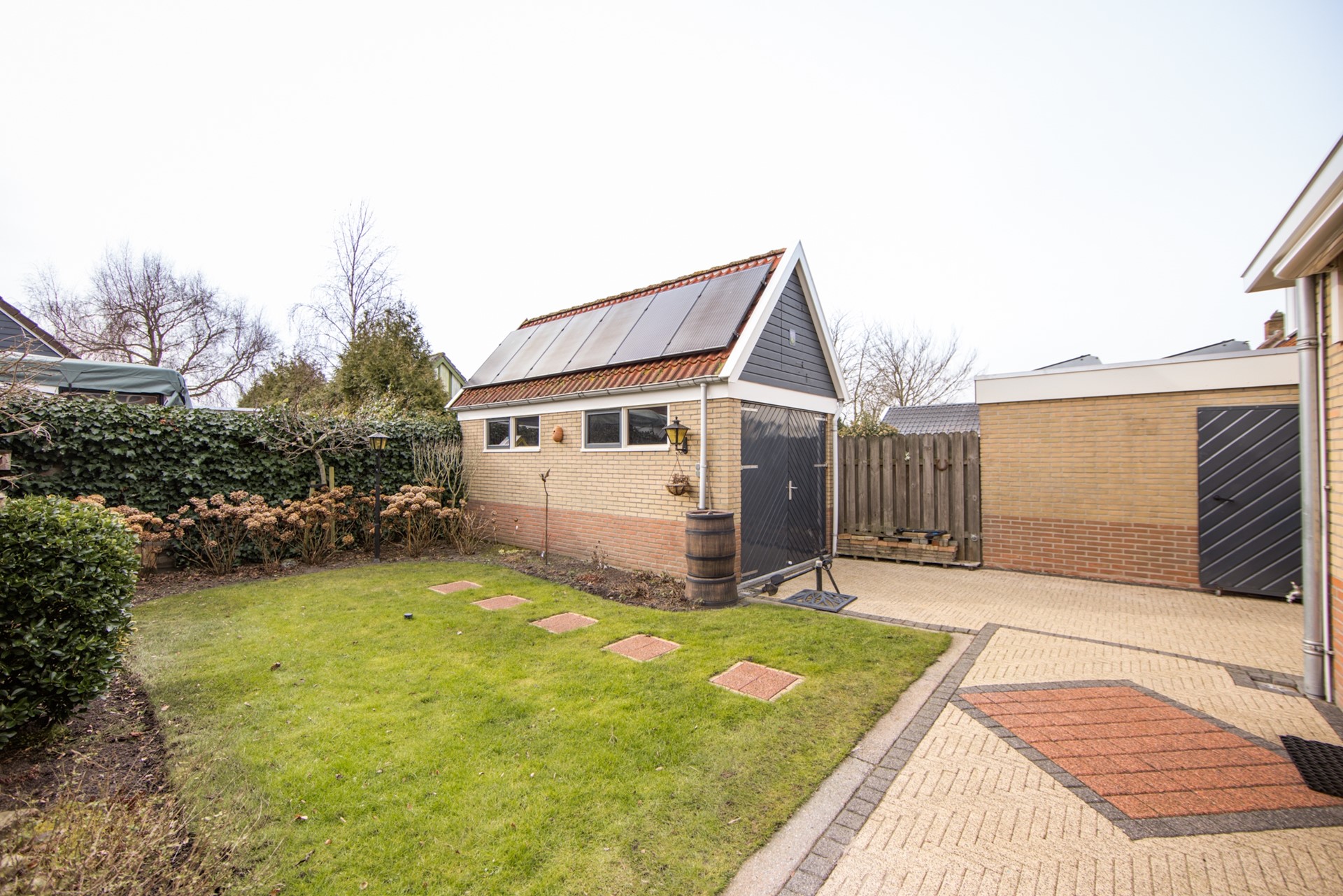 De ruime achtertuin heeft een vrije ligging en ligt lekker besloten op het zuiden, dus je kunt de hele dag van de zon genieten.