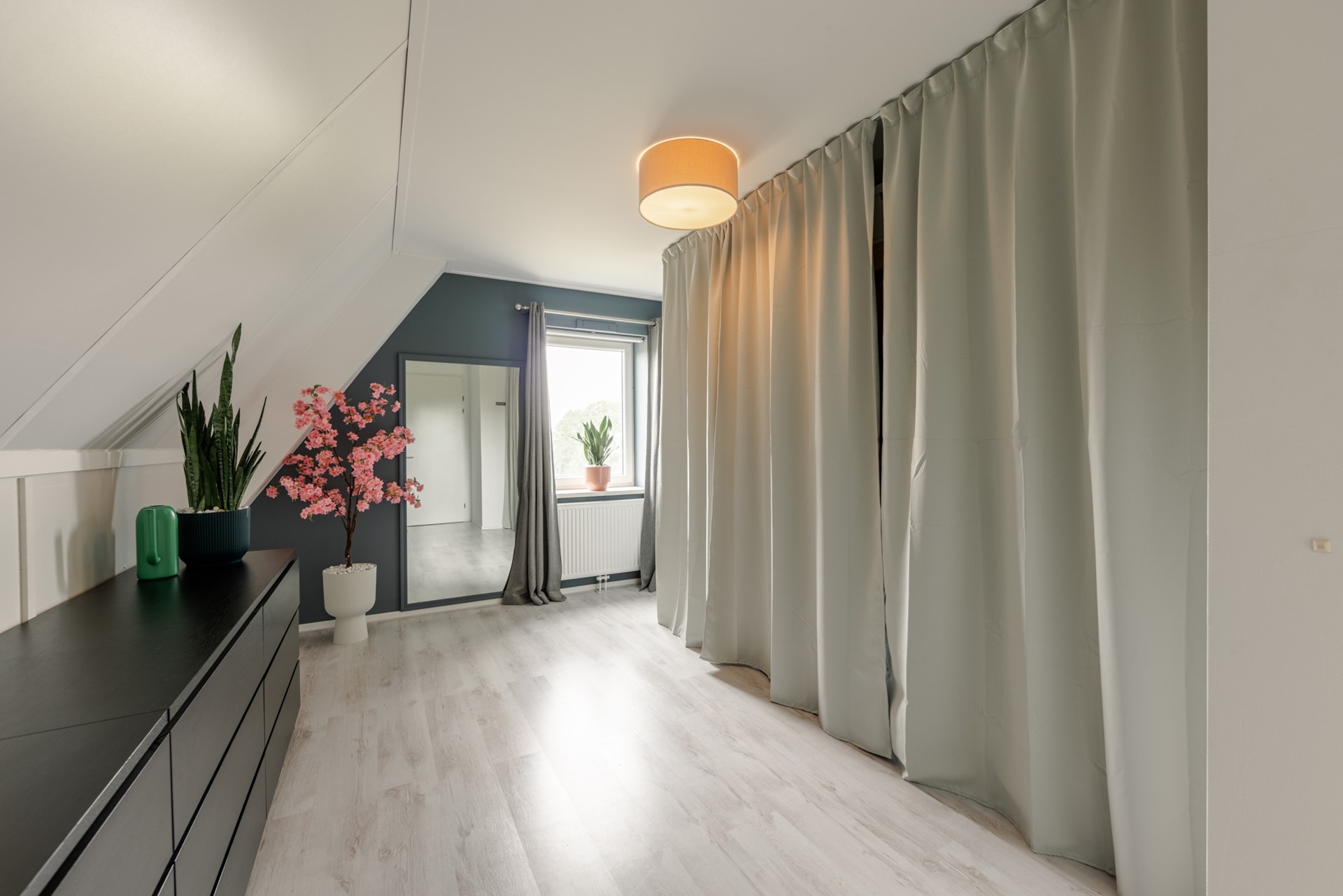 Via een vaste trap bereik je de tweede verdieping, met nog eens twee slaapkamers, de cv-installatie en een warmte-terugwin-systeem.