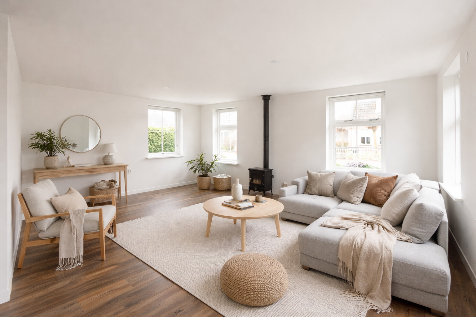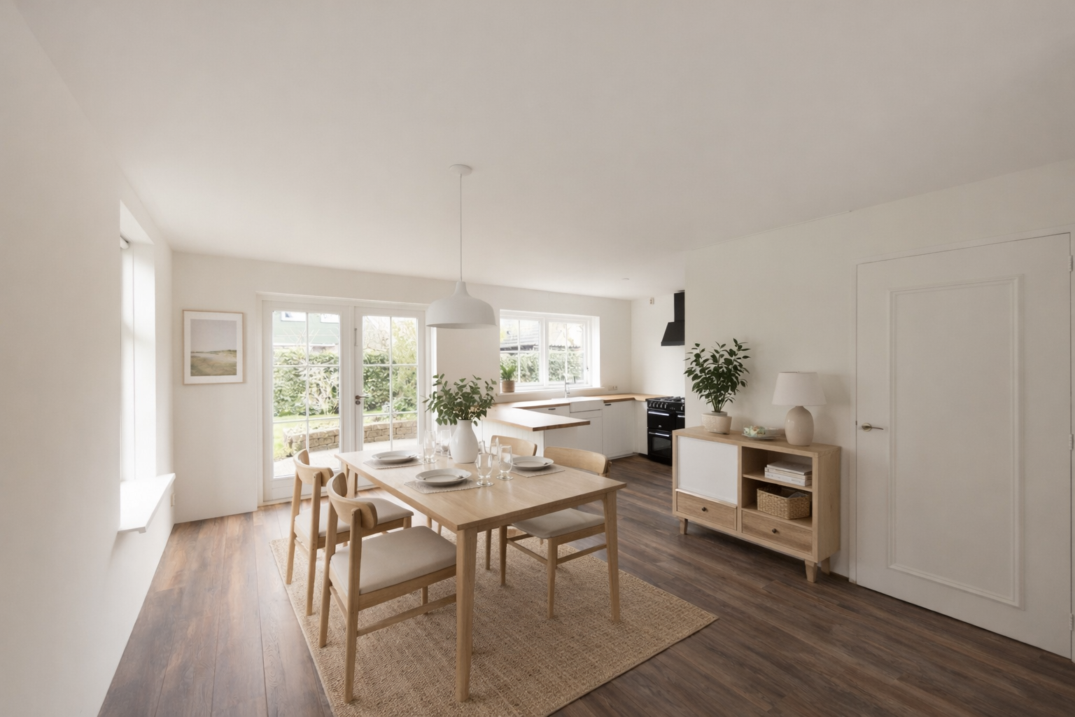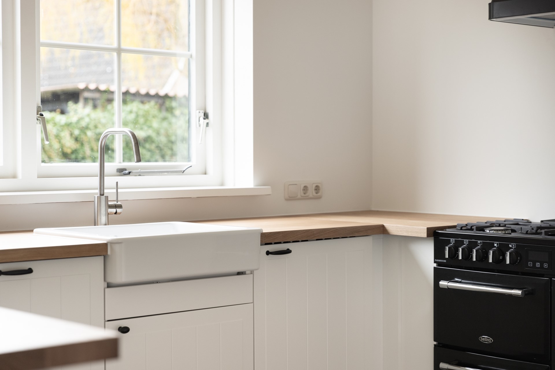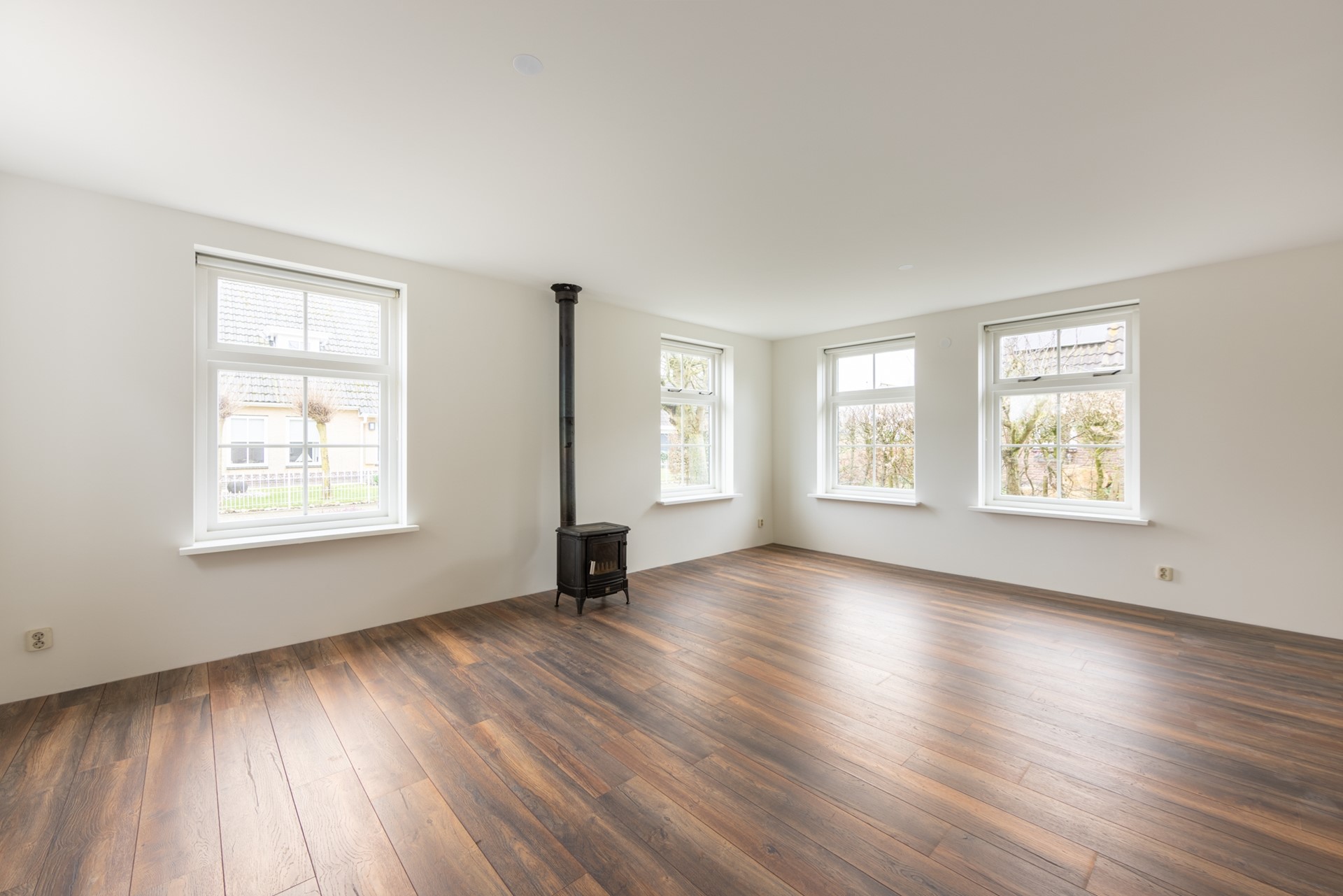De L-vormige woonkamer heeft een mooie nieuwe laminaatvloer, geschikt voor de vloerverwarming die eronder zit. Er is een houtkachel en er zijn openslaande deuren naar de tuin. De gloednieuwe halfopen keuken heeft een vaatwasser en een farmhouse-fornuis. Er is een bijkeuken met de wasmachineaansluiting en ook een deur naar de tuin. De fraai aangelegde tuin met een vrijstaande houten schuur en een achterom is 10 meter diep en maar liefst 17 meter breed. Dus altijd wel een plekje in de zon.