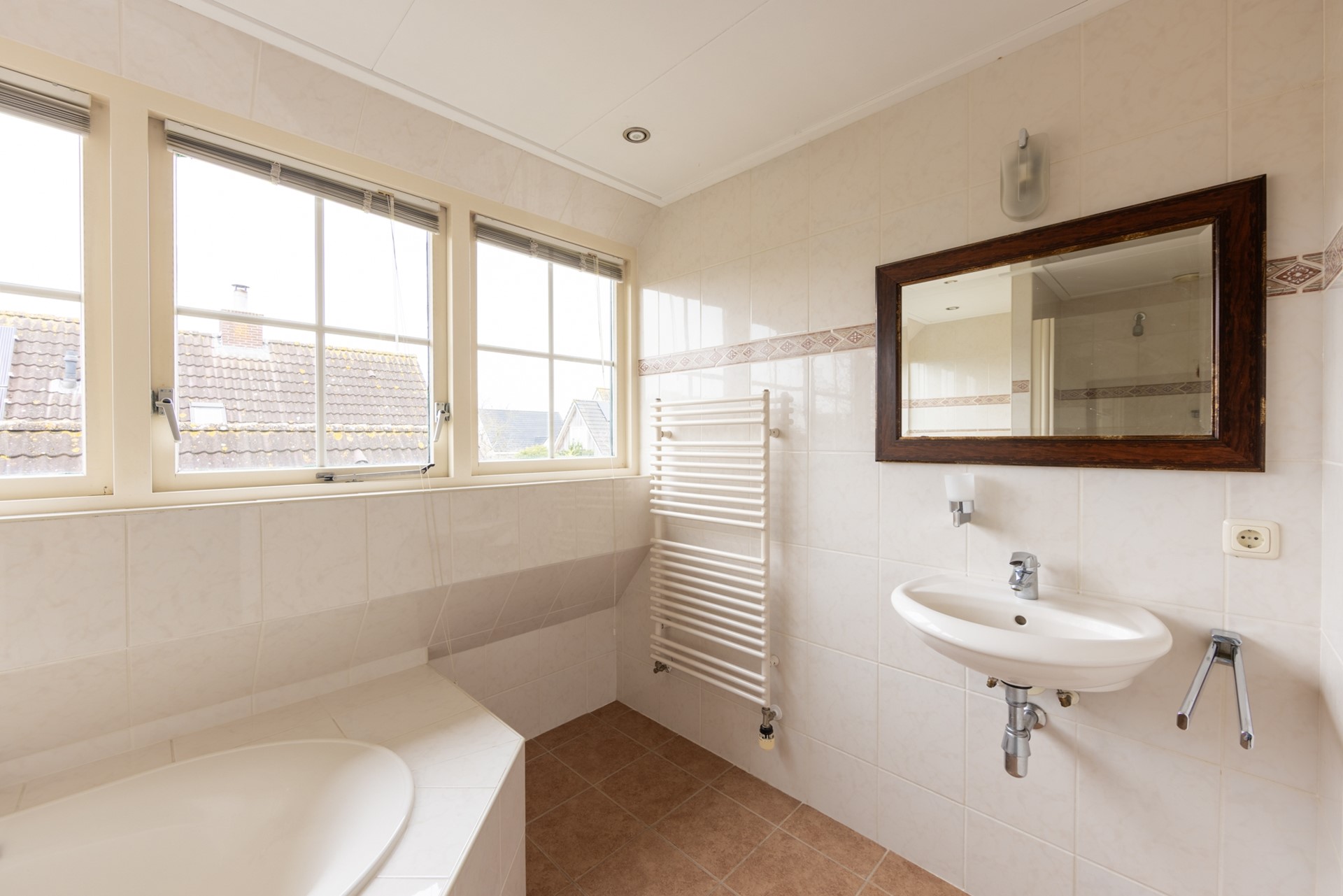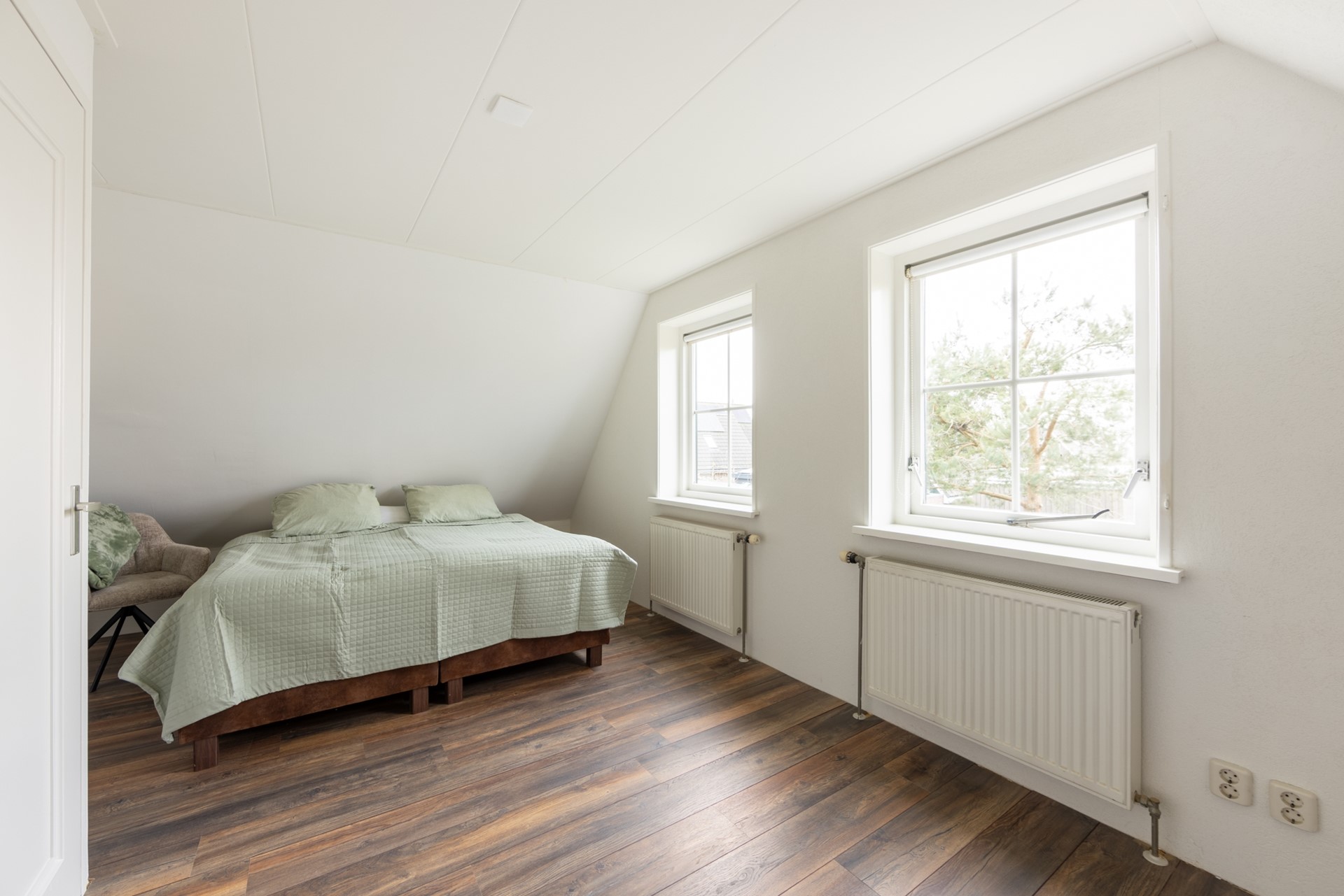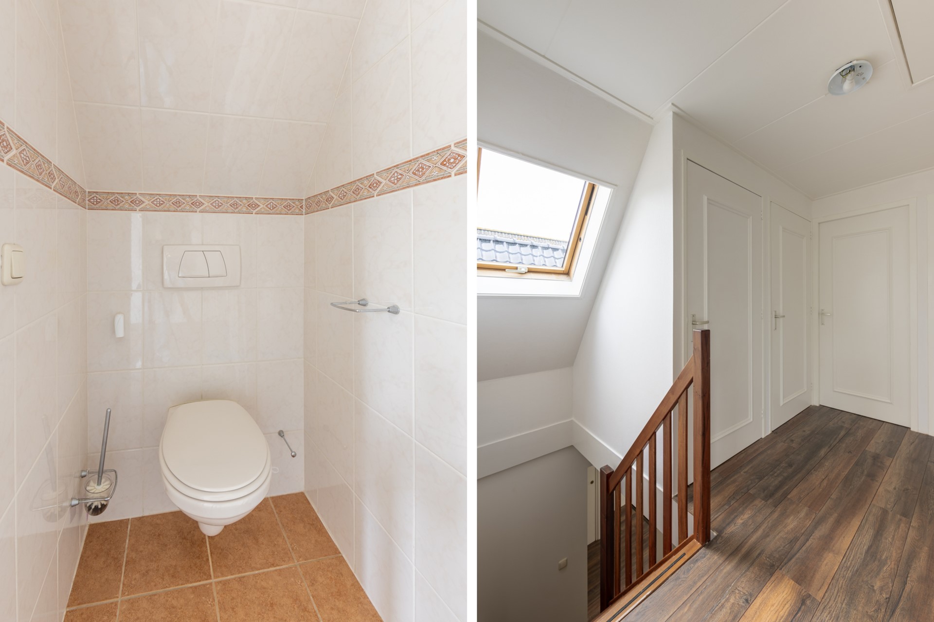 Op de verdieping ligt ook een nieuwe laminaatvloer en er is een ruime overloop met een dakraam, een apart toilet en een bergkast. Deze bergkast kun je ook gebruiken om vanuit de verdieping naar de zolder boven de garage te komen. Verder zijn er 3 slaapkamers, waarvan 1 over de volle breedte van de woning. En er is natuurlijk nog een badkamer met een dakkapel, een ligbad, douche en wastafel.
