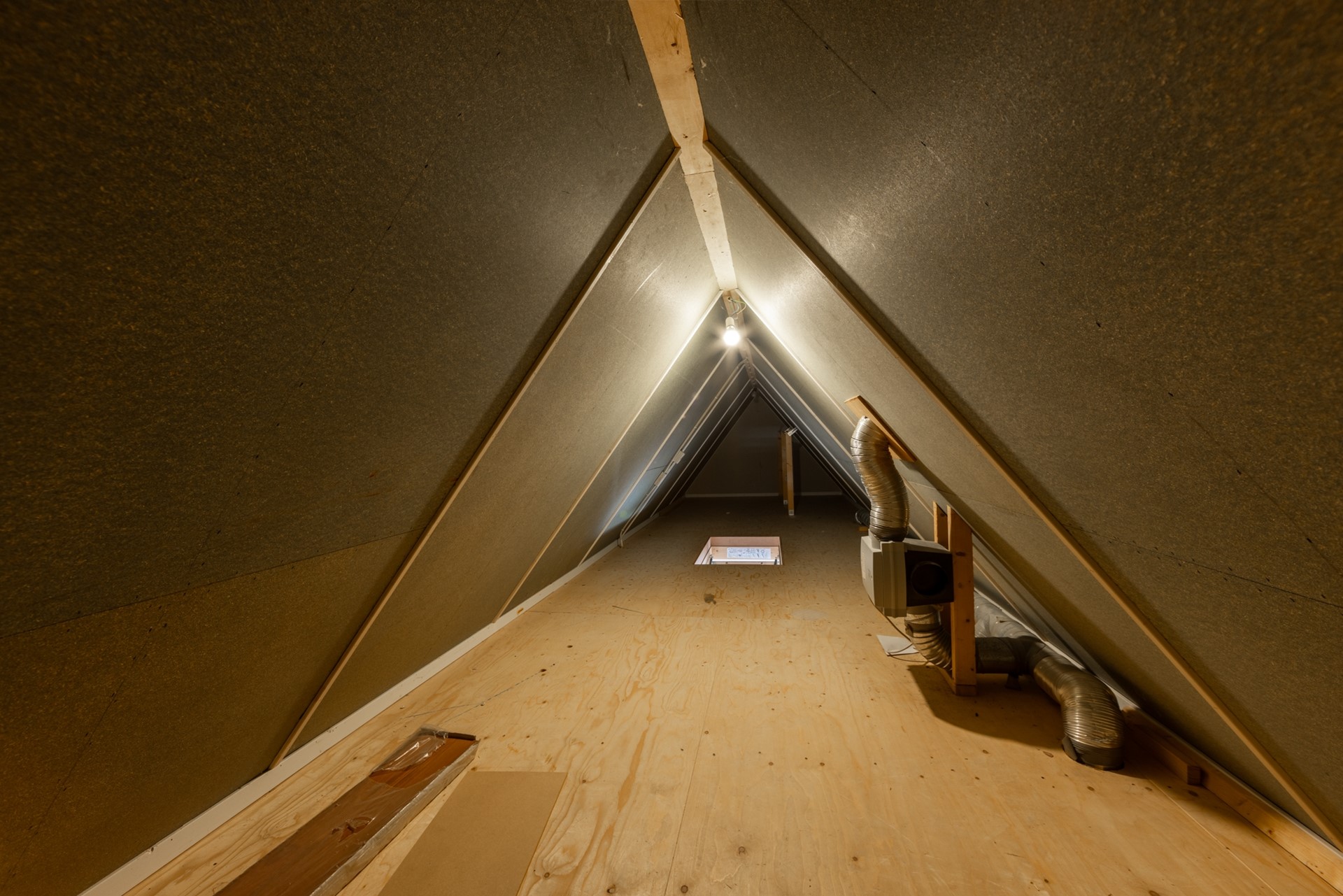 Via een vlizotrap kom je op de tweede bergzolder, waar je een heleboel spullen kwijt kunt.