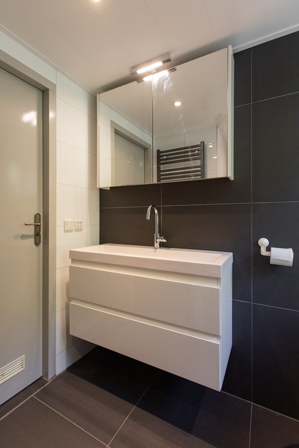 De overloop leidt naar twee slaapkamers van 16 m² en 7,5 m² beide slaapkamers zijn voorzien van een laminaat vloer, kunststof kozijnen met triple glas en radiatoren. De badkamer is gerenoveerd in 2017, is compleet en beschikt over een ligbad waar je ook in kunt douchen, een tweede toilet, een wastafelmeubel en een designradiator.