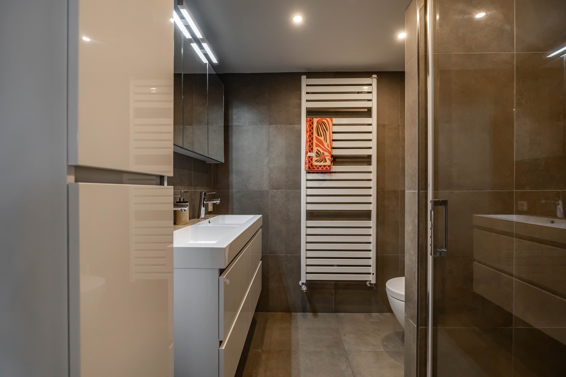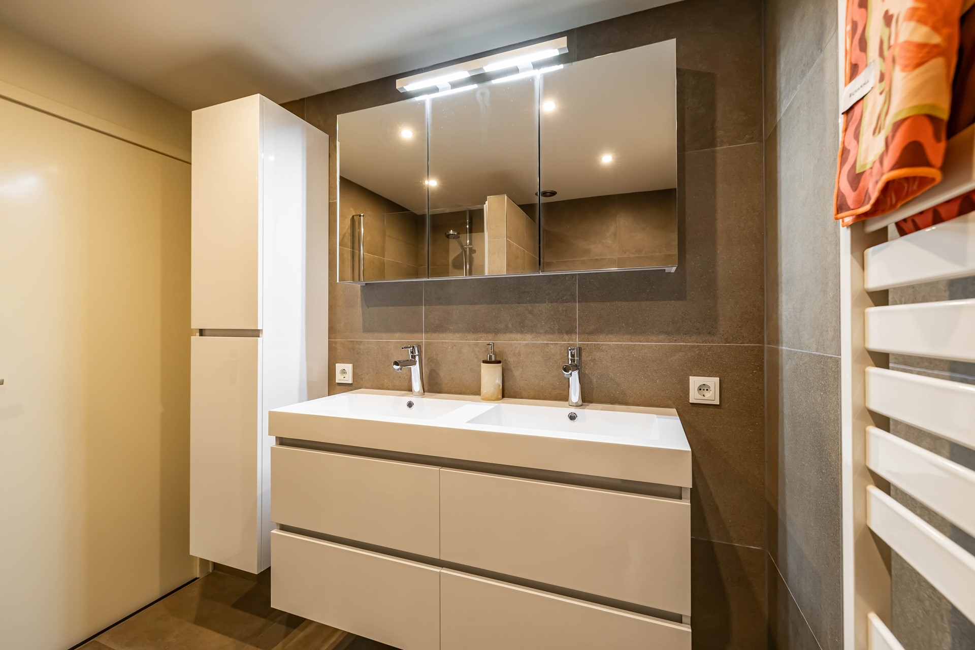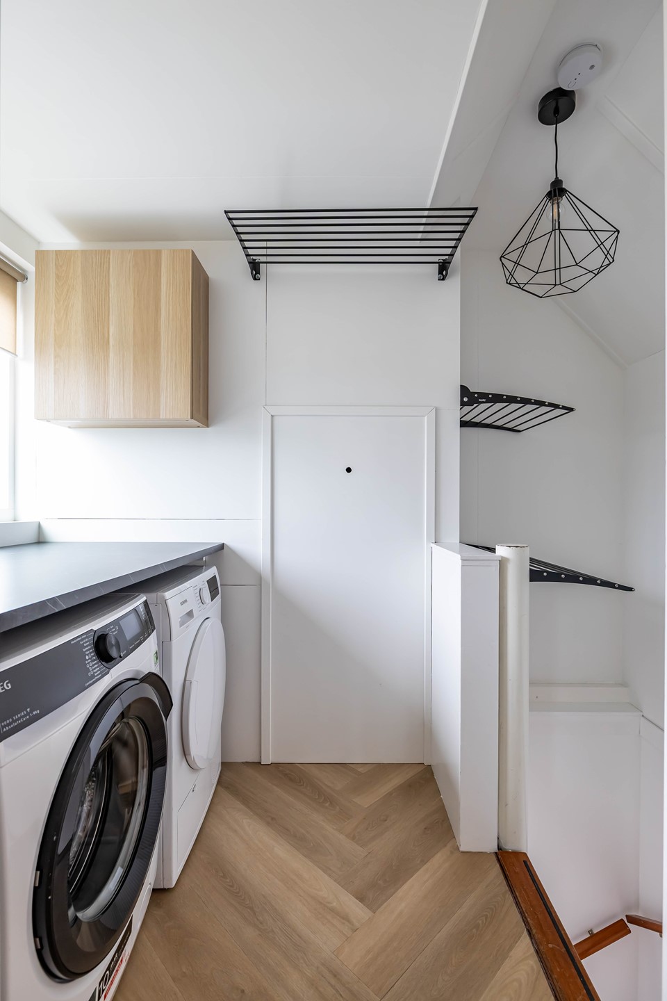 Stel je voor: samen koken aan een luxueus keukenblok, borrelen aan de keukentafel en ondertussen uitkijken over de zonnige tuin. In deze ruime woonkeuken voelt elke maaltijd als een feestje, hoe eenvoudig het gerecht soms ook is. De keuken is voorzien van een Quooker en alle benodigde NEFF-inbouwapparatuur, waaronder: een stoomoven, combi-oven/magnetron, 5-pits inductiekookplaat, vaatwasser en hoge koelkast en separate hoge vriezer.