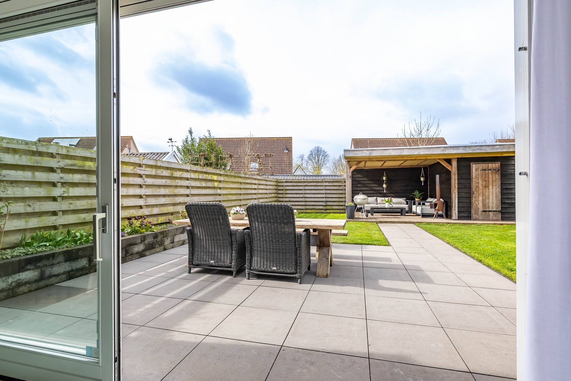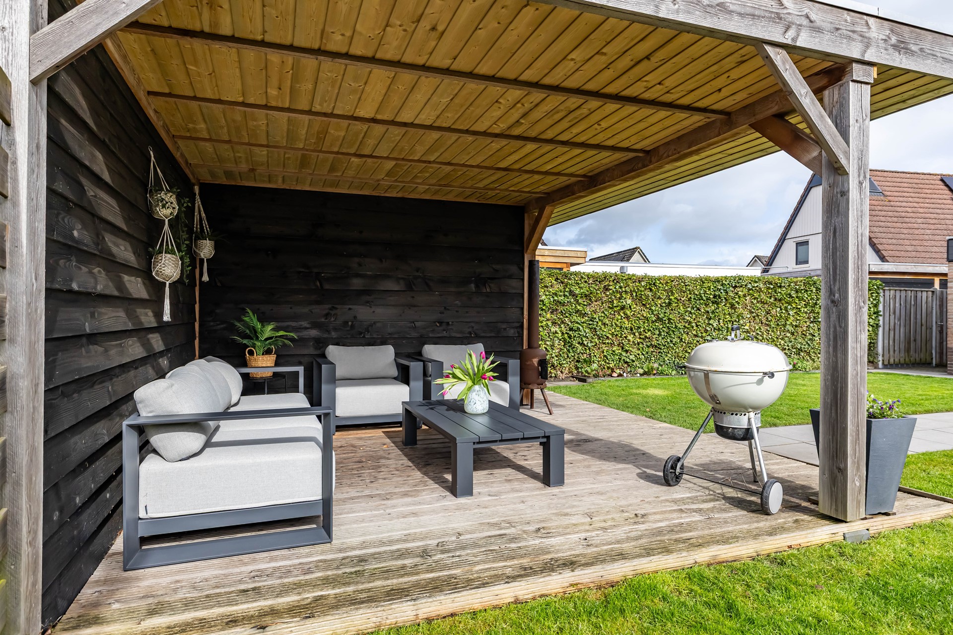 Laten we de tuin niet vergeten. Achter de woning vind je een diepe, zonnige tuin die zich uitstekend leent voor middagjes relaxen, spelen of barbecueën. De overkapping zorgt ervoor dat je op een warme zomerdag altijd een fijn, schaduwrijk plekje hebt om te zitten met een goed boek of een kop koffie.