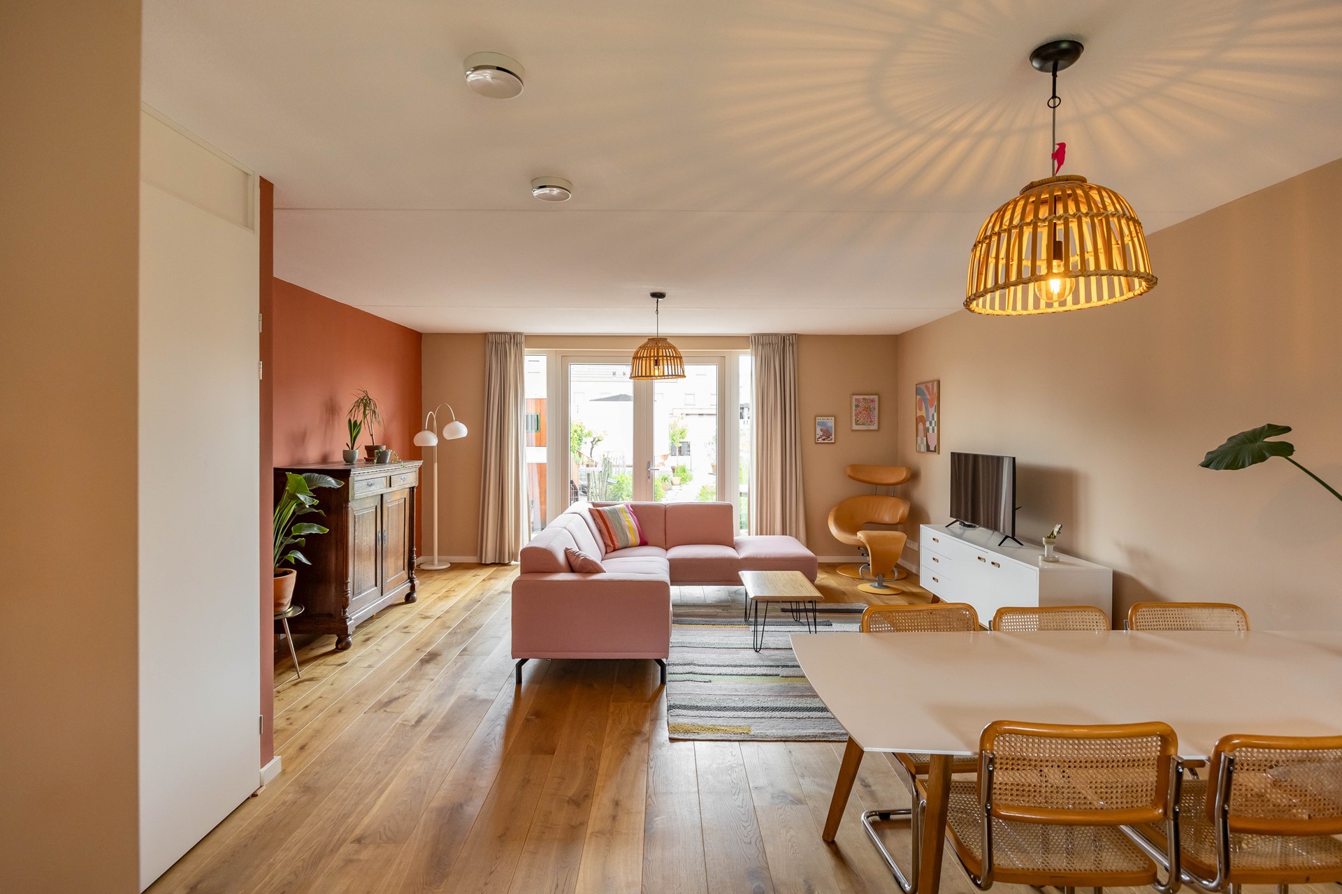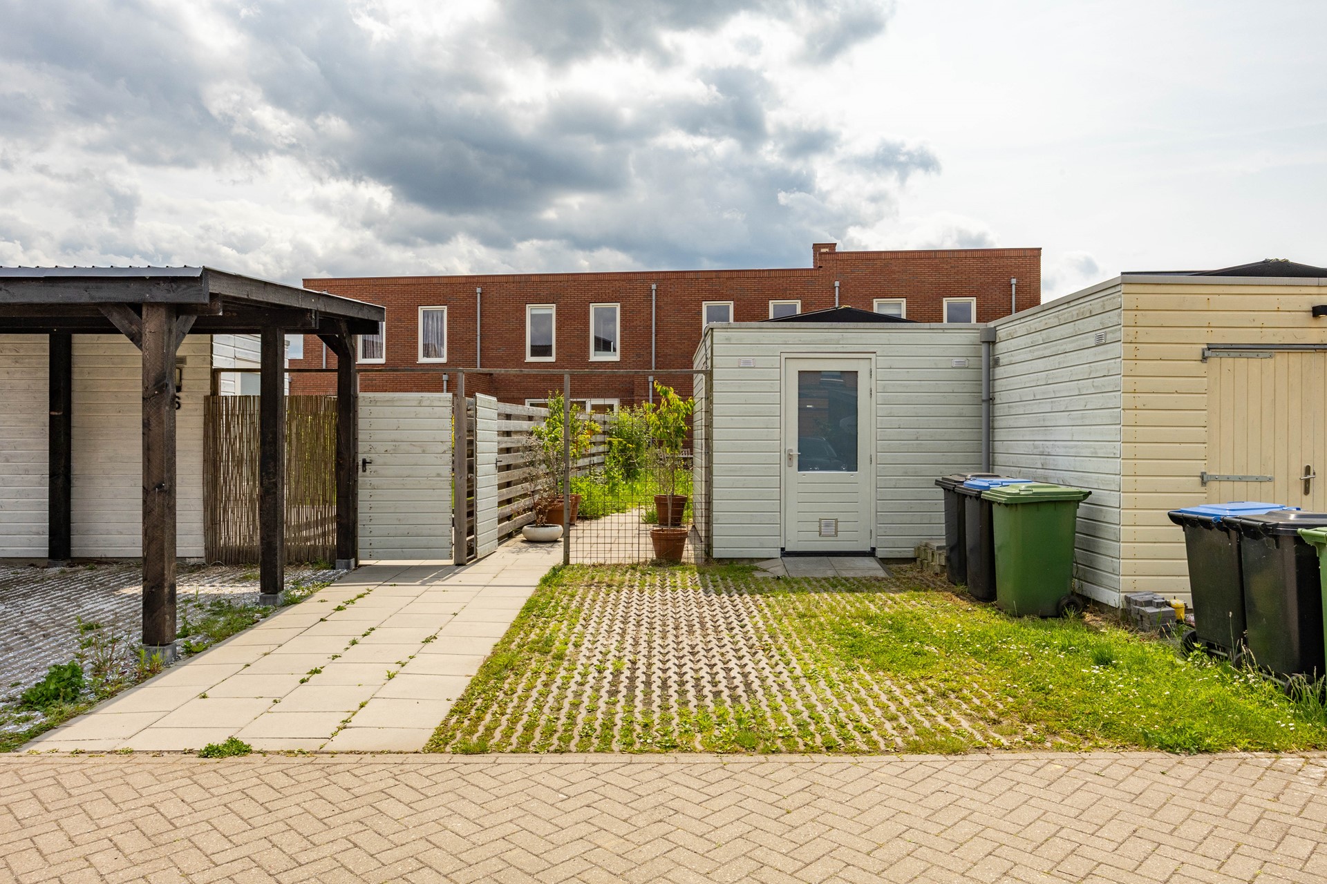 Via openslaande deuren kom je in de diepe tuin op het noorden. Door de lengte is het hier echter altijd mogelijk om een lekker plekje in de zon of schaduw te vinden, daarbij ondersteund door de verschillende terrassen. Bij de woning horen twee parkeerplaatsen op eigen terrein en een afsluitbare berging.