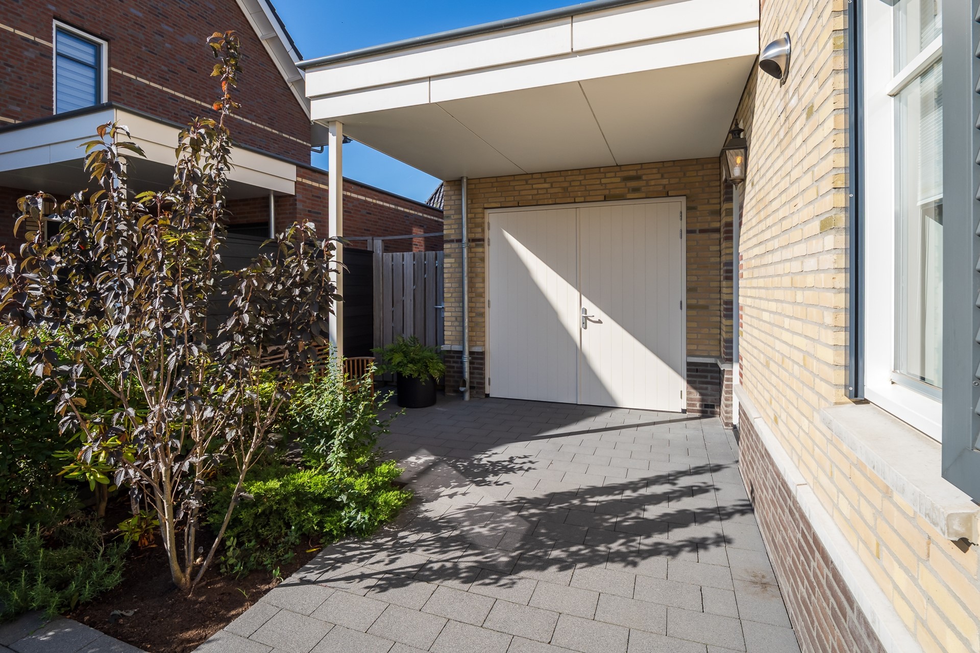 De goede eerste indruk begint al in de voortuin. De sierbestrating leidt je langs strak vormgegeven ligusterhagen en met zorg geselecteerde beplanting, die elk seizoen een ander gezicht toont. De oprit nodigt uit om thuis te komen. Ideaal hierbij is de overdekte luifel voor de garage, zodat je binnenkomst overdekt is.
