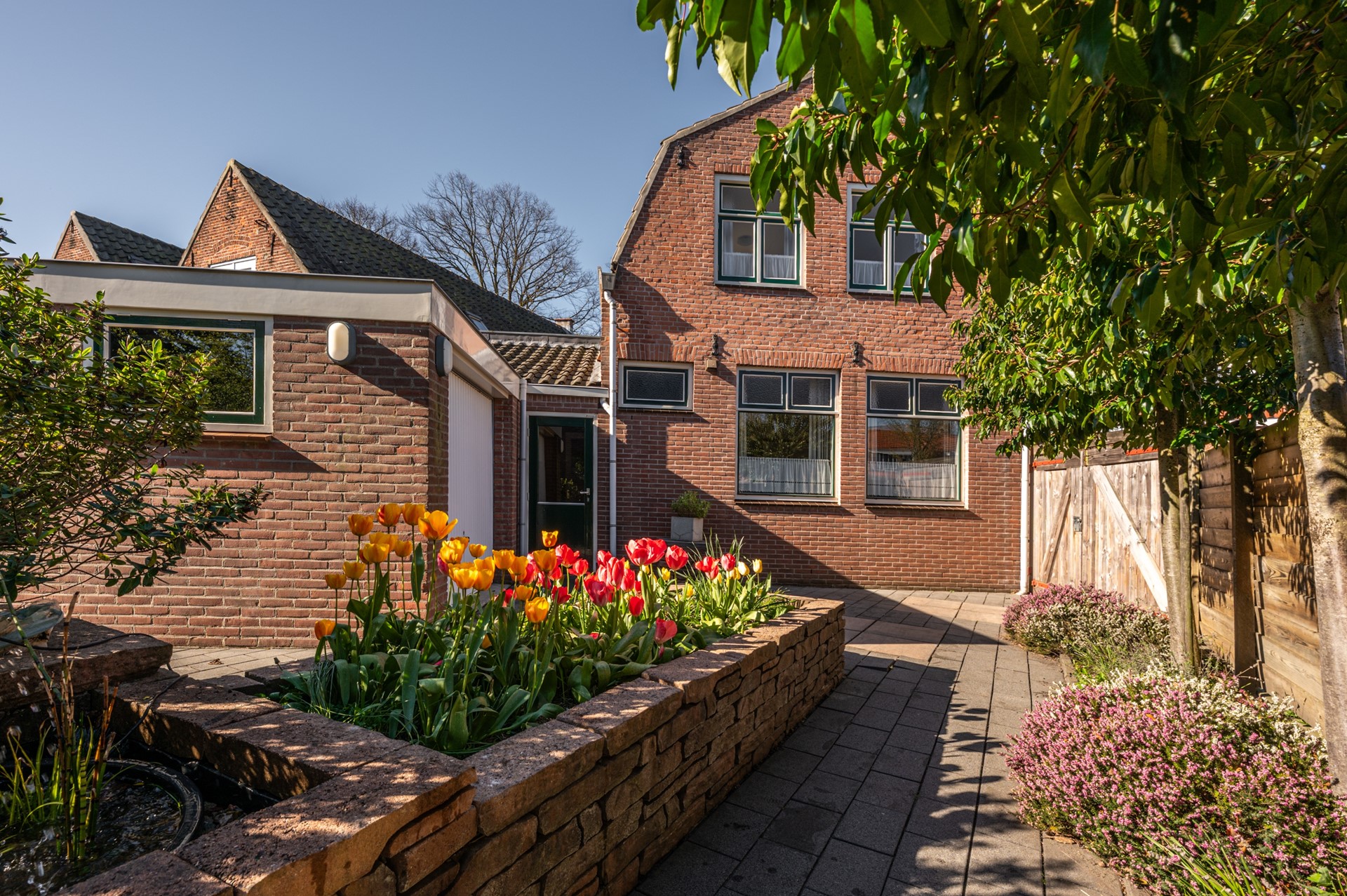 Op de verdiepingen bevinden zich meerdere slaapkamers, ideaal voor een gezin, thuiswerkplek of hobbyruimte. De badkamer is verzorgd en praktisch ingericht. De woning beschikt daarnaast over een fijne buitenruimte waar je in alle privacy kunt genieten van de zon.