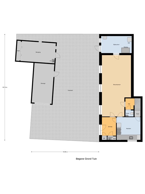 - Vanuit de tuin toegang tot de garage en de salon/studio