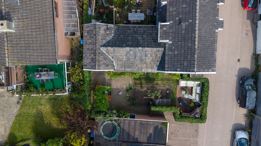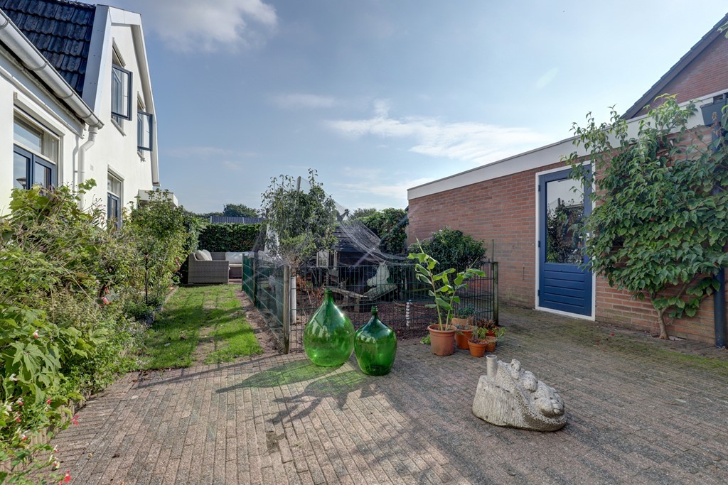 Buiten heeft de woning een vrijstaande garage met een elektrische roldeur. De garage is slim uitgebreid met een separate werkruimte, die momenteel als salon wordt gebruikt en tal van mogelijkheden biedt voor een thuiswerkplek of hobbyruimte.